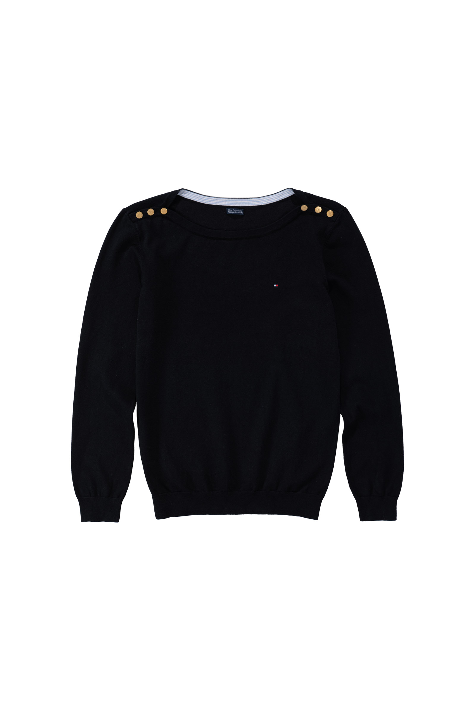 브랜드가 가진 아이비리그, 마린룩의 감성이 반영된 디자인으로 보트넥 실루엣과 어깨의 금장 버튼 디테일이 클래식하면서도 세련된 분위기를 더하는 아이템인데요.