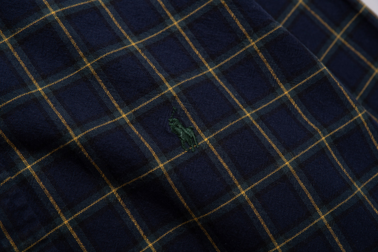 폴로 매니아라면 사랑해 마지않는 체크 패턴인데, 네이비 바탕에 그린과 옐로 라인이 교차하는 패턴이라 고급스러우면서도 클래식하기 때문에 인기가 아주 많죠.