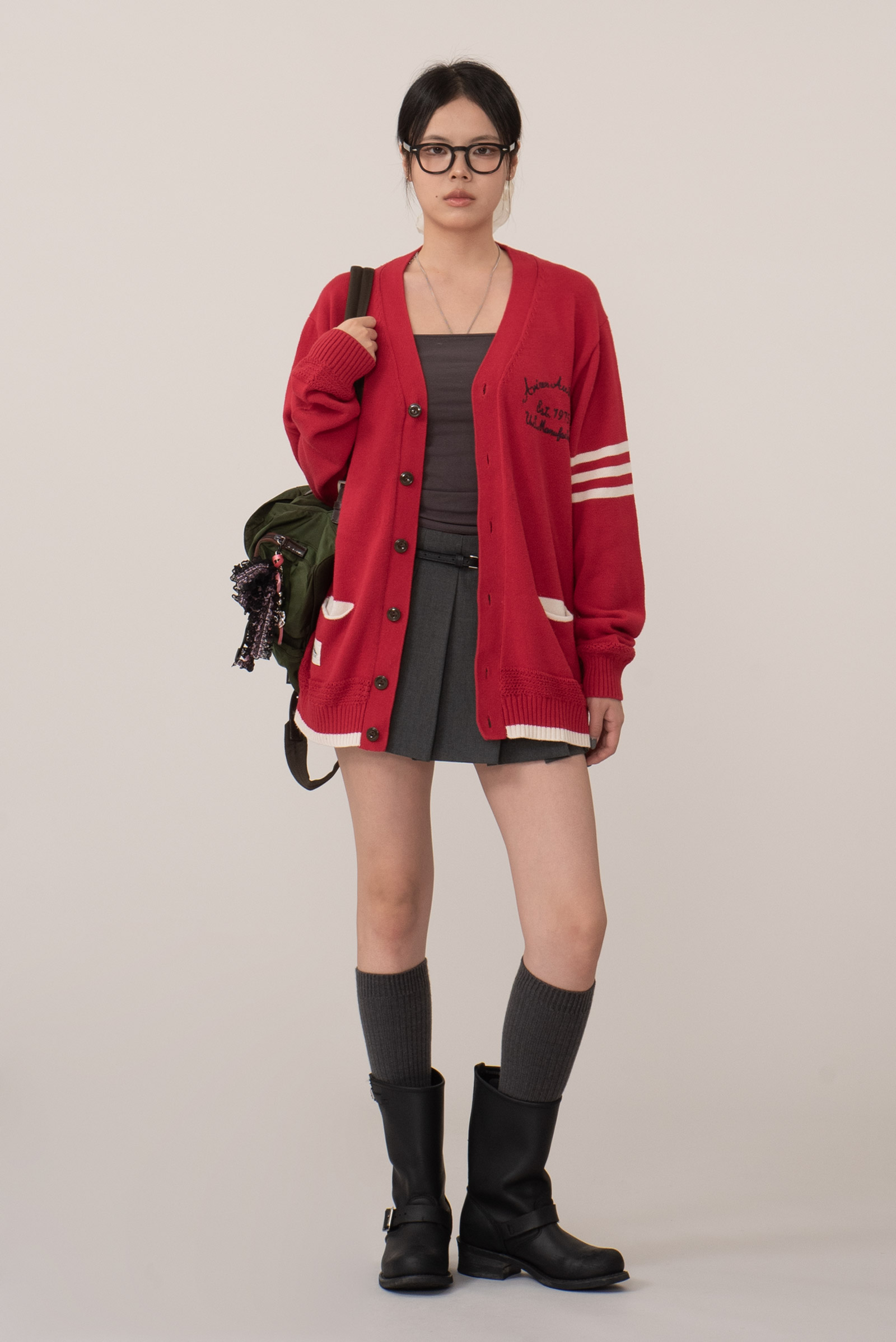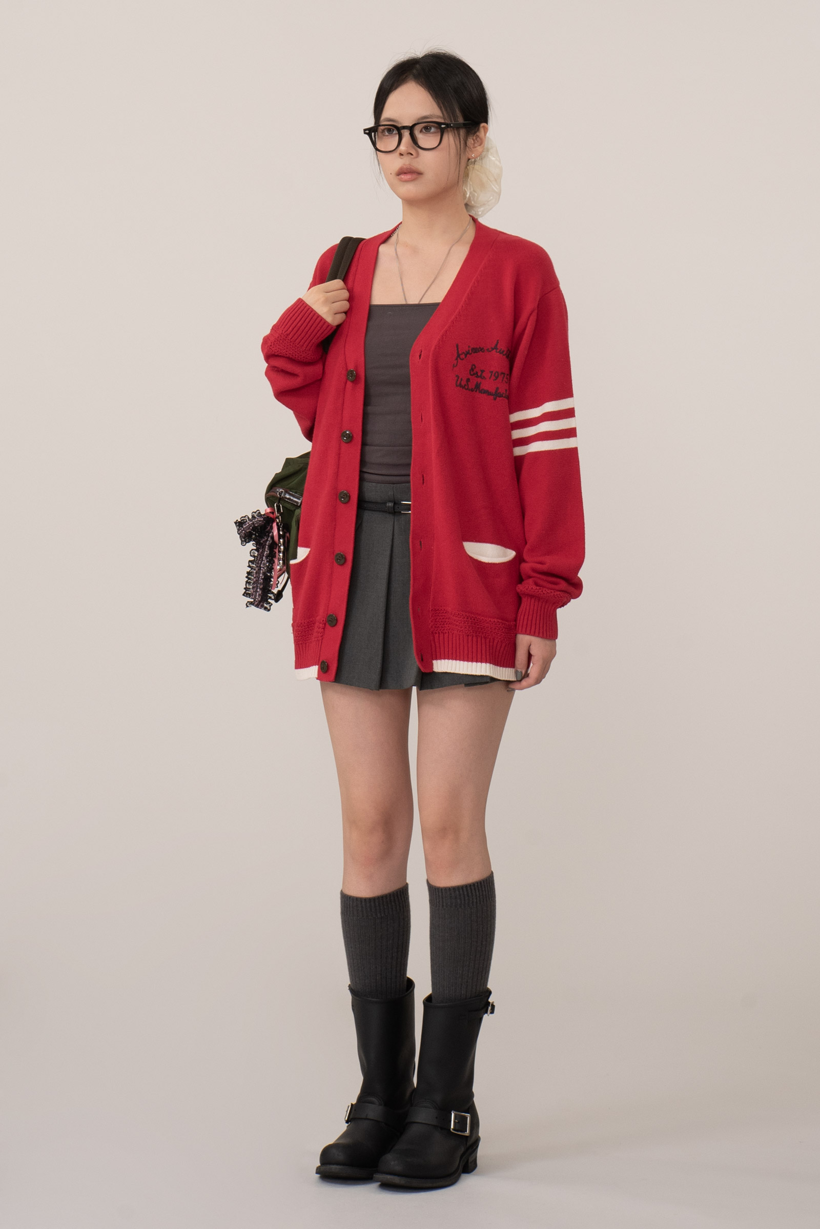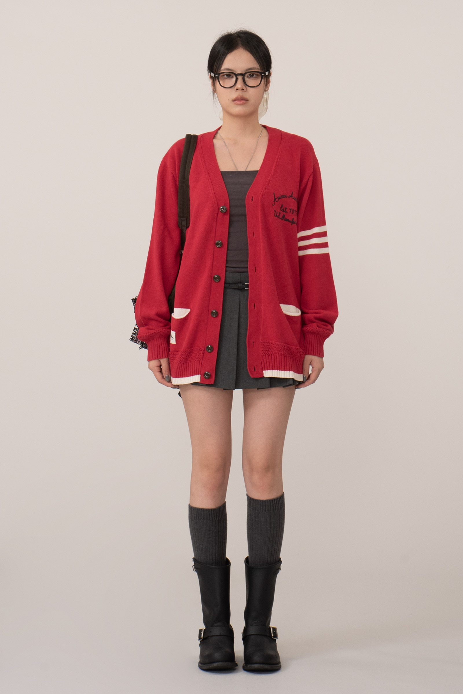 V넥 가디건 실루엣으로 베이직하면서도 클래식한 아이비리그 풍, 가슴에는 아비렉스 어센틱 어쩌구 자수가 브랜드의 헤리티지를 보여주고 있어요.