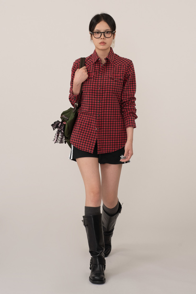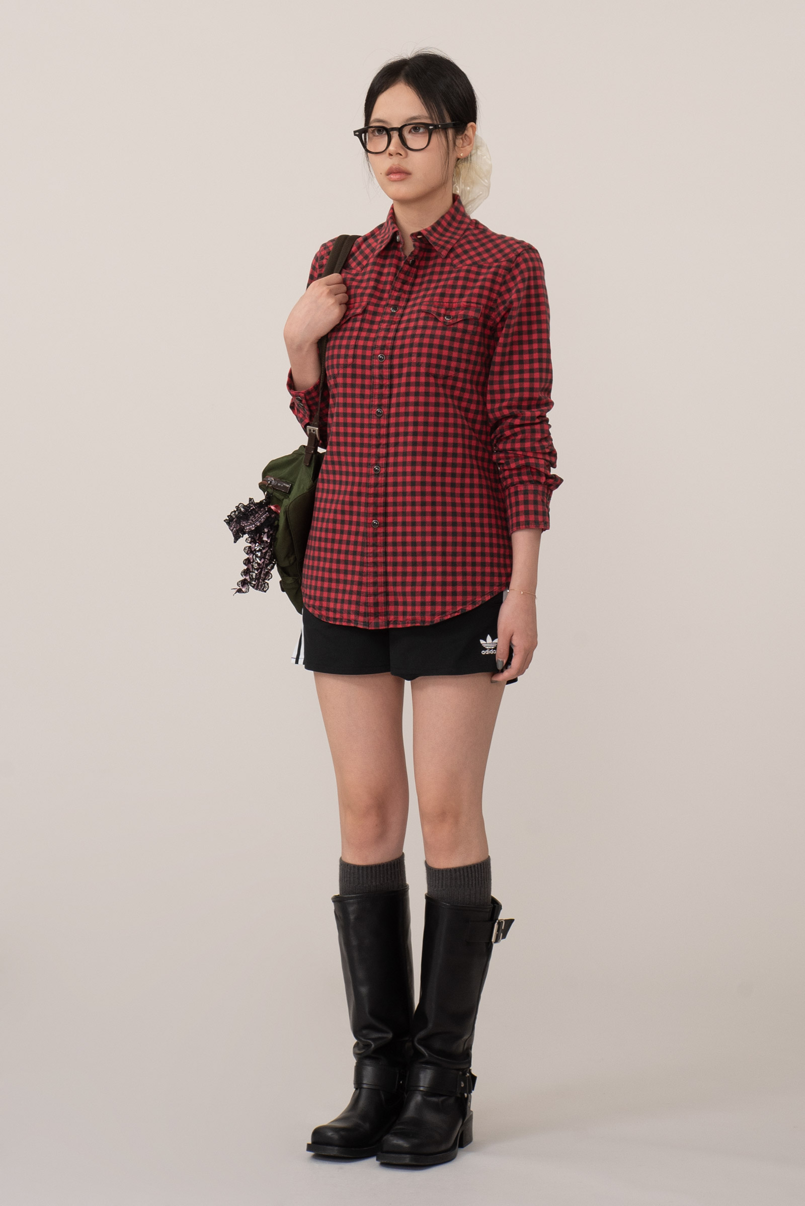 버팔로 플래드와 비슷한 레드&블랙 깅엄 패턴으로 거친 미국 서부의 감성을 부드럽게 재해석한 것 같아요.