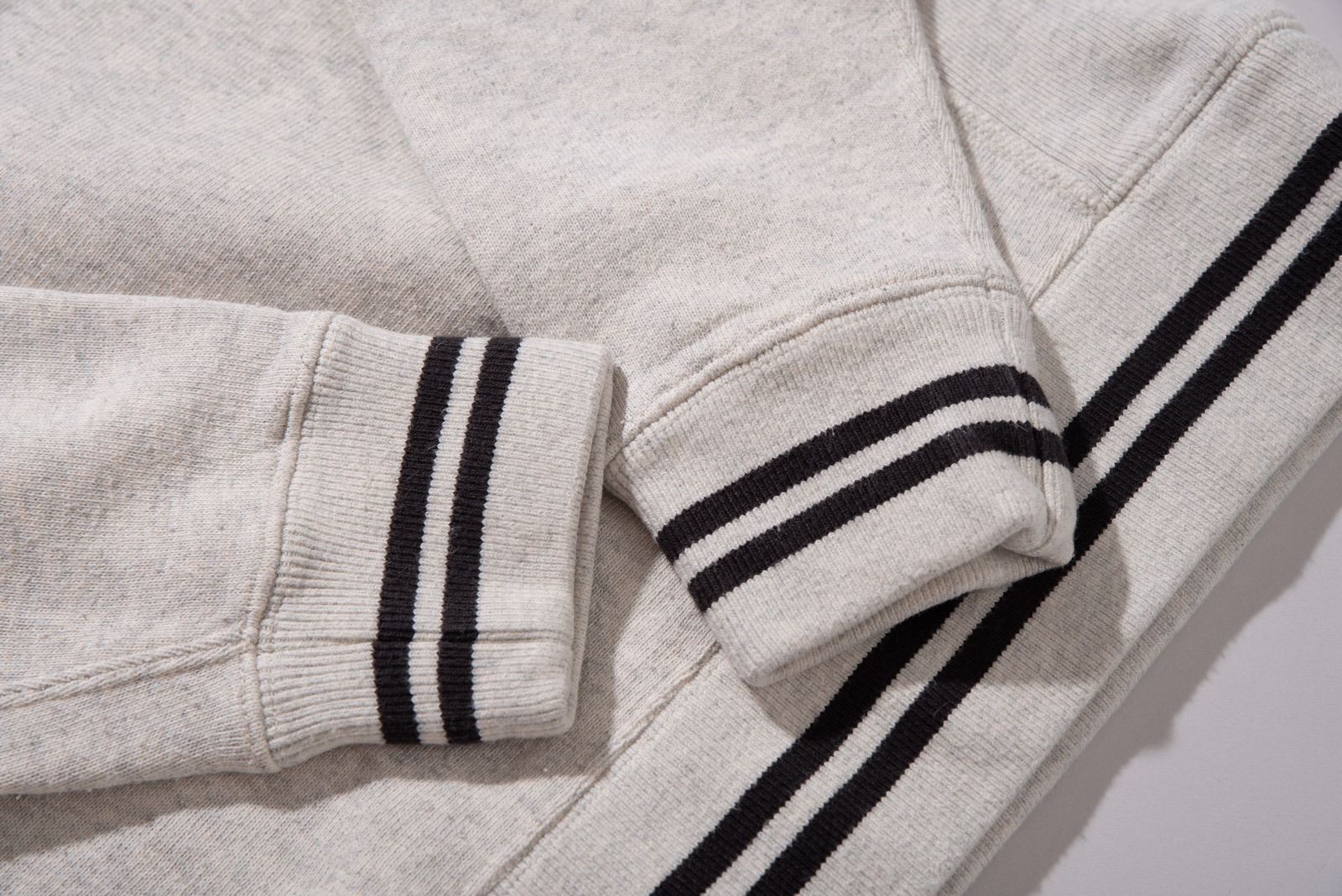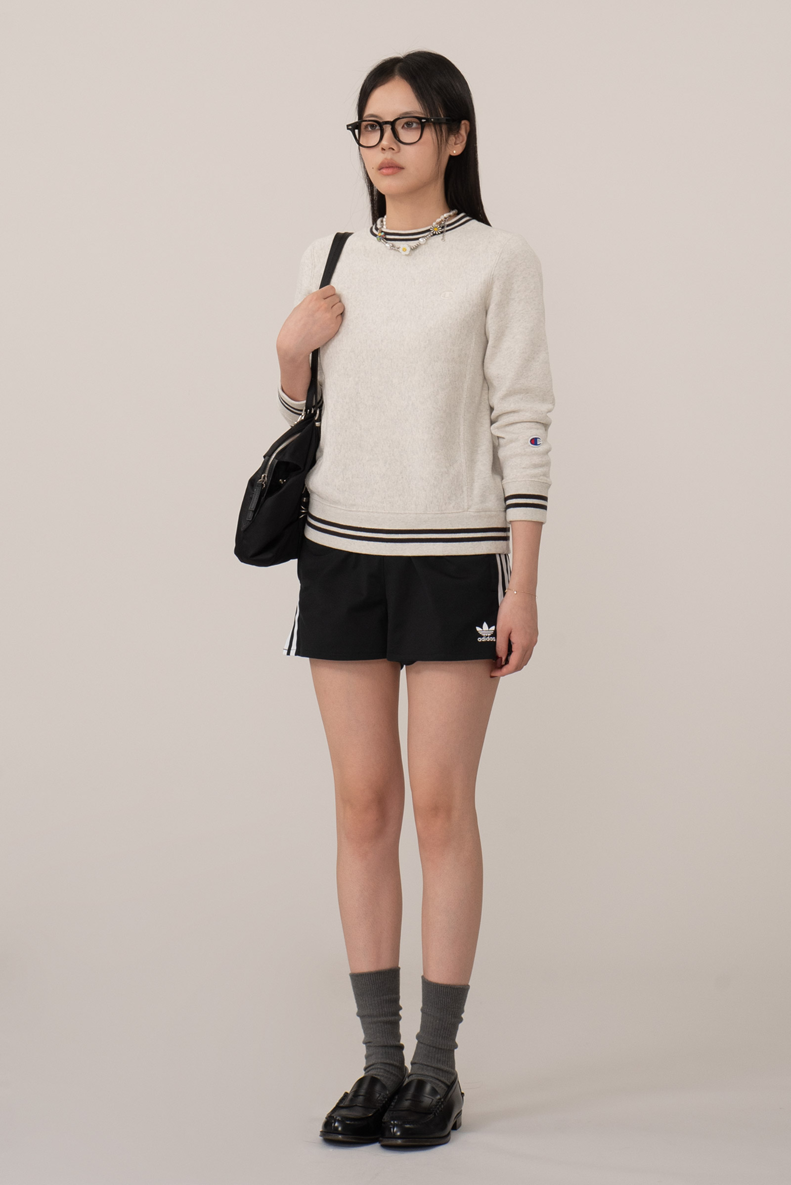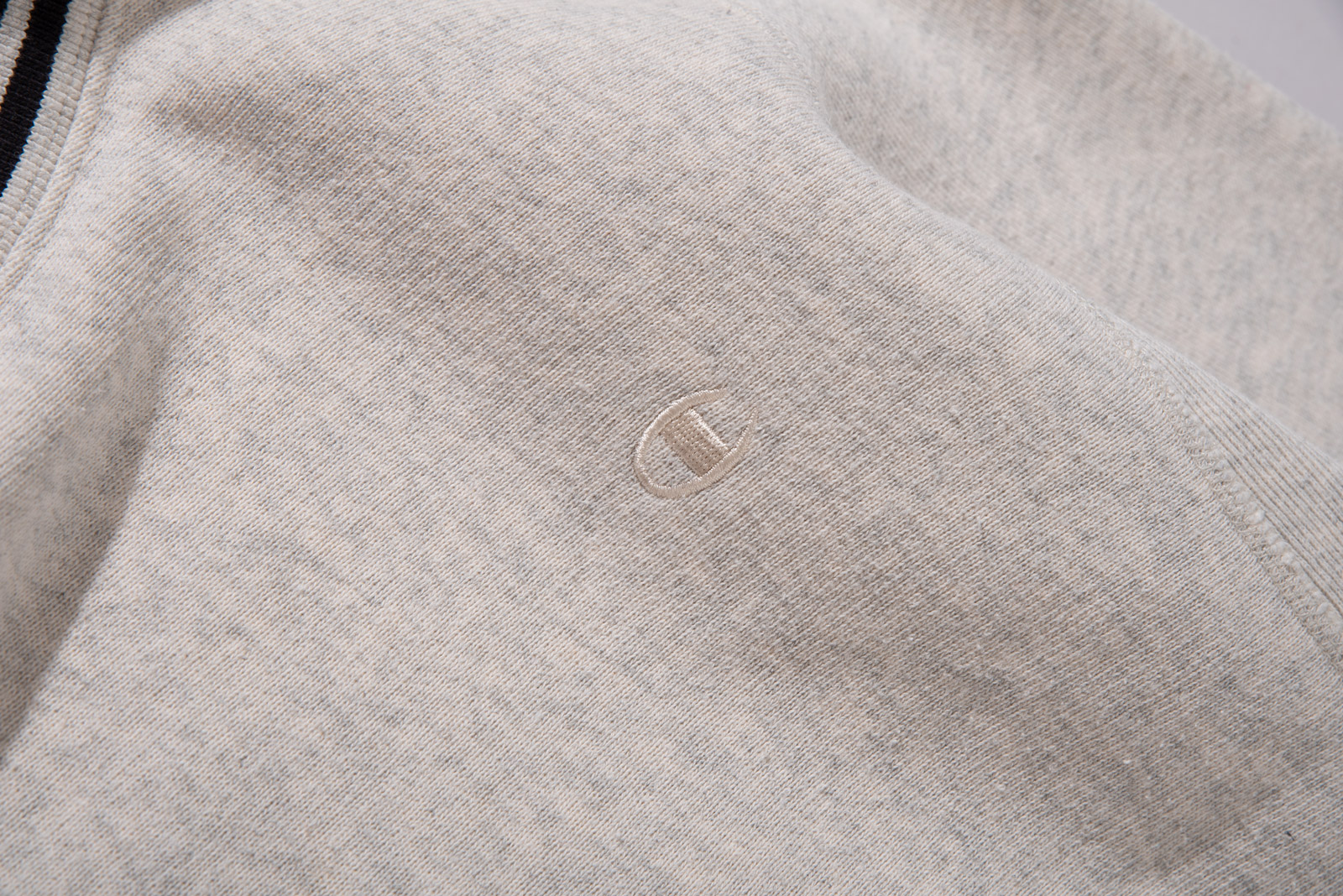 코튼에 폴리가 약간 섞인 챔피온 고유의 헤비웨이트 패브릭인데 일반 스웨트보다 두껍고 탄탄하며 부드러운 기모 안감 처리되어 있는 것이 특징이에요.