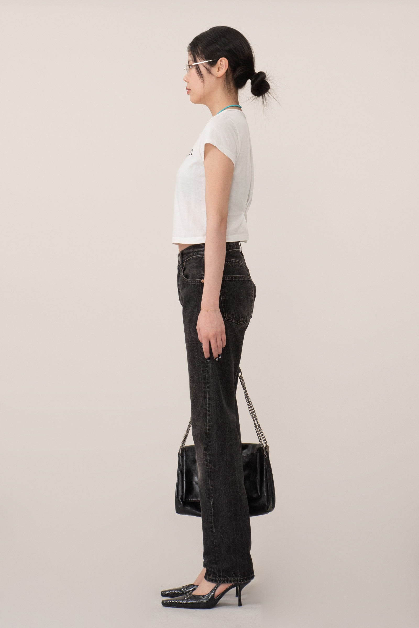 흑청 컬러, 비교적 힙이 작게 제작되어 밑단까지 스트레이트로 뻗은 실루엣이 일품인데요.
