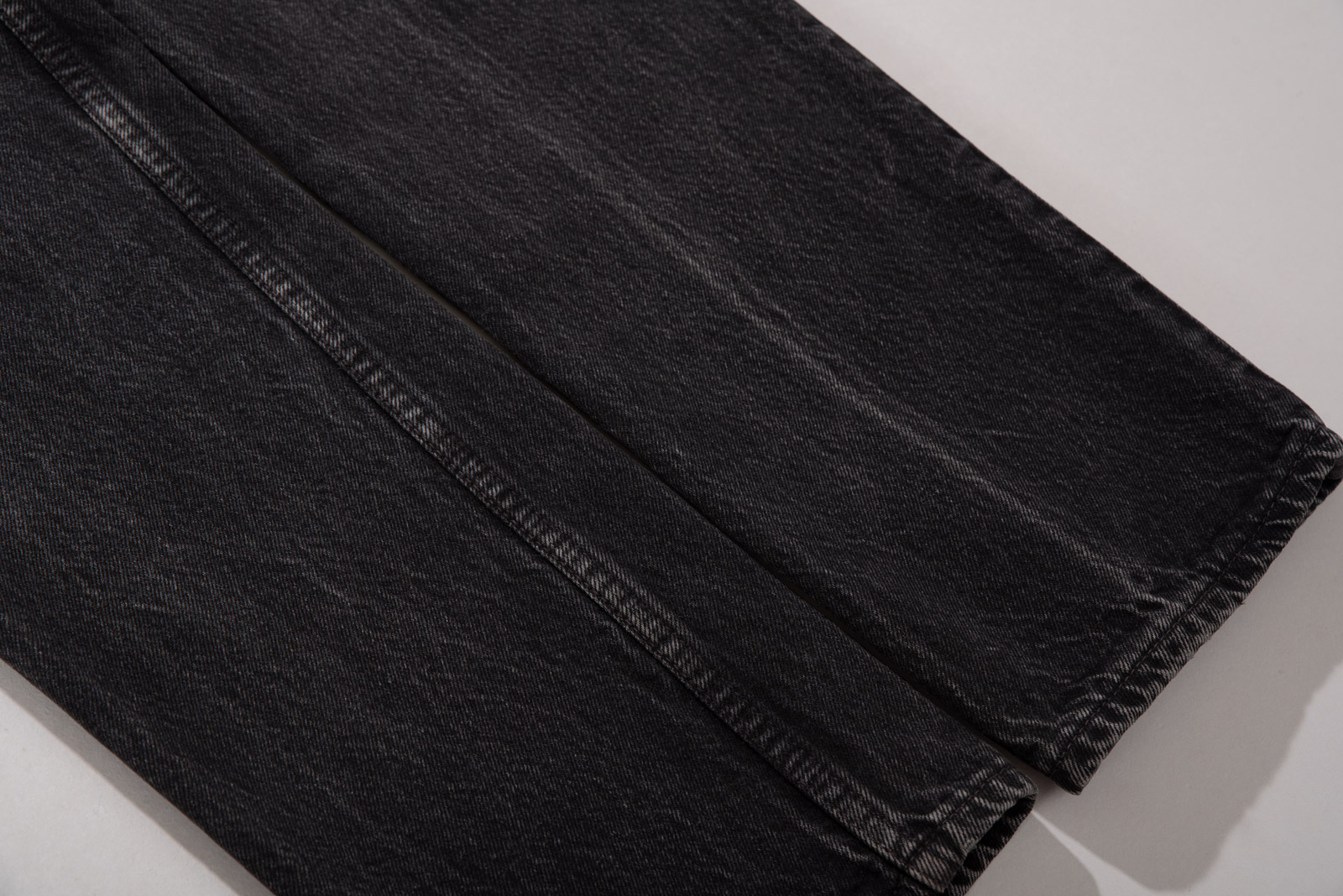 두툼하면서도 미제 특유의 부드러운 텍스쳐, 후면의 종이 탭과 백 포켓의 흐릿한 아큐에잇 등 90년대 양식을 느끼며 클래식하게 착용하기에 이만한게 없어요.