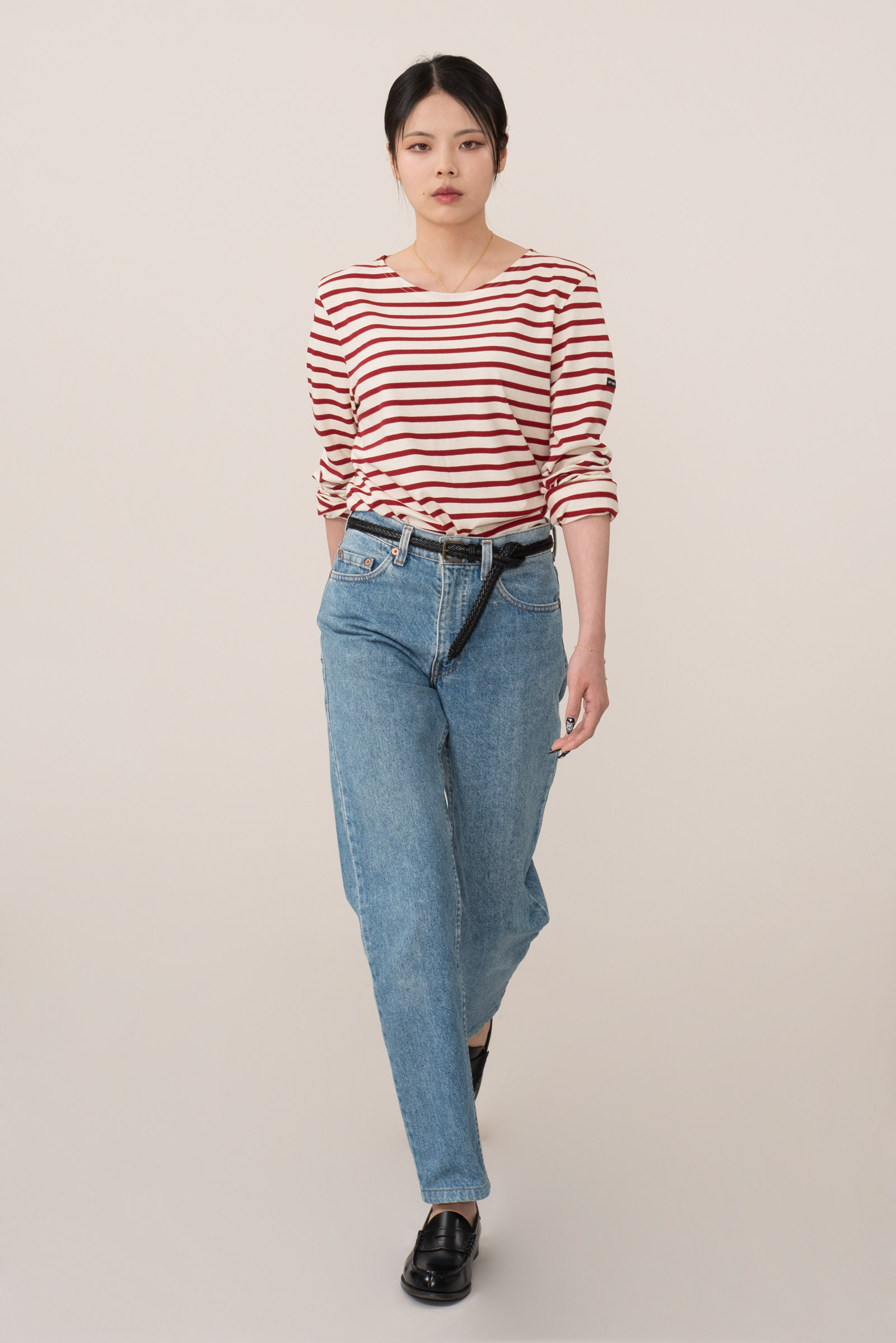 하이웨이스트로 다리가 길어 보이고 163 기준 복사뼈를 덮어 가장 깔끔하고 클래식한 느낌이 나는 기장감, 아래로 자연스럽게 좁아지는 테이퍼드 핏으로 유행 없이 사계절 다양하게 쓰이는 모델이랍니다.