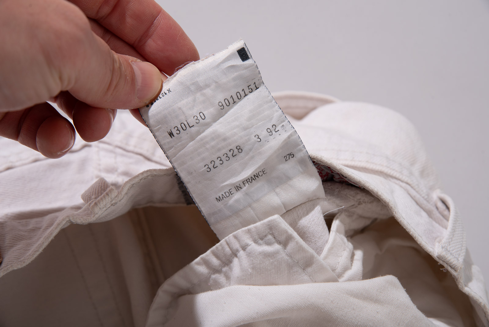 프랑스에서 제작이 된 피스인데 프랑스산의 대표적인 특징은 콘밀사 원단 또는 유럽 내 후가공된 하드 트윌 원단 사용되어 고밀도에 굉장히 탄탄하고 드라이한 느낌이 있어요.