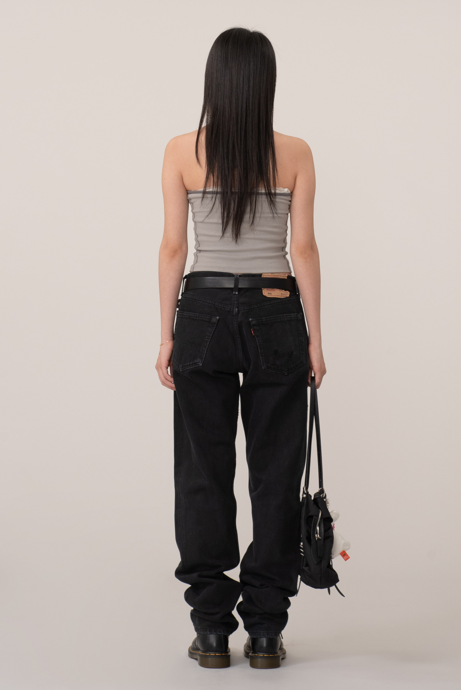 핏은 501답게 허벅지는 여유 있고 밑단은 자연스럽게 좁아지는 스트레이트 라인이고 과한 연출 없이도 기본기 하나로 전체적인 룩을 정리해 주는 블랙 데님으로 일상적인 착용부터 Y2K 스타일에도 잘 어울린답니다.