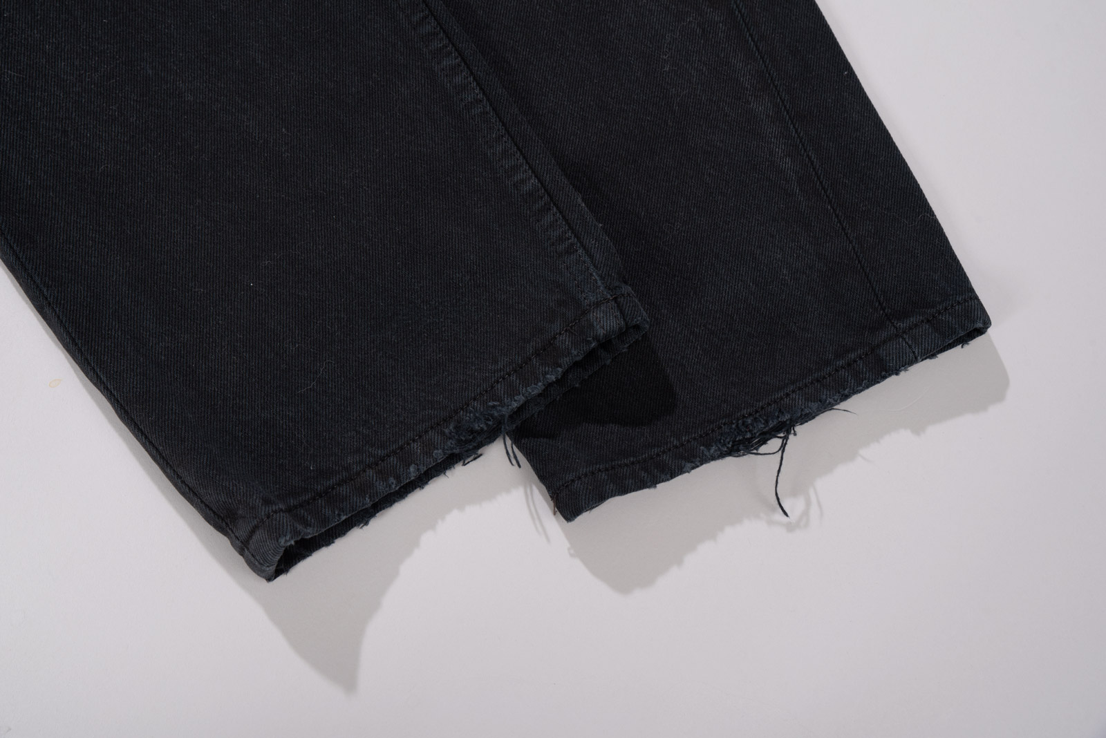 기본기 좋은 501 실루엣을 기반으로 하면서 유럽 생산의 단단한 조직감이 눈에 띄며 00's 유럽산 블랙진 특유의 네이비 컬러 워싱이 가장 큰 특징이랍니다.