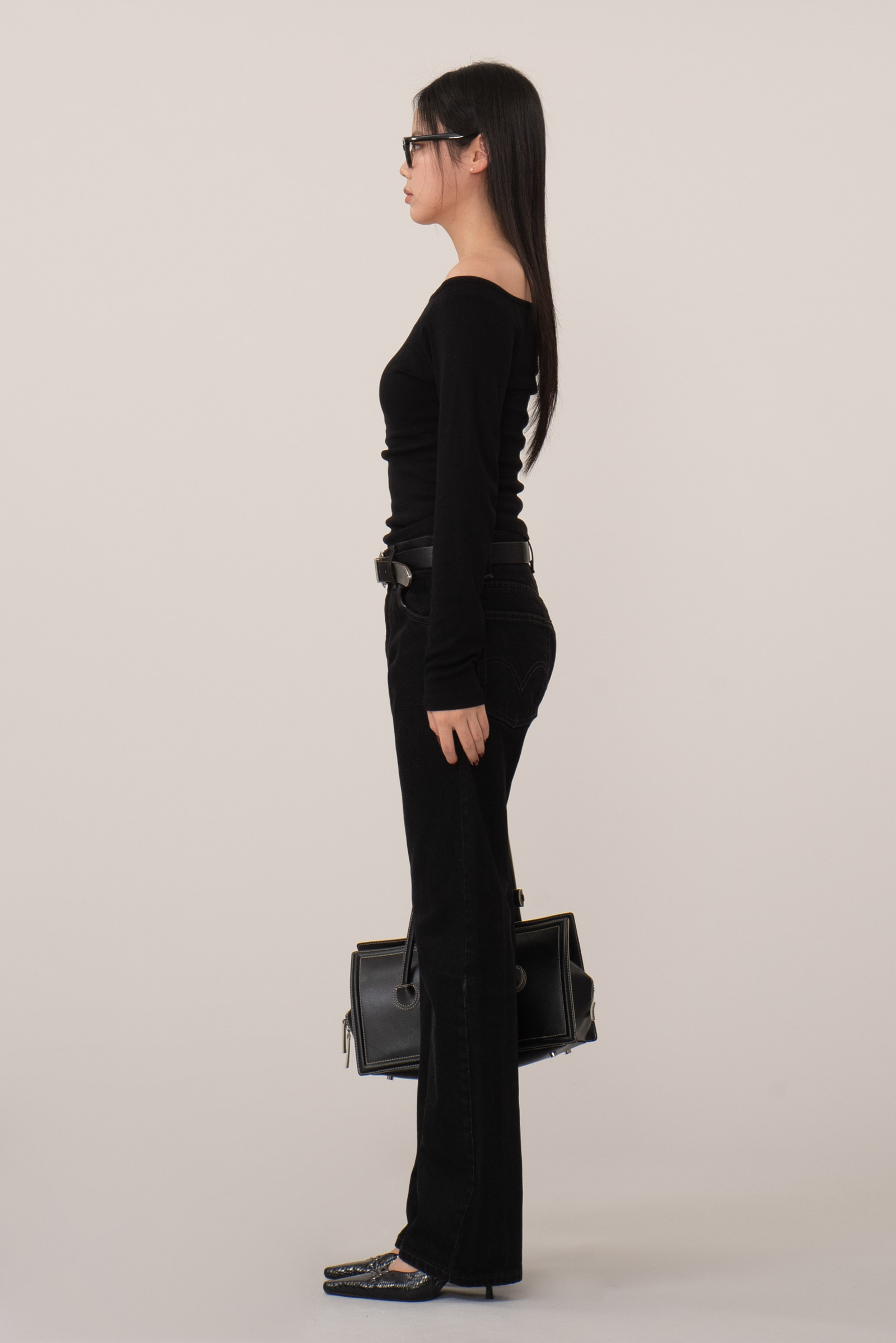 과하게 번들거리거나 진한 피그먼트 느낌 없이 매트한 블랙 컬러를 유지하고 있고 심플한 부츠컷 라인은 트렌디하면서도 세련된 이미지를 풍기네요.