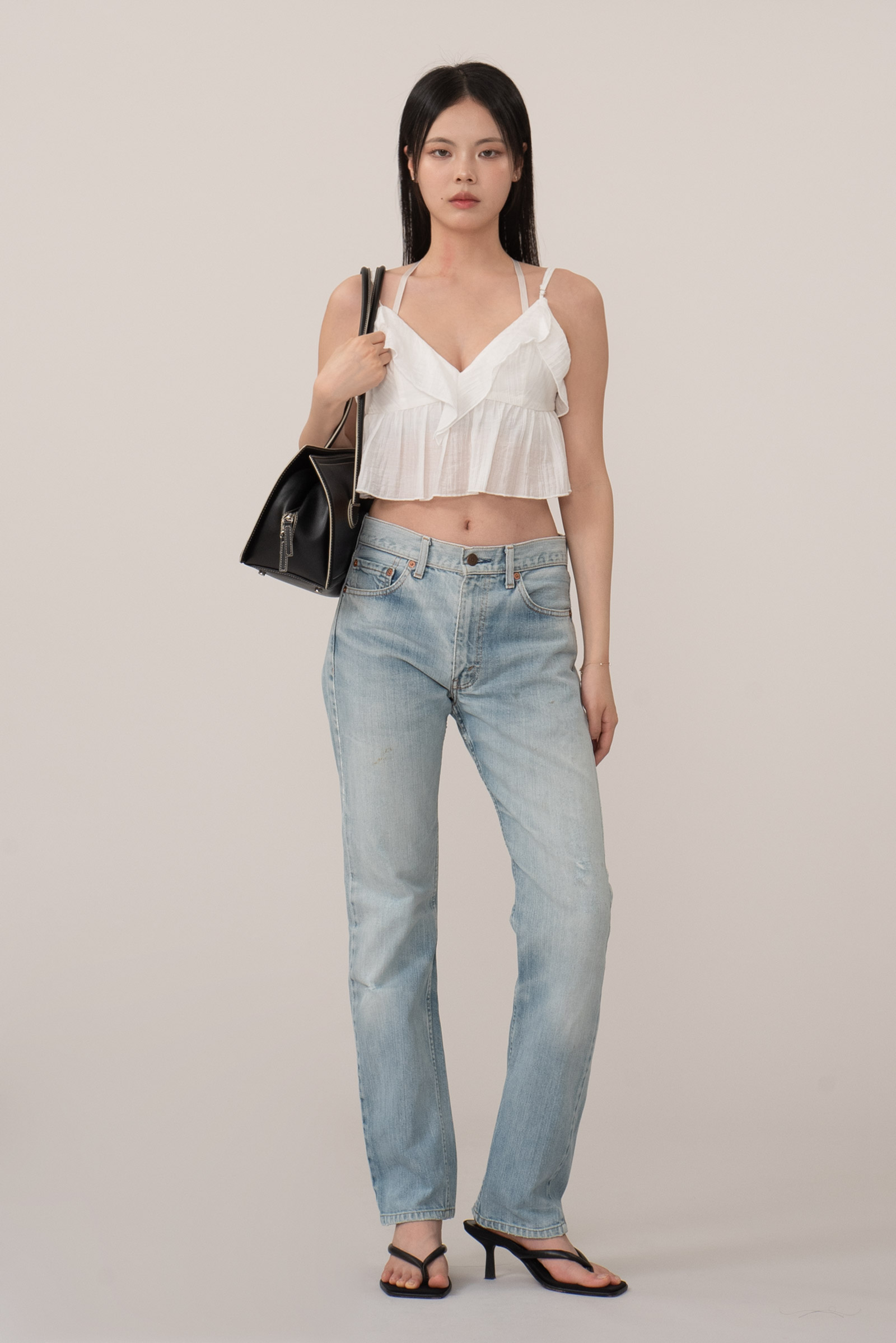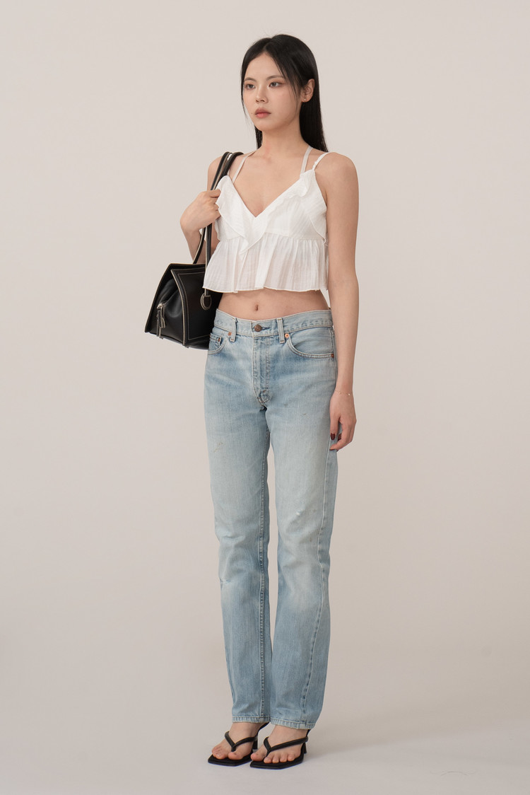 연청 컬러, 워싱과 데미지, 더티 페이딩 등 빈티지한 감성이 가득 담긴 피스로 데일리하게 입기 좋으며 일본산 특유의 세로 데님이 돋보입니다.