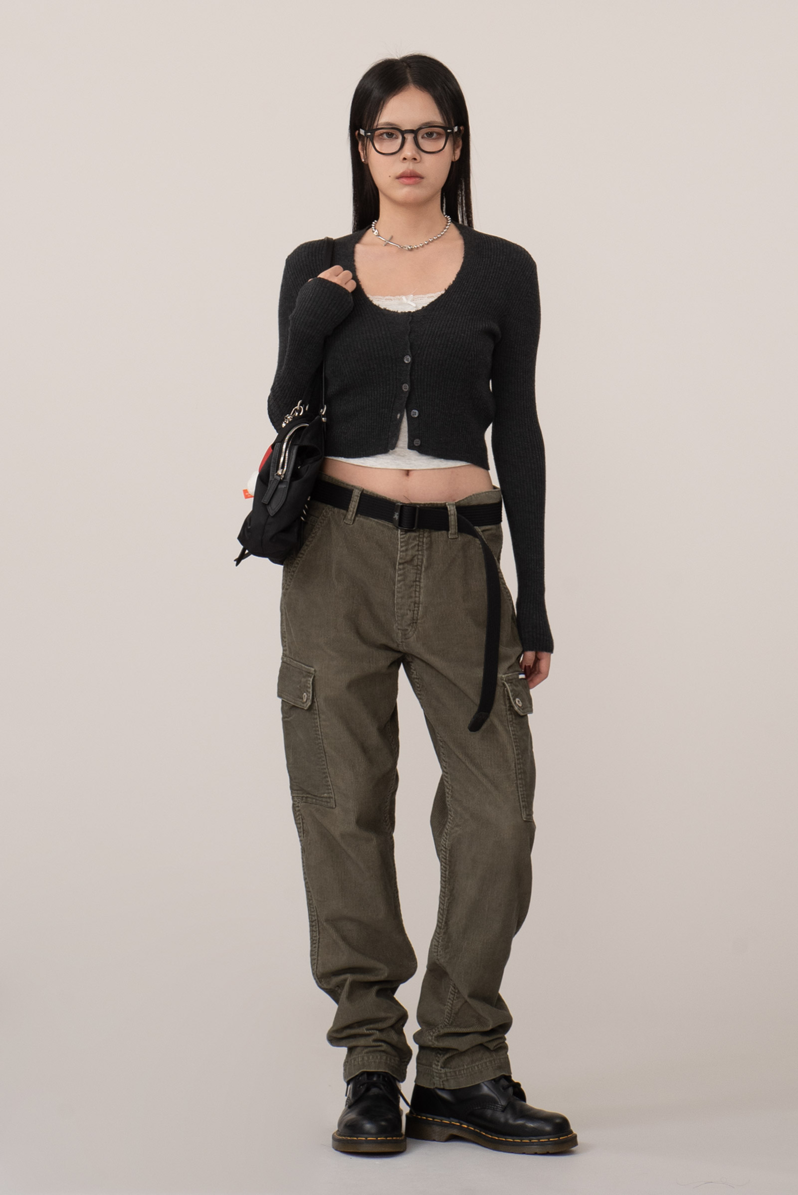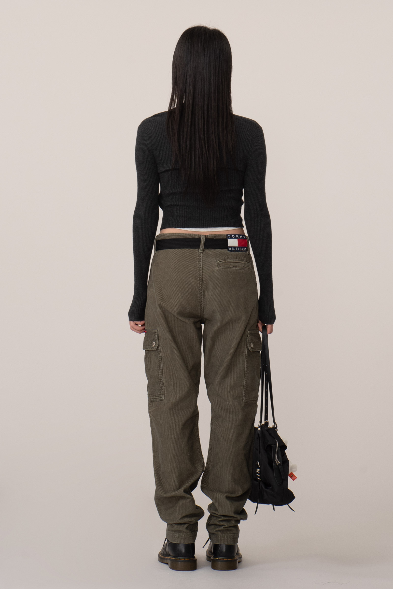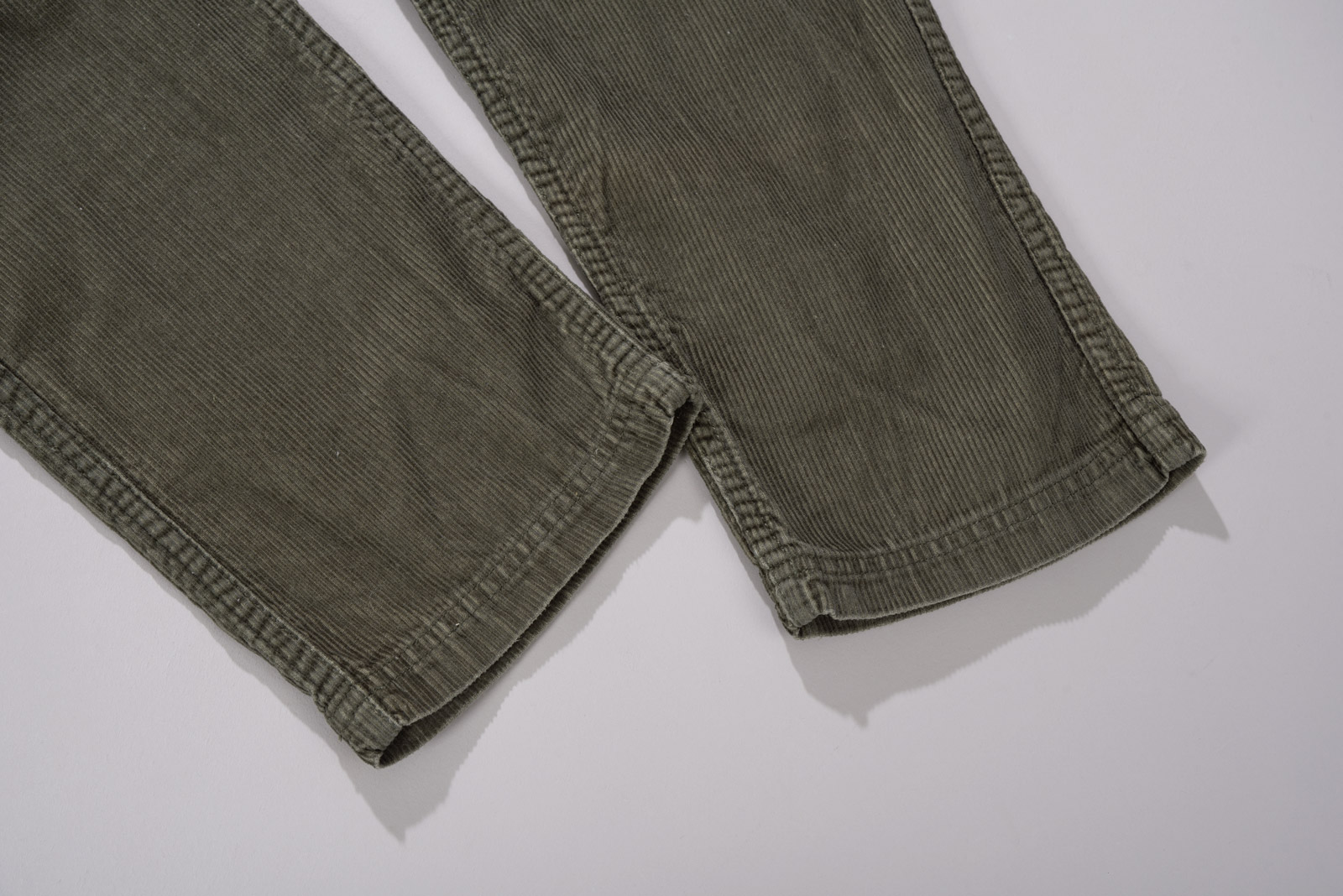 잔잔한 골이 살아있는 코듀로이 소재로 제작되었으며 올리브 컬러 특유의 자연스러운 워싱, 사용감으로 후들후들 편안해진 텍스처가 특징이랍니다.