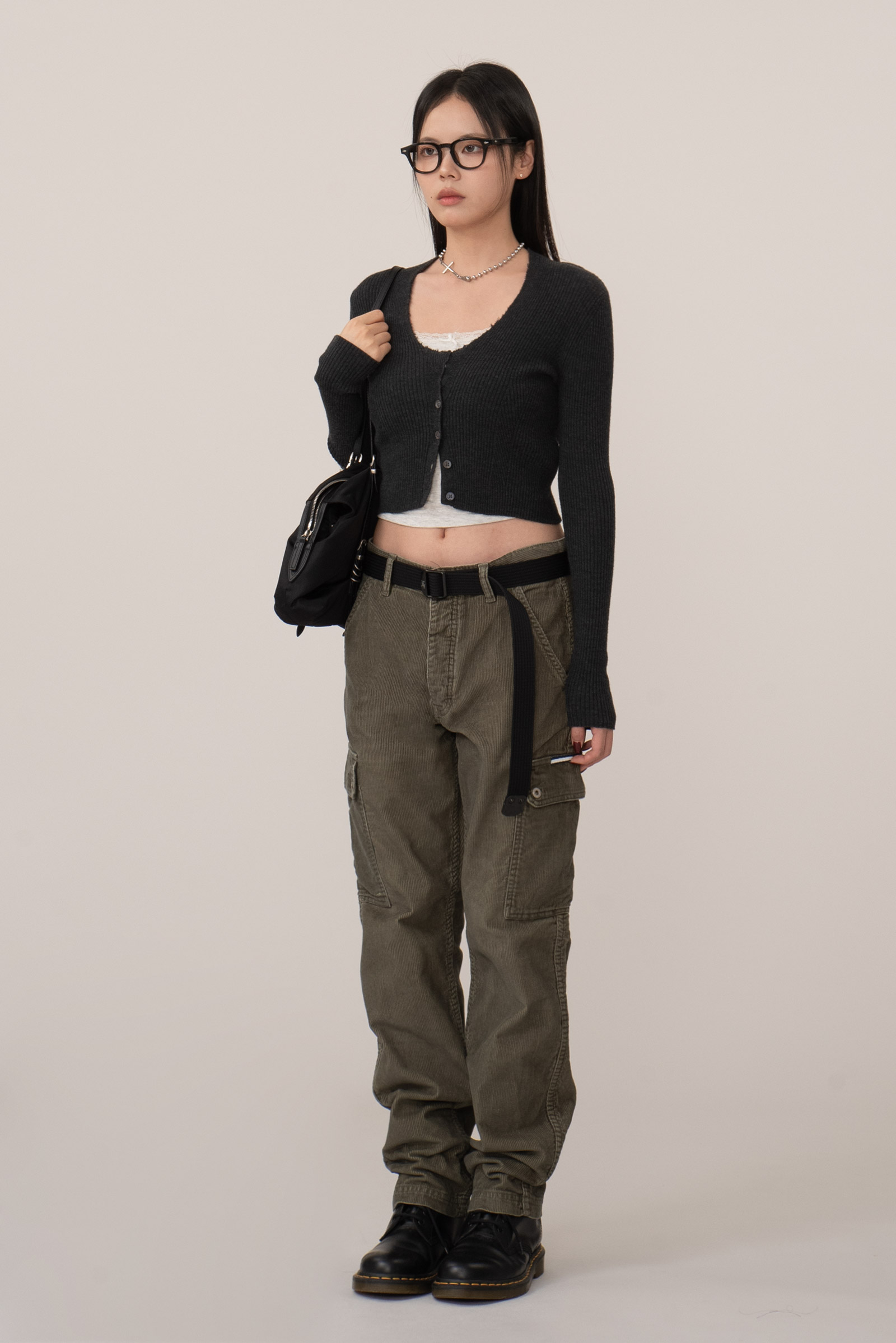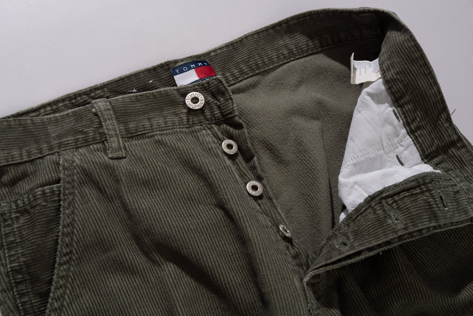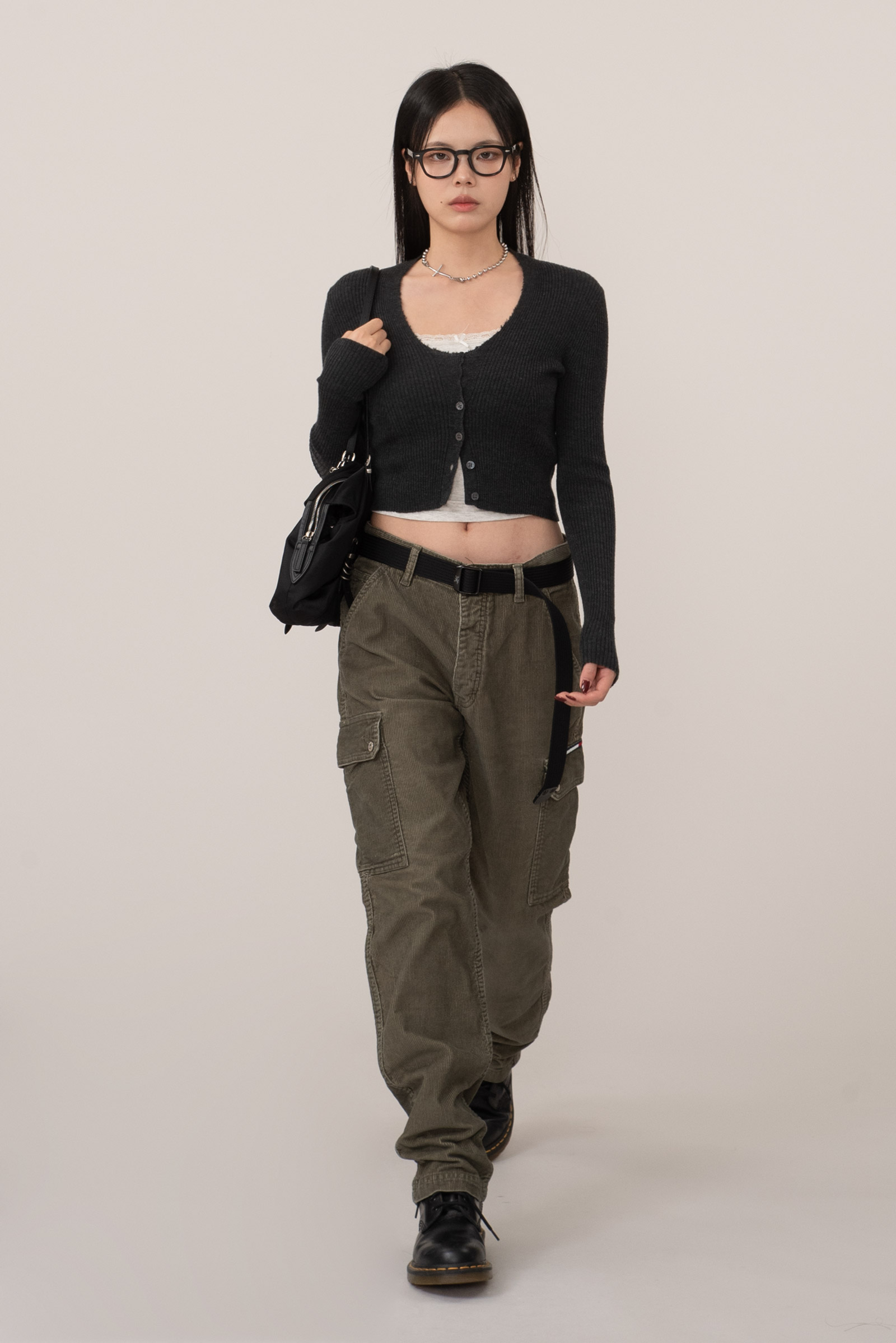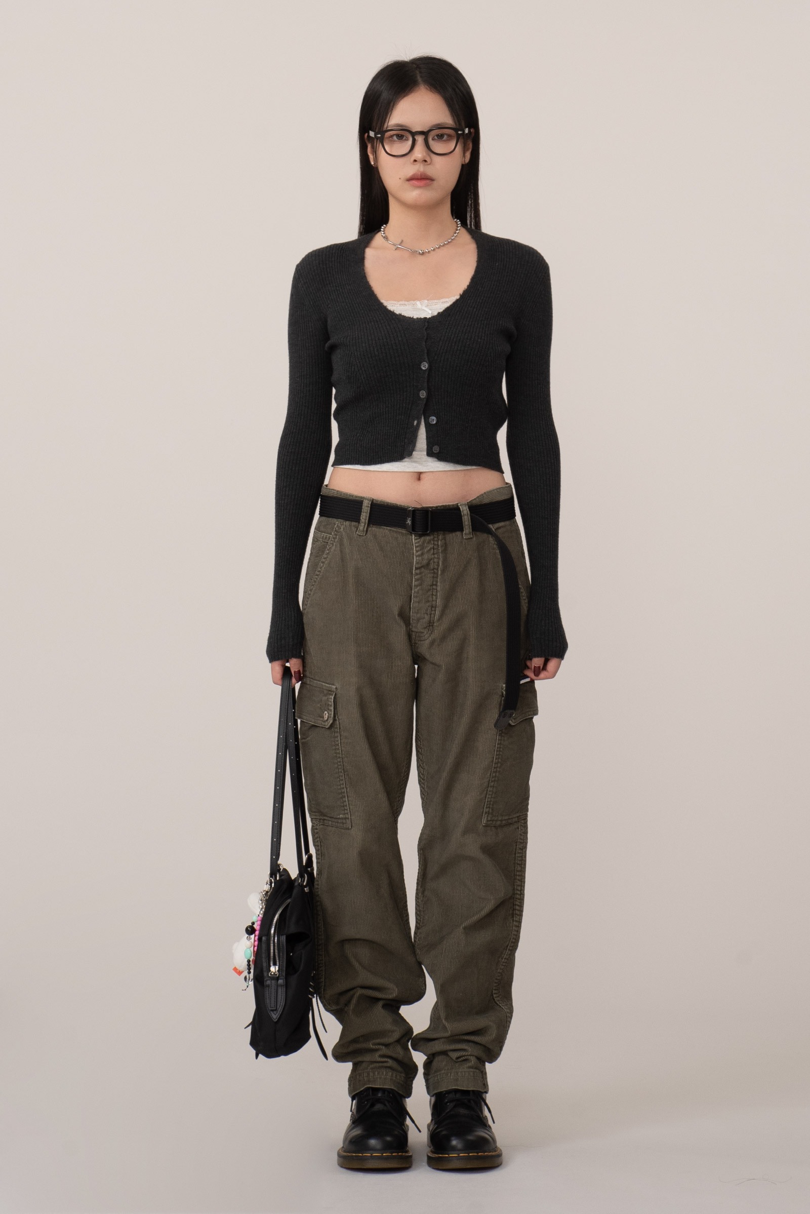 잔잔한 골이 살아있는 코듀로이 소재로 제작되었으며 올리브 컬러 특유의 자연스러운 워싱, 사용감으로 후들후들 편안해진 텍스처가 특징이랍니다.