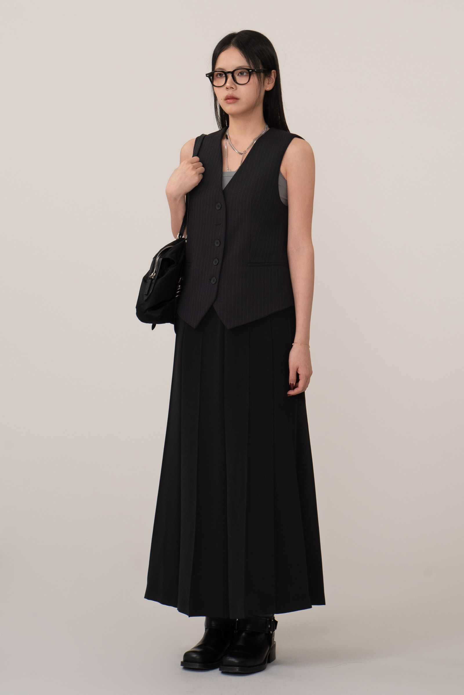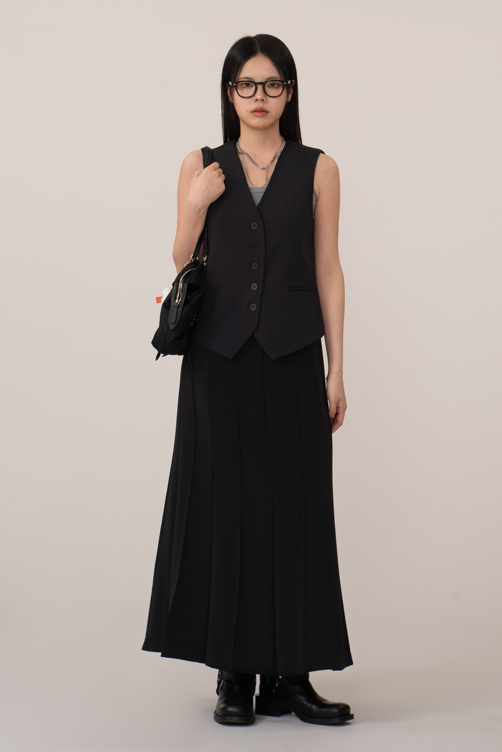 플리츠 주름에 봉제가 되어있어서 세탁이나 착용 시에도 깔끔한 주름 유지 가능하며 무게감 있고 맥시한 기장감으로 다양하게 쓰인답니다.