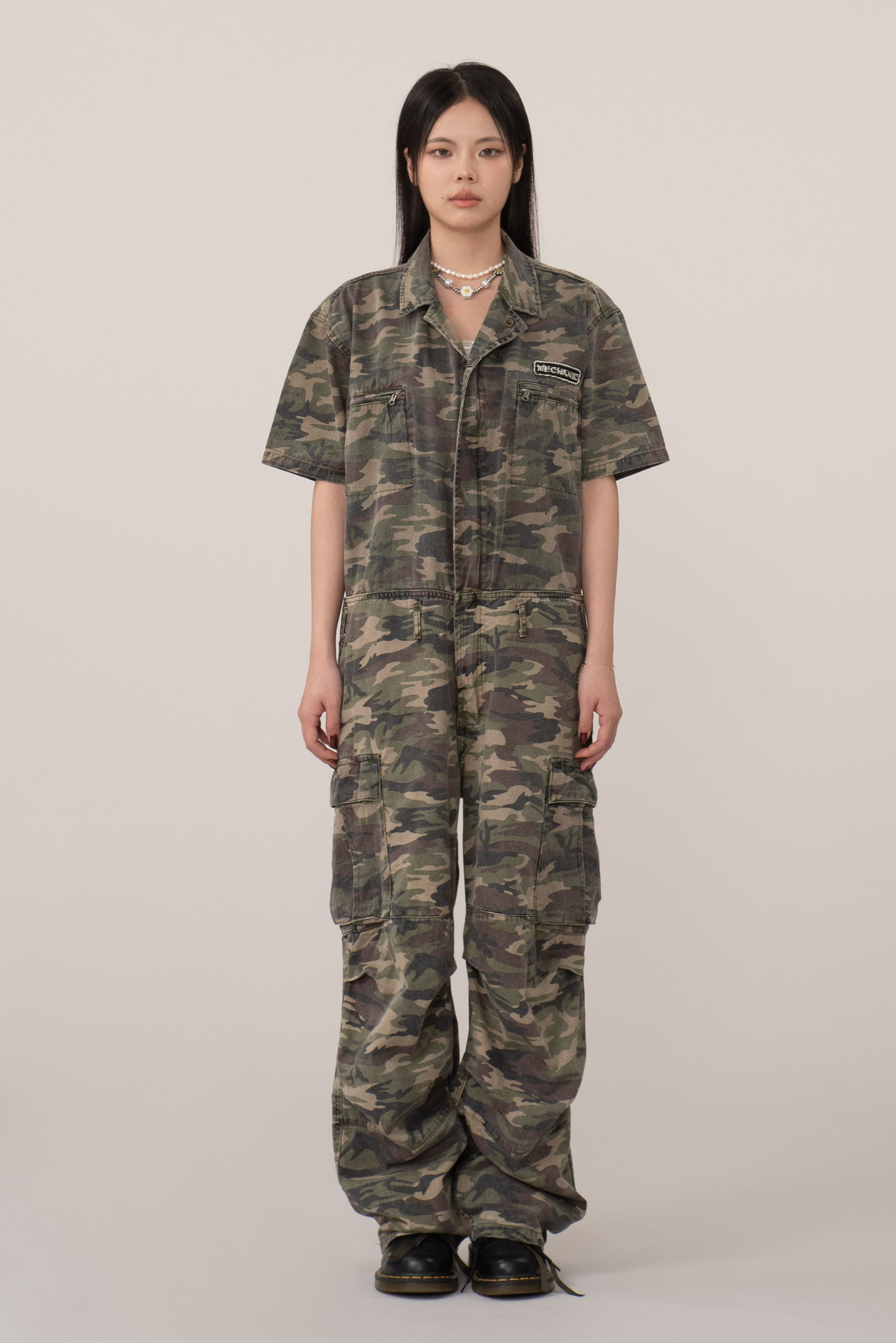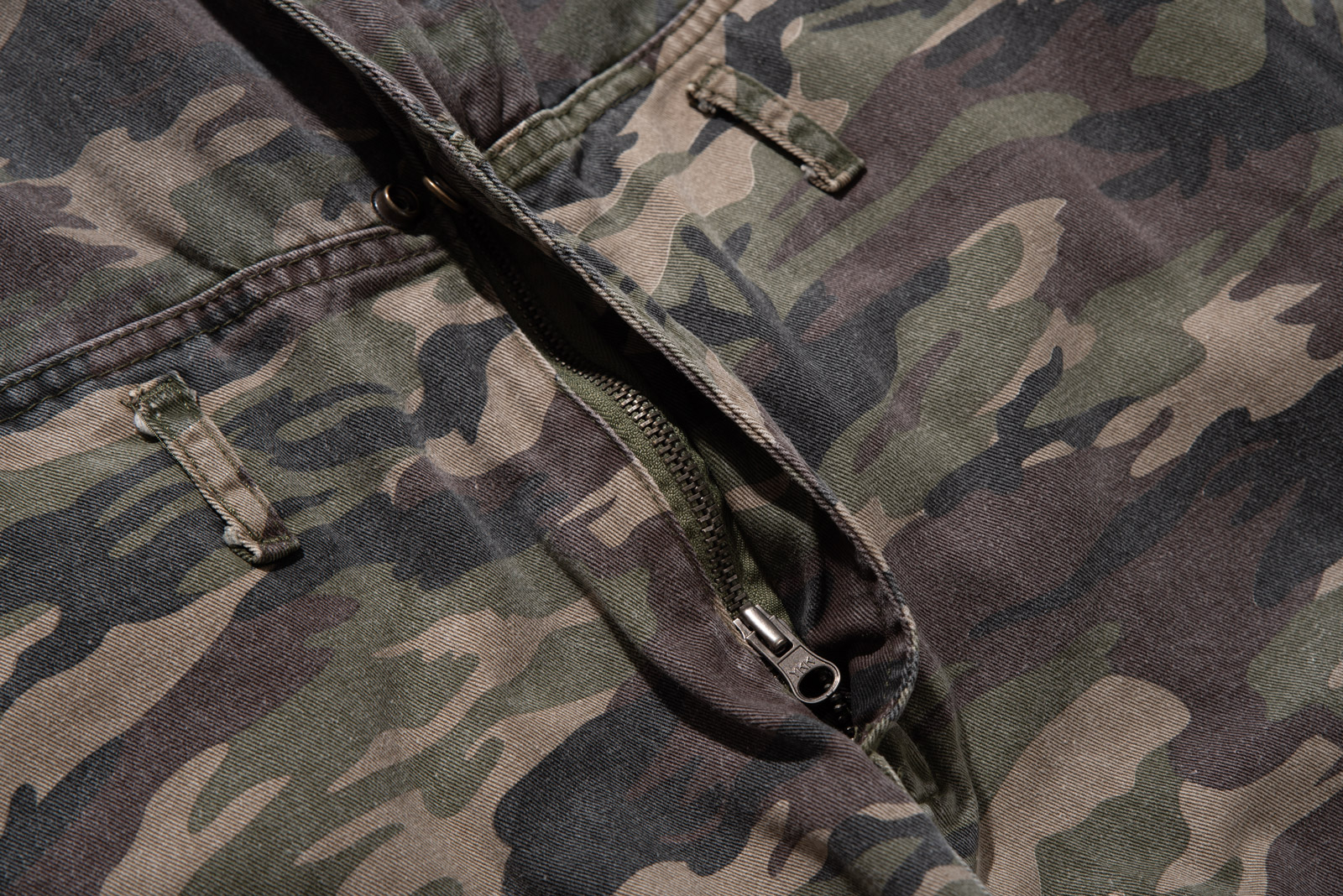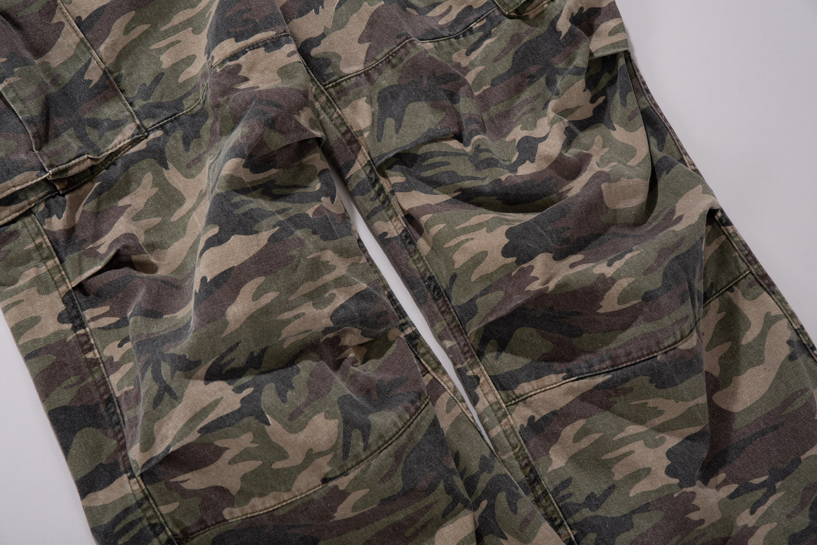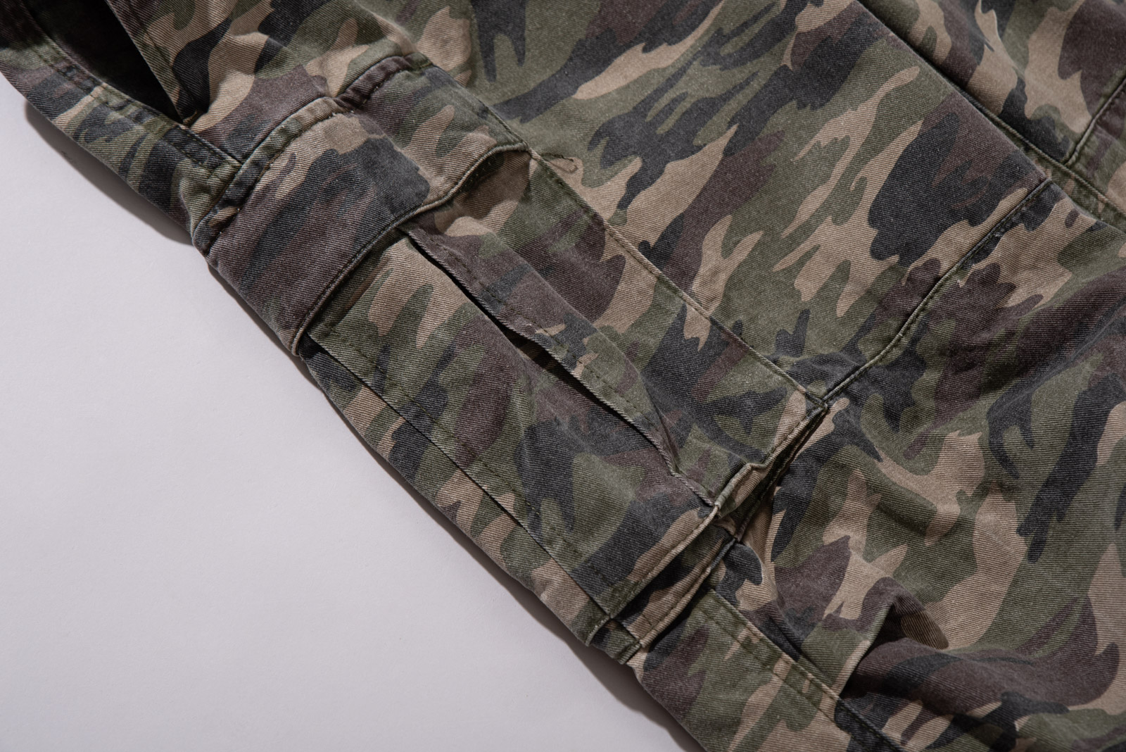 카모 패턴에 워크웨어 감성을 살린 커다란 주머니 디테일로 카고 팬츠의 특징과 자연스러운 결합이 돋보이며 전체적으로 루즈하고 드롭된 실루엣이 인상적이랍니다.