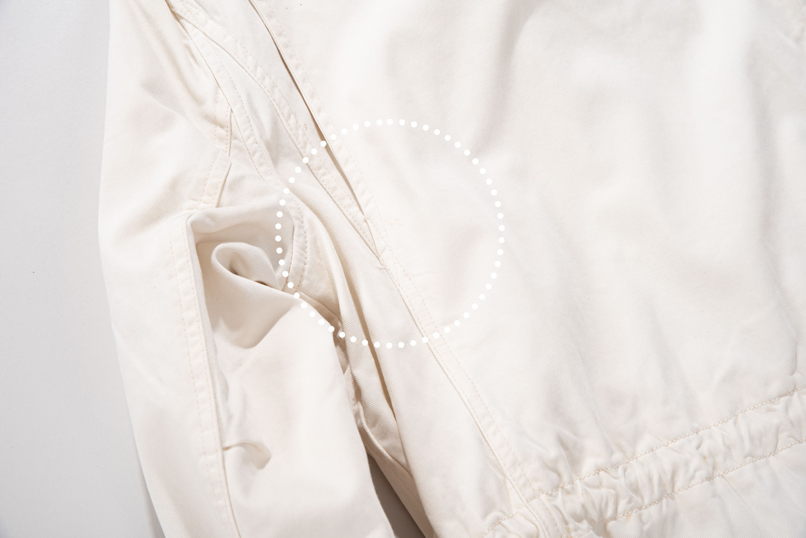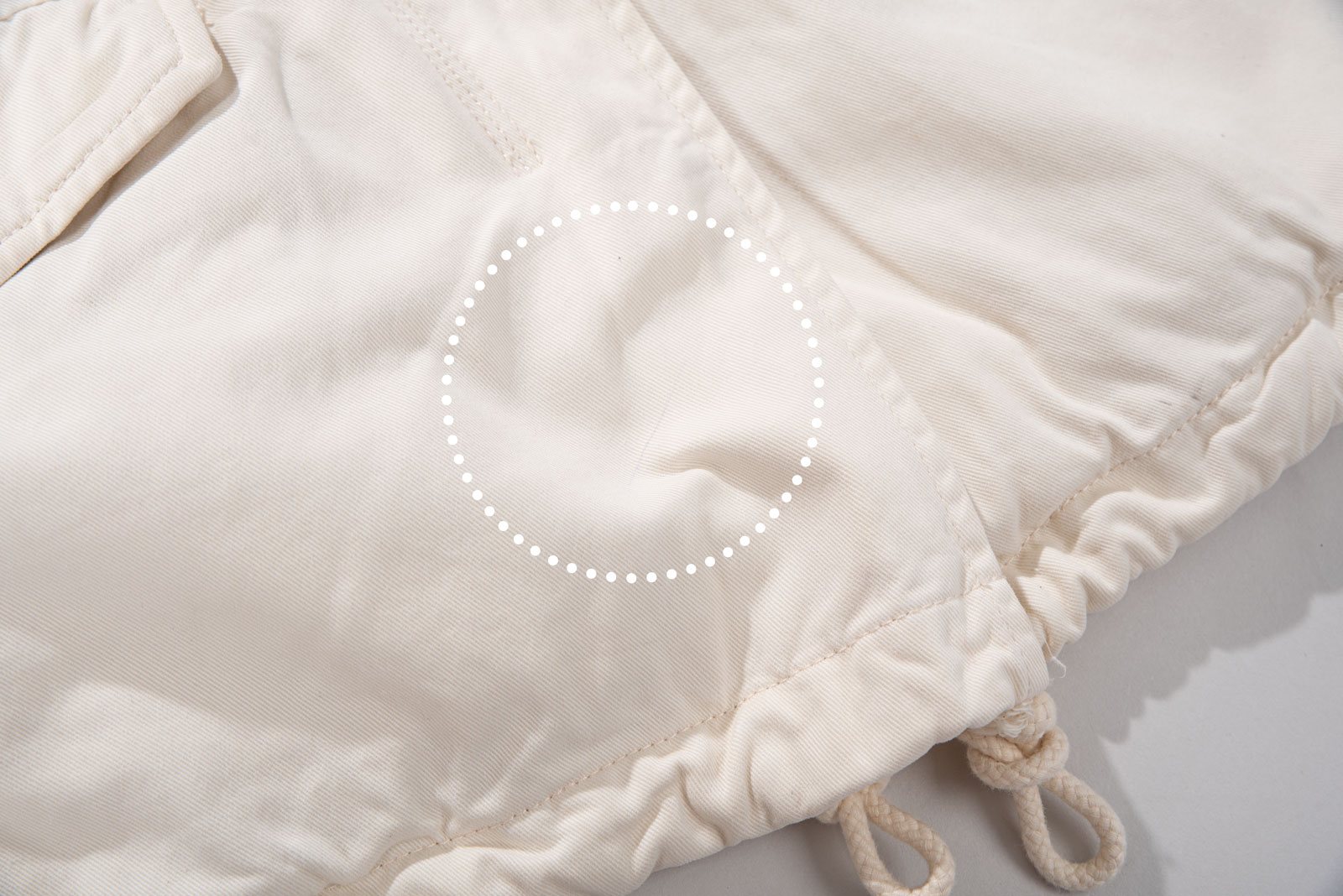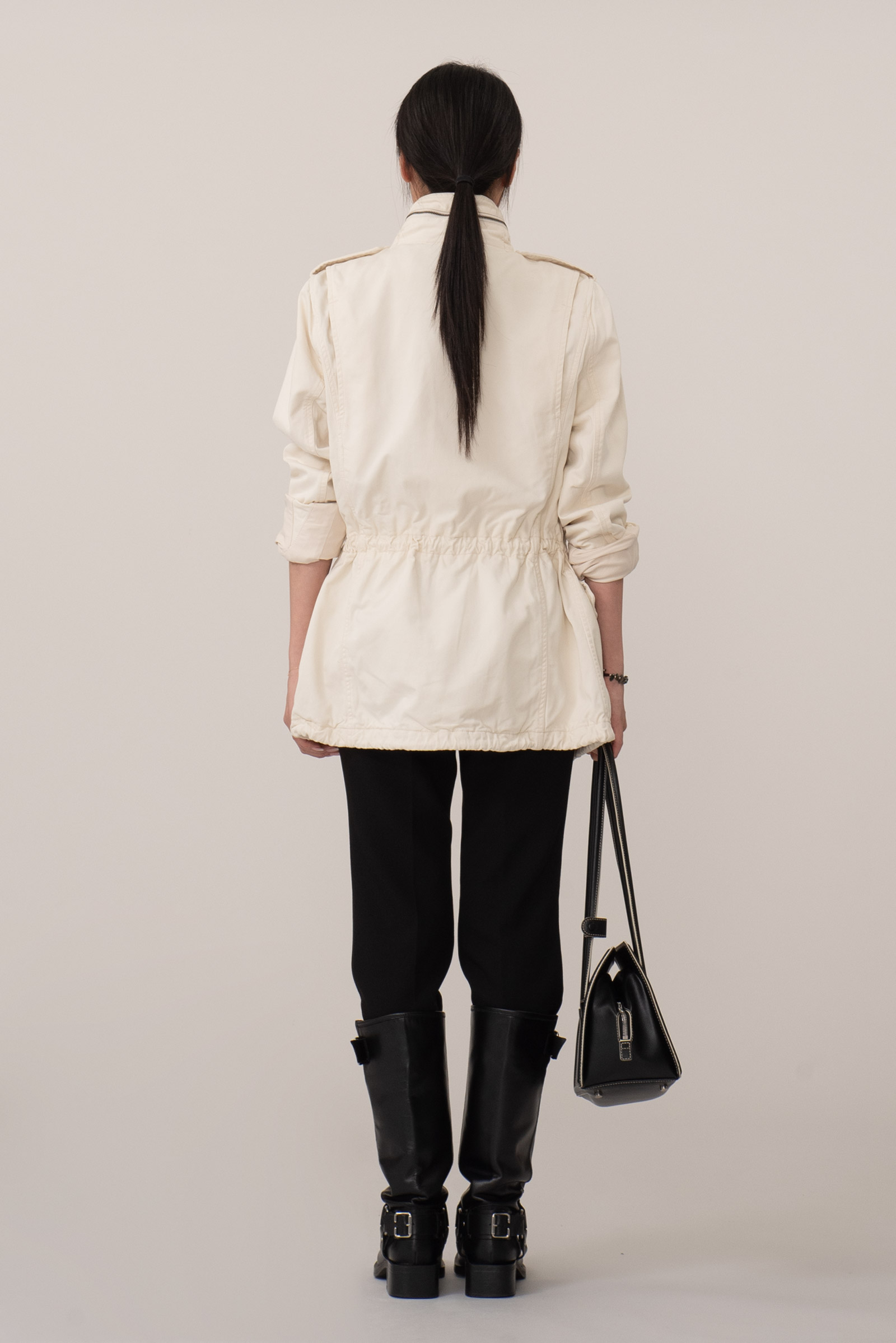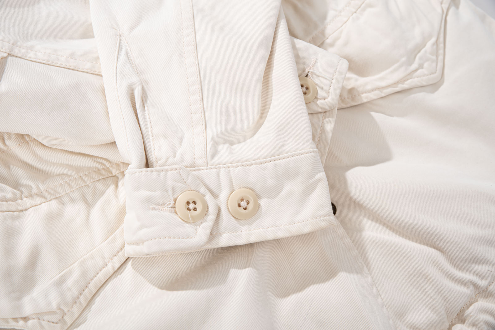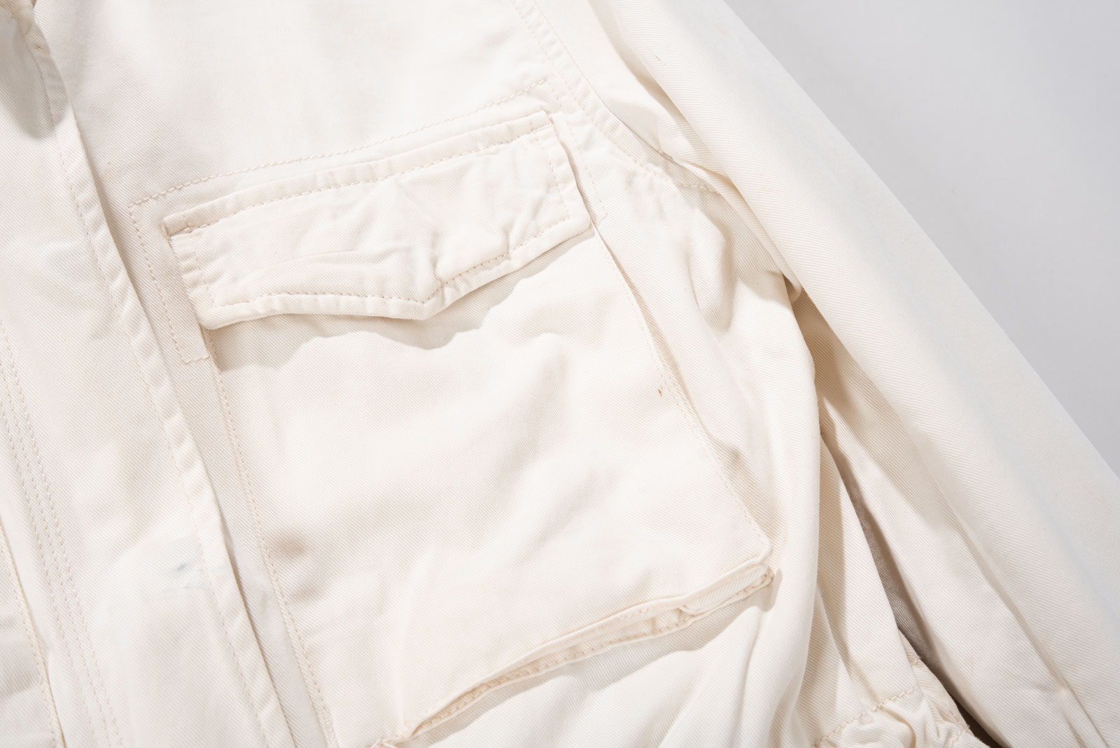 주류인 카키가 아니라 따뜻한 아이보리 컬러에 M65 필드 재킷을 그대로 모방한 전면 멀티 포켓, 견고한 능직 소재와 지퍼 계의 명품인 Ideal 사용되었습니다.