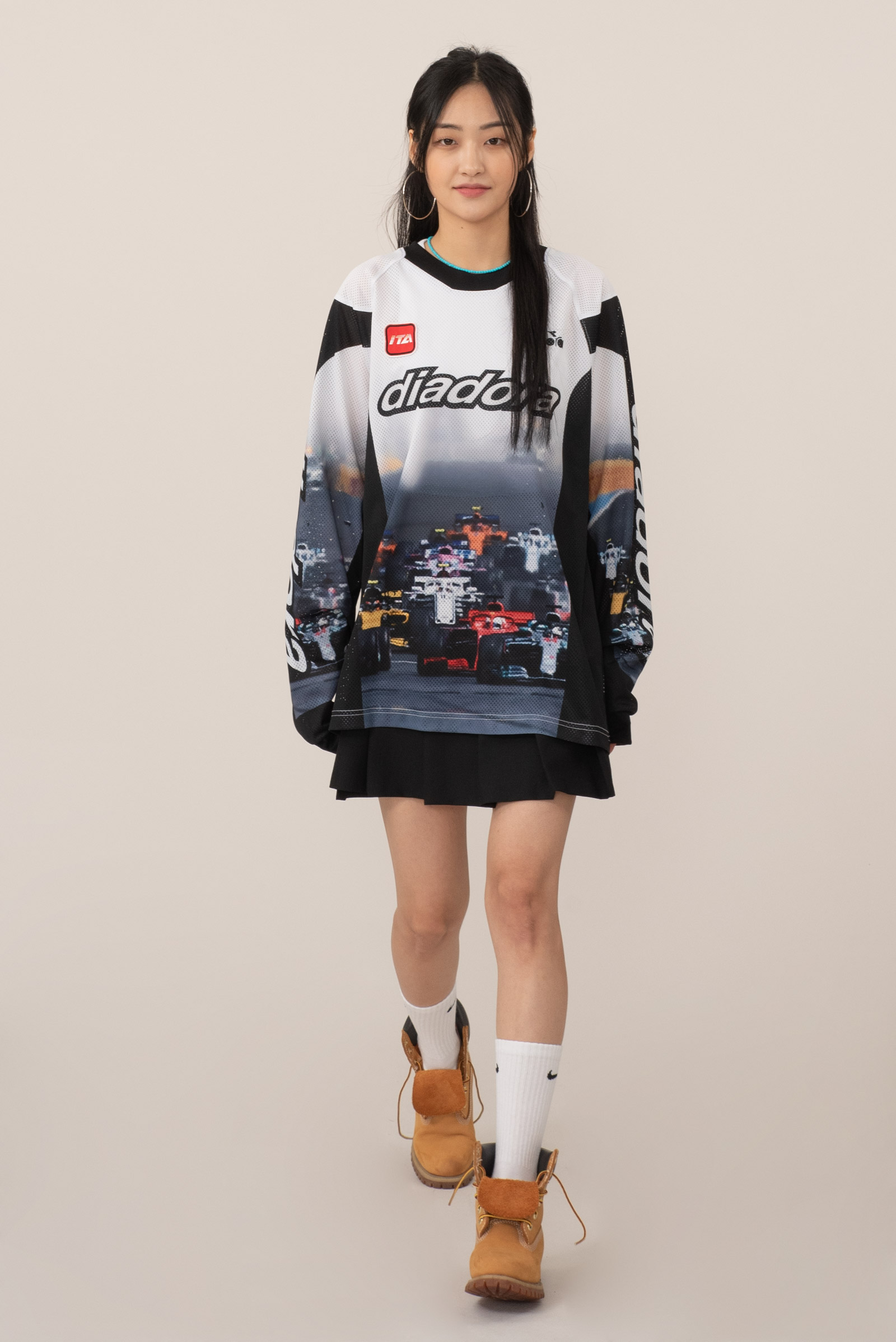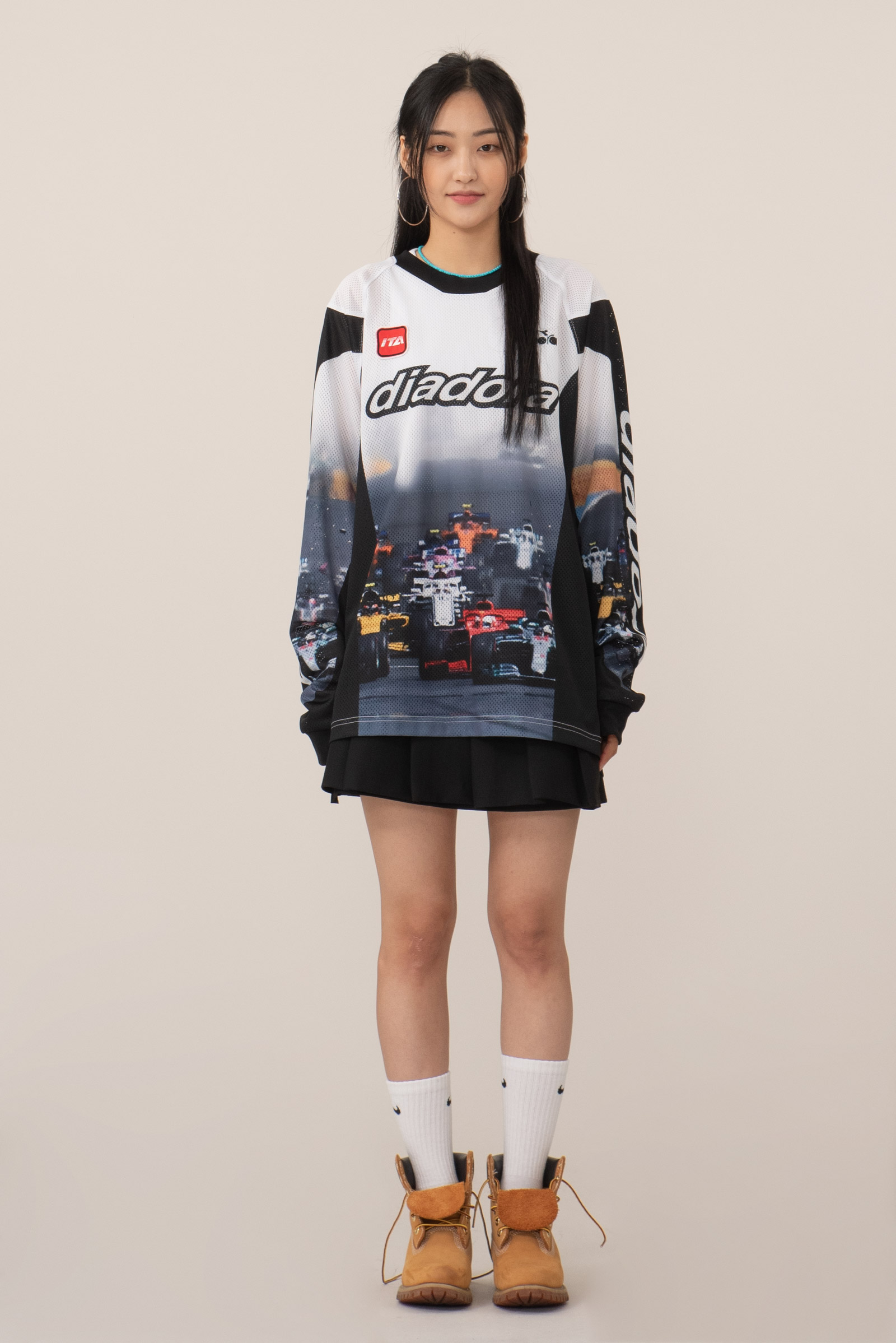 오늘 소개해 드리는 롱 슬리브 역시 디아도라의 아카이브를 살려 전면에 보이는 커다란 브랜드 네임과 다채로운 색감의 디지털 프린팅이 생동감을 느끼게 해주는 피스인데요.