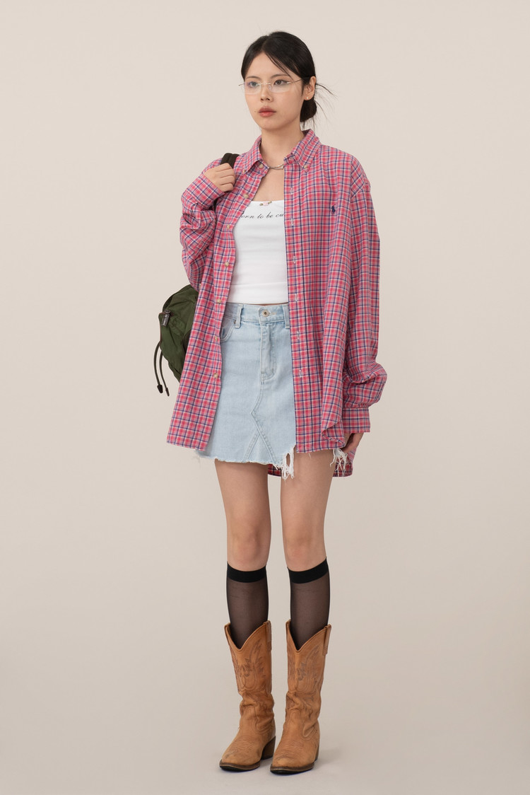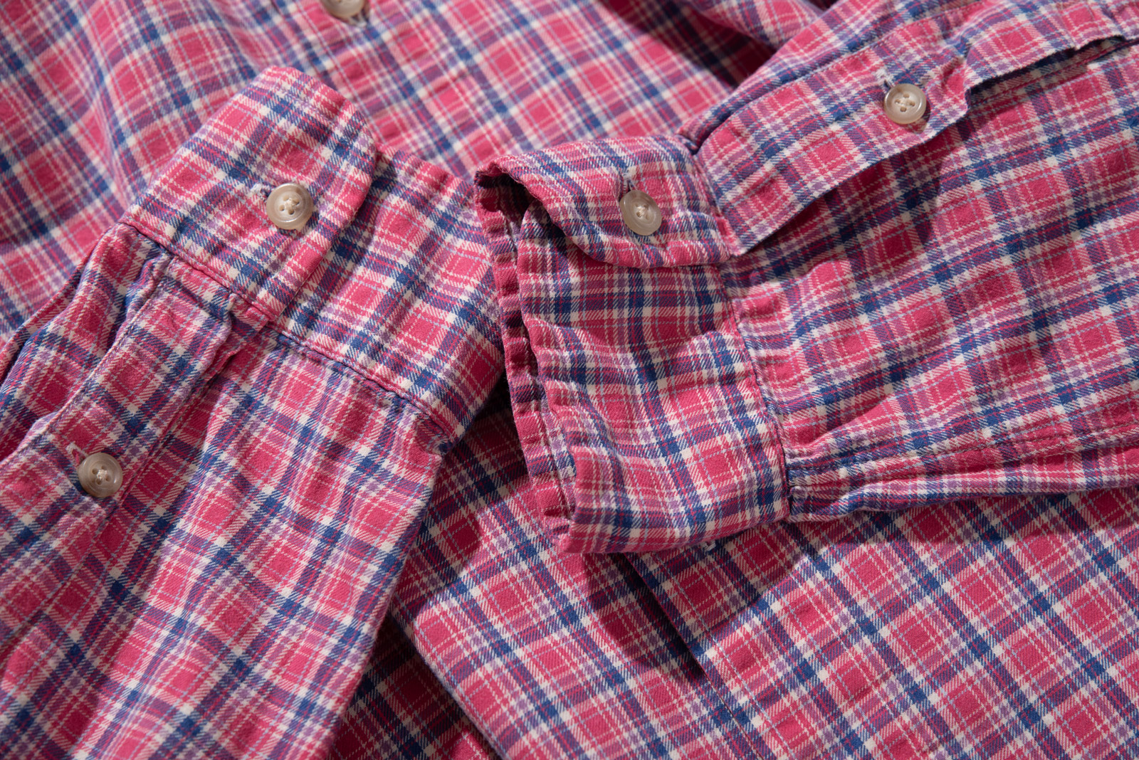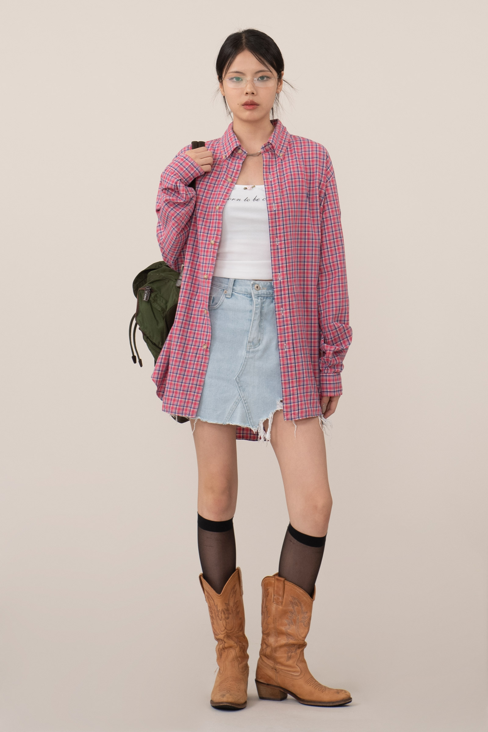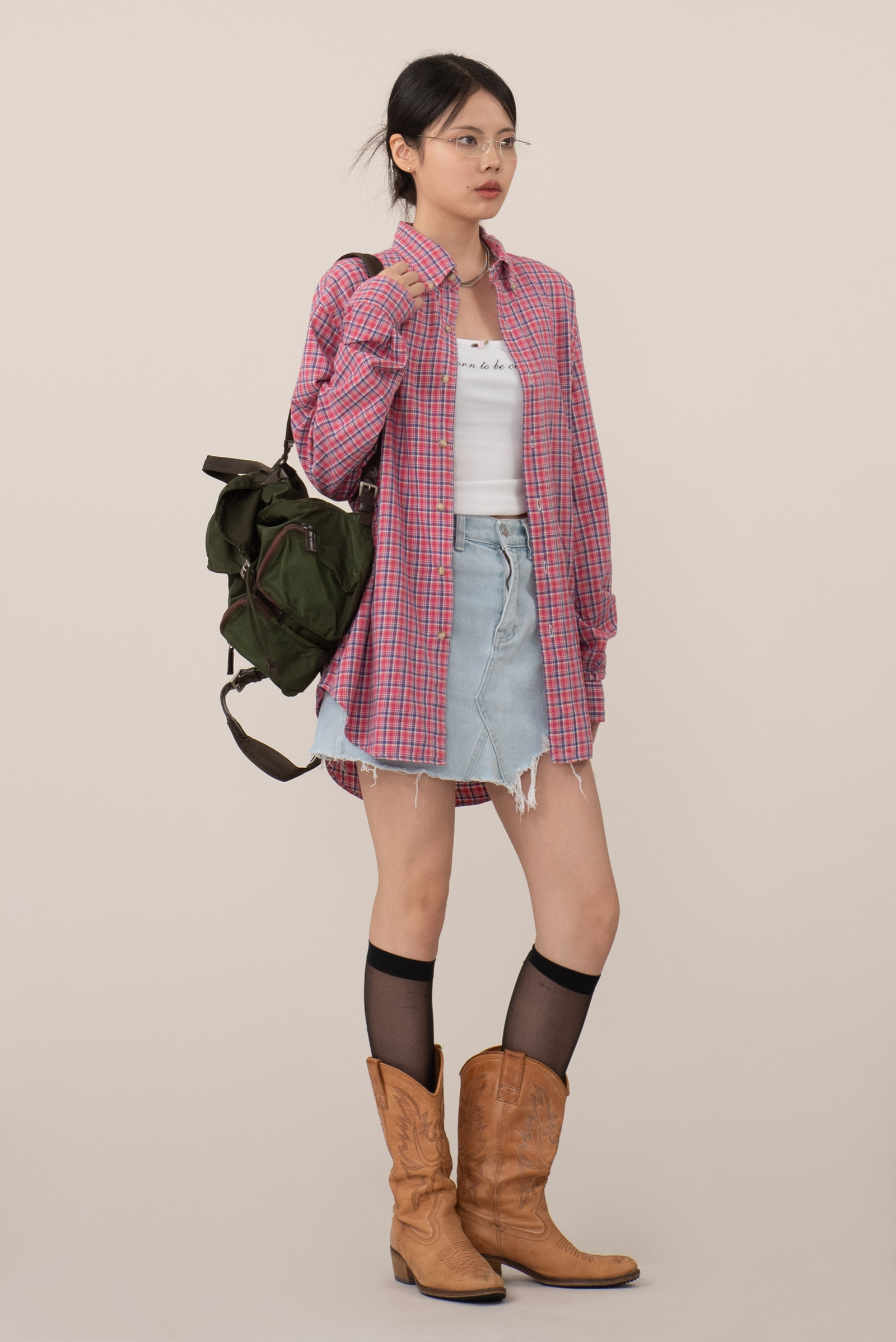부드럽게 가공된 코튼 소재, 핑크 베이스 체크 패턴으로 캐주얼하게 착용되는 제품이에요.