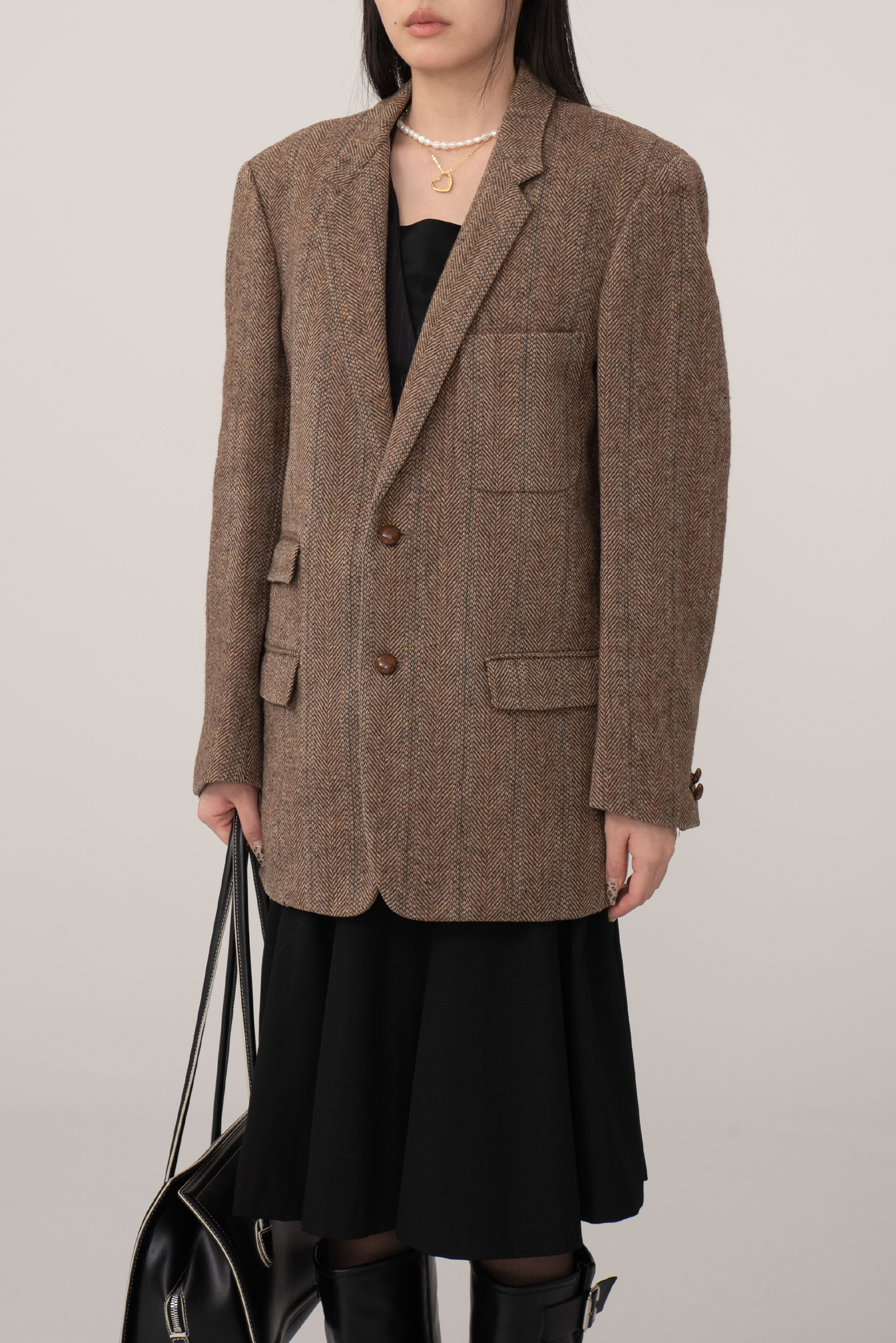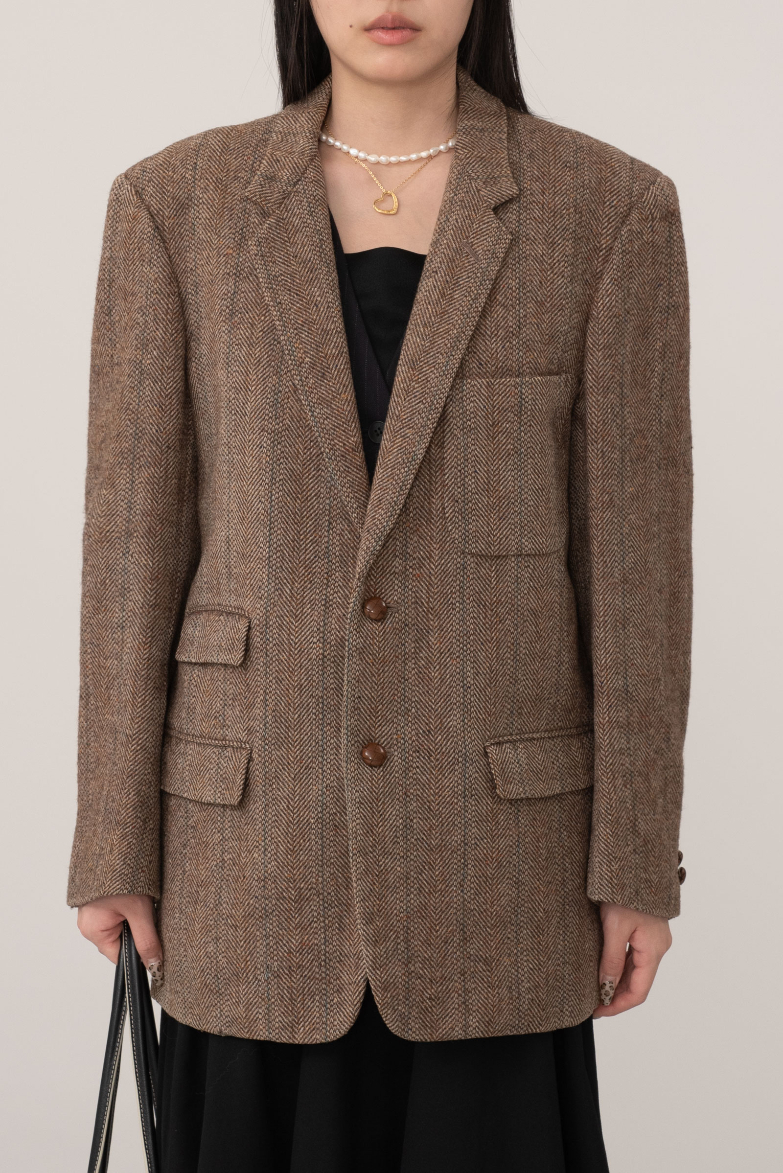 ▫comment - 마가렛호웰에서 해리스 트위드 원단으로 제작된 투 버튼 헤링본 재킷입니다.