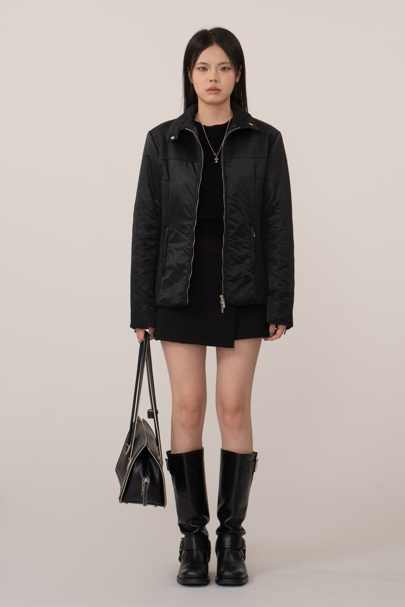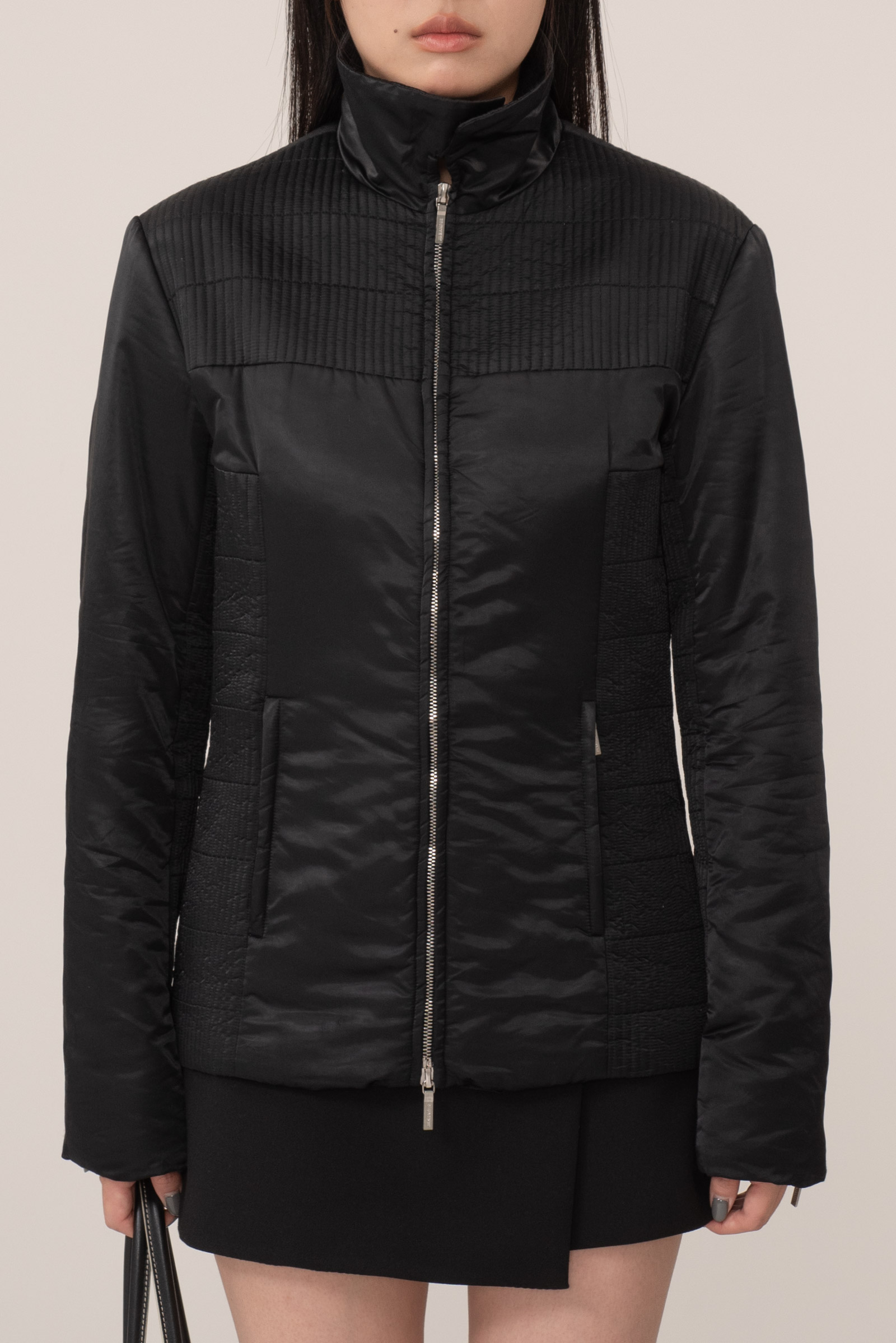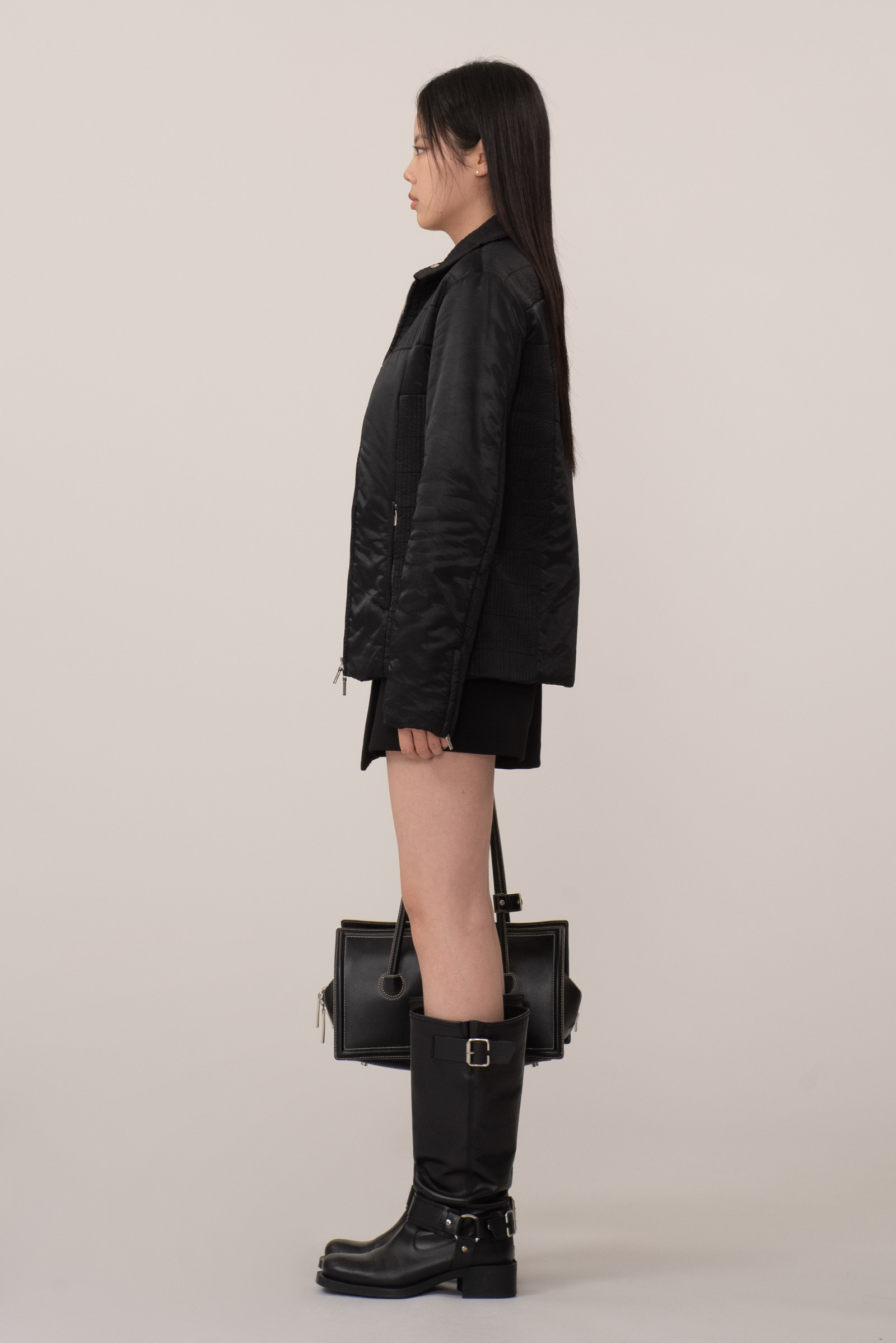 기본이 되는 블랙 컬러에 질샌더가 음각된 투웨이 지퍼로 기능적이며 어깨와 옆구리에 직각 퀄팅 패턴이 섬세하게 들어간 디자인이랍니다.