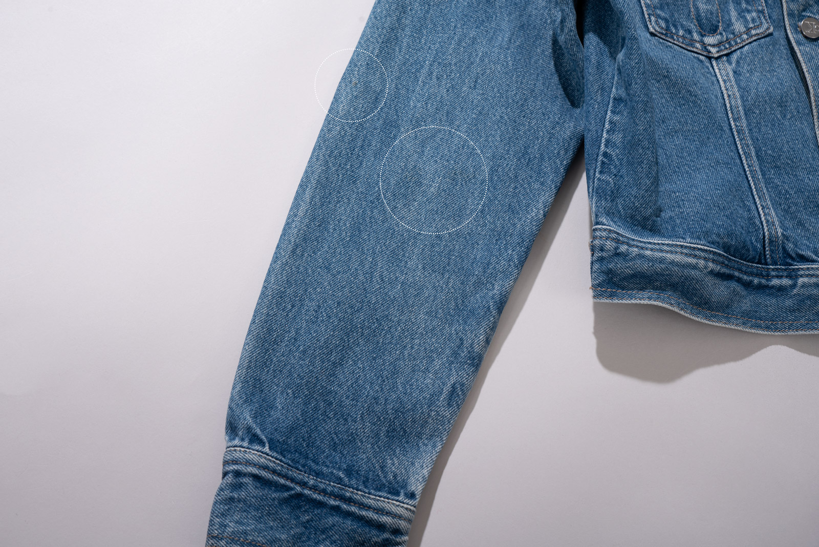 중청에서 약간의 워싱이 더해진 페이드 블루 톤이 특징이며 시간의 흐름에 따라 자연스럽게 만들어진 색감은 빈티지 데님의 매력을 고스란히 보여주고 있네요.