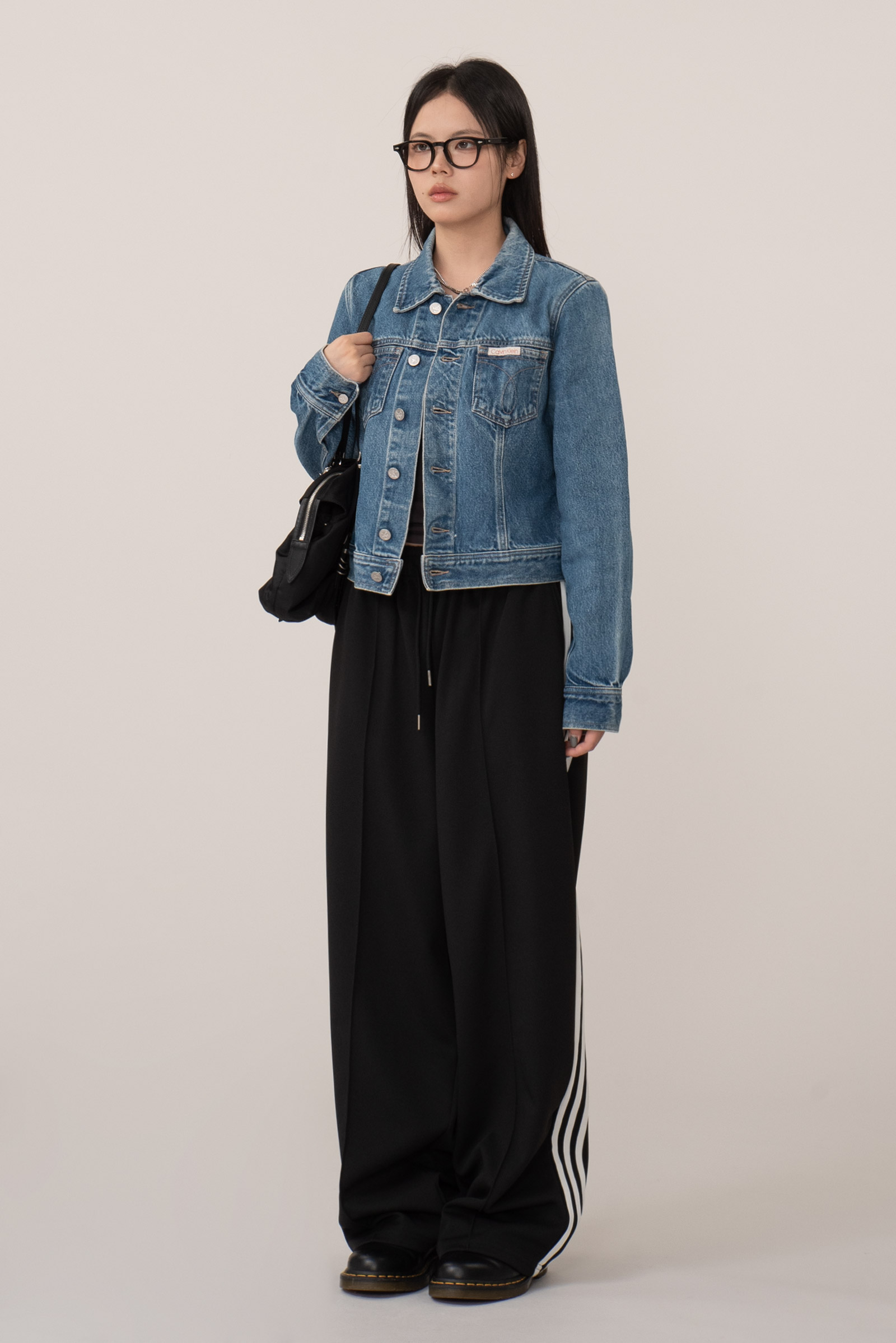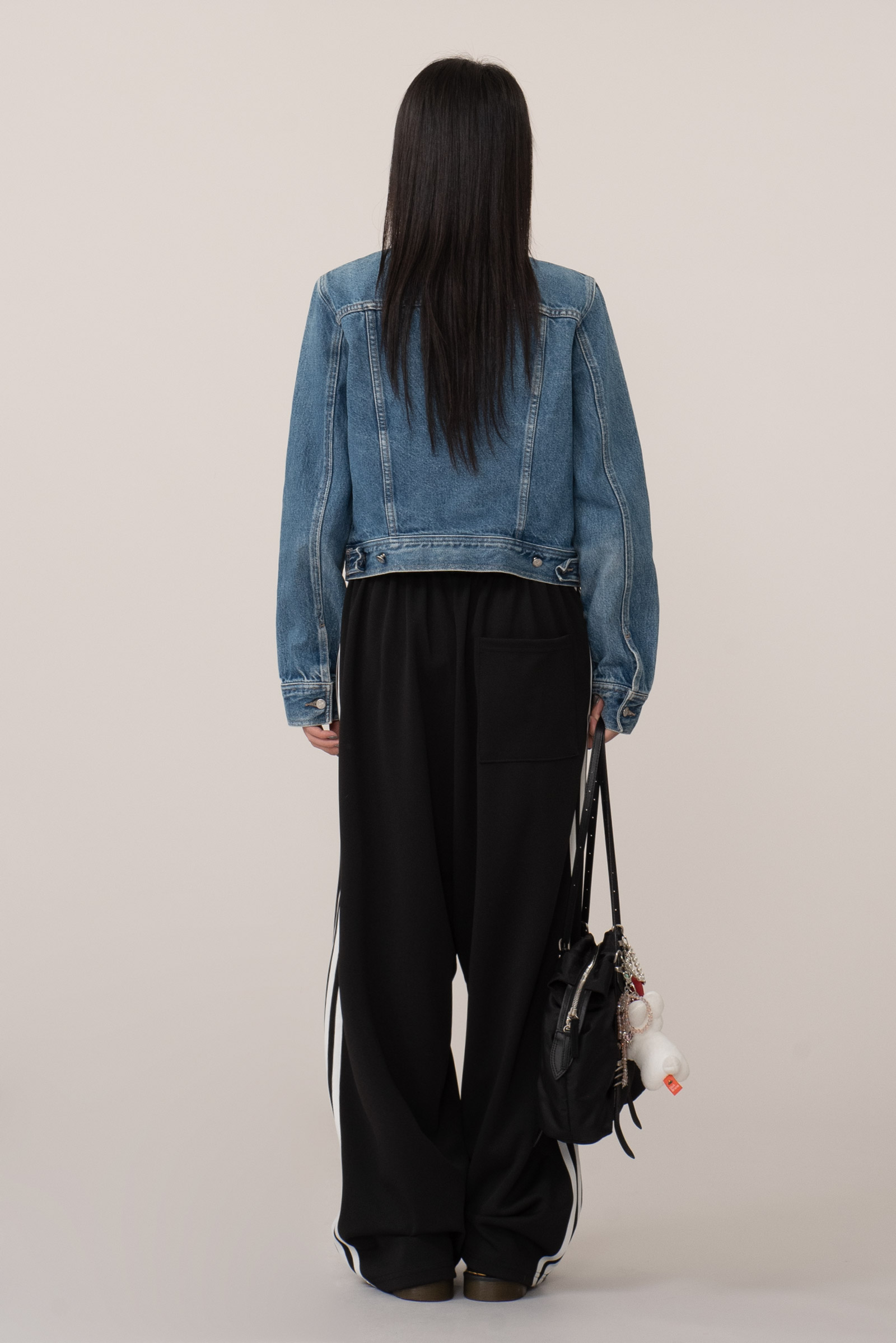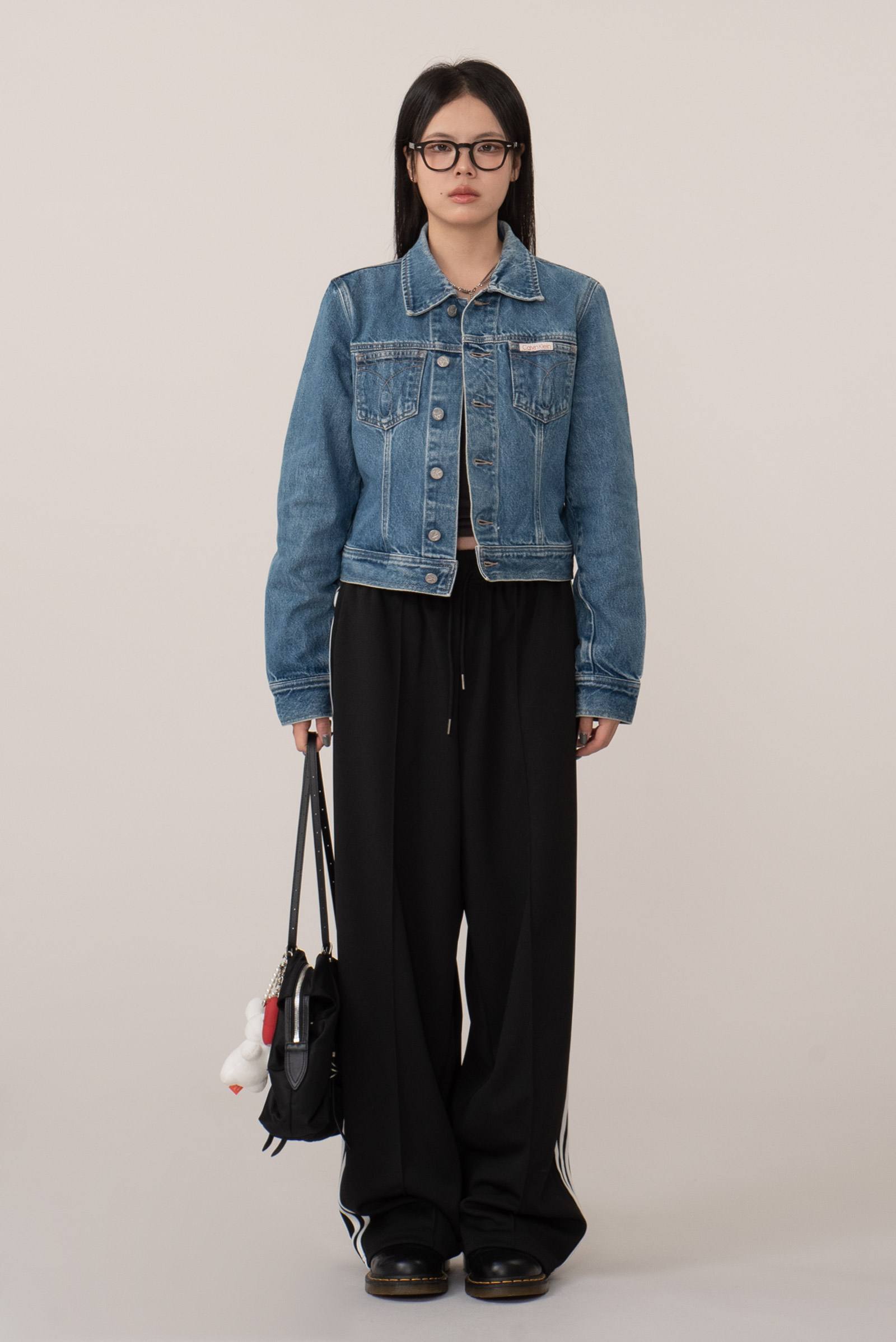 전체적인 실루엣은 90년대 트러커 재킷의 전형적인 형태를 유지하며 짧은 기장과 직선적인 어깨선, 여유 있는 슬리브 라인으로 스포티하면서도 유연한 스트리트 감성 연출된답니다.