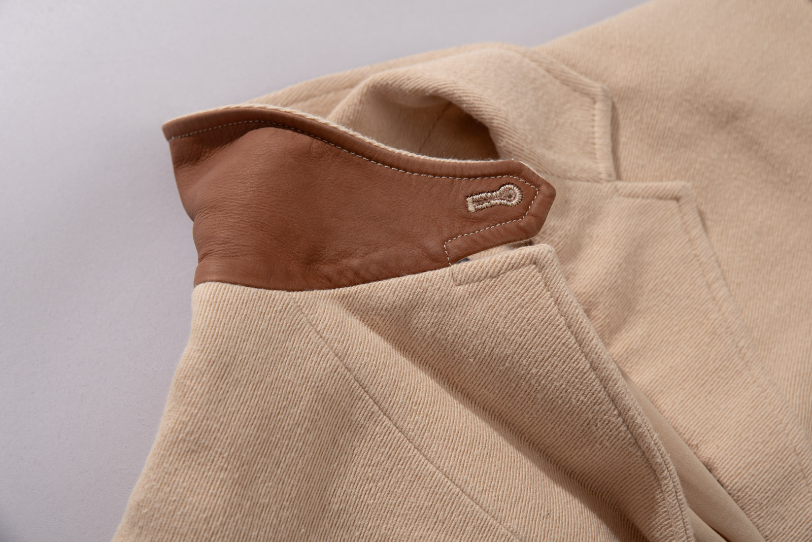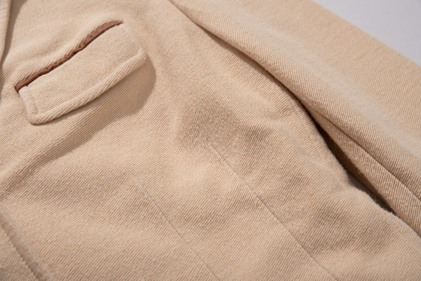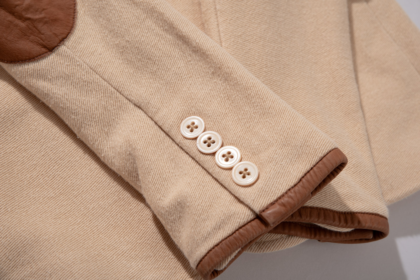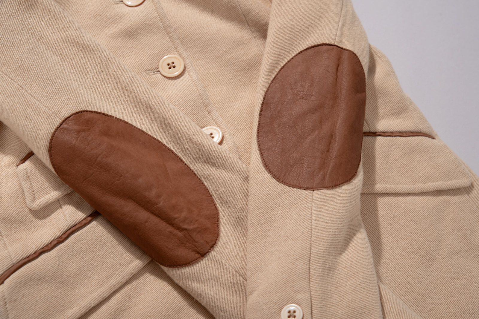100% 코튼 능직 원단에 톤 다운된 병아리 콩 컬러로 심플하지만 원단 특유의 고급스러움과 카라와 소매 끝, 엘보 패치에 스웨이드 디테일을 더해 전통적인 컨트리 스포츠 웨어 감각을 강조했답니다.