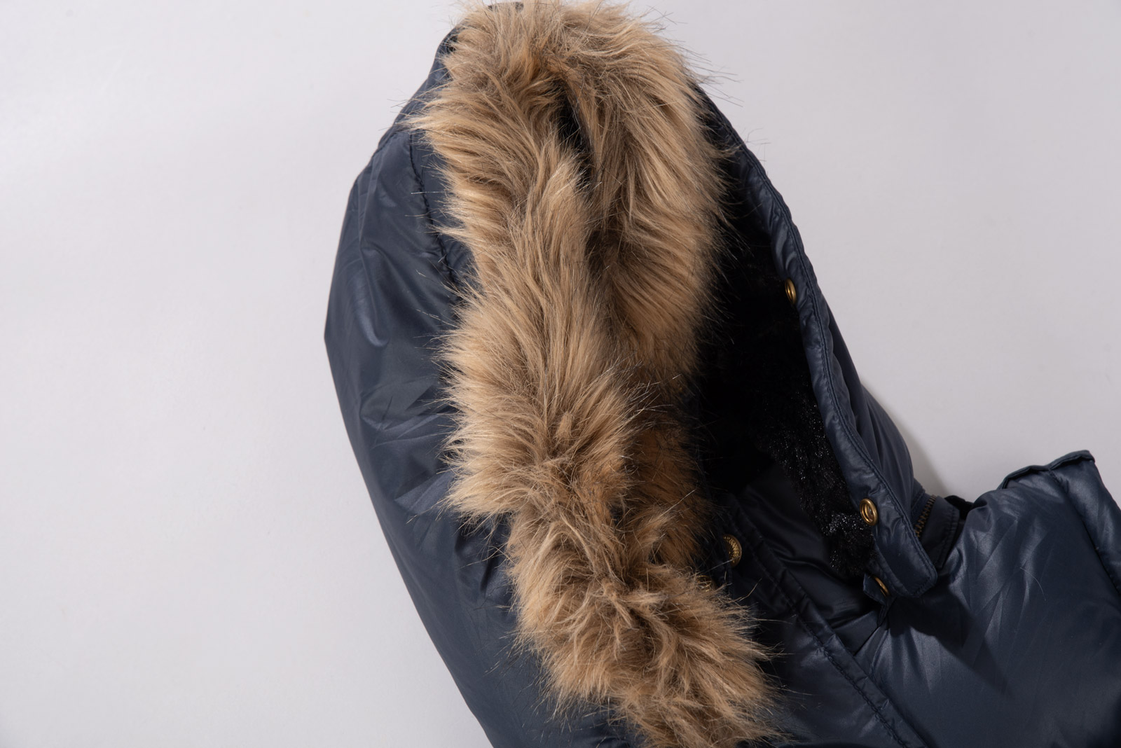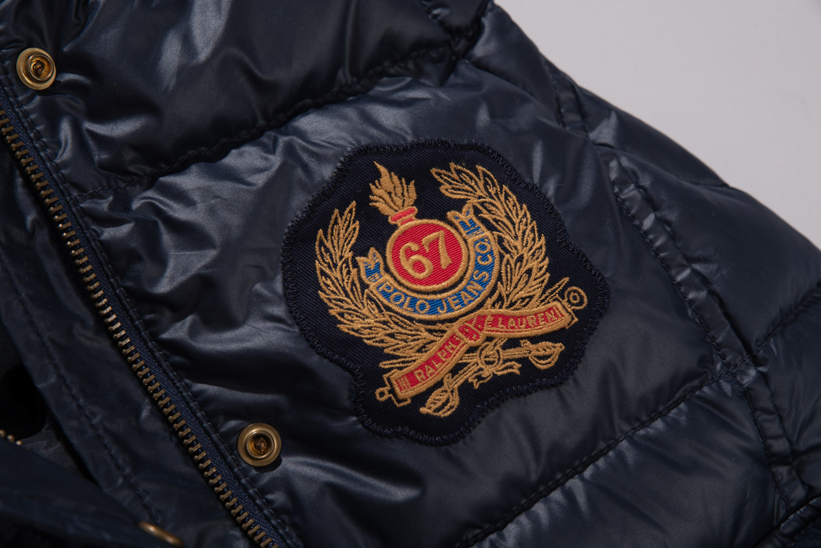 매끈한 네이비 나일론 셸에, 골드 컬러의 스냅 버튼과 로렌 자수 엠블럼이 더해져 고급스러우면서도 유스풀한 인상을 준답니다.