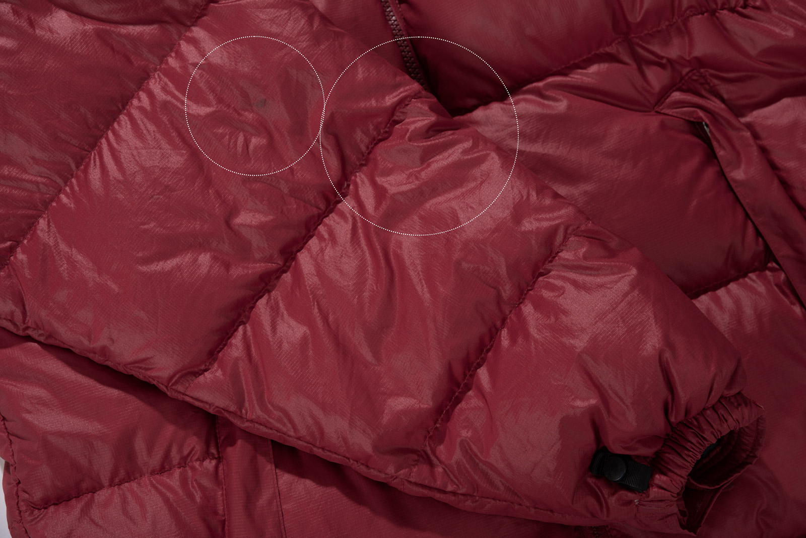 우모량 손실도 있고 보시다시피 곳곳에 이염, 기름얼룩 같은 오염 등 사용감 다양한 피스라 막 입으실 손님께 권해드리며 컨디션 기대 없이 구매해 주시길 부탁드릴게요.