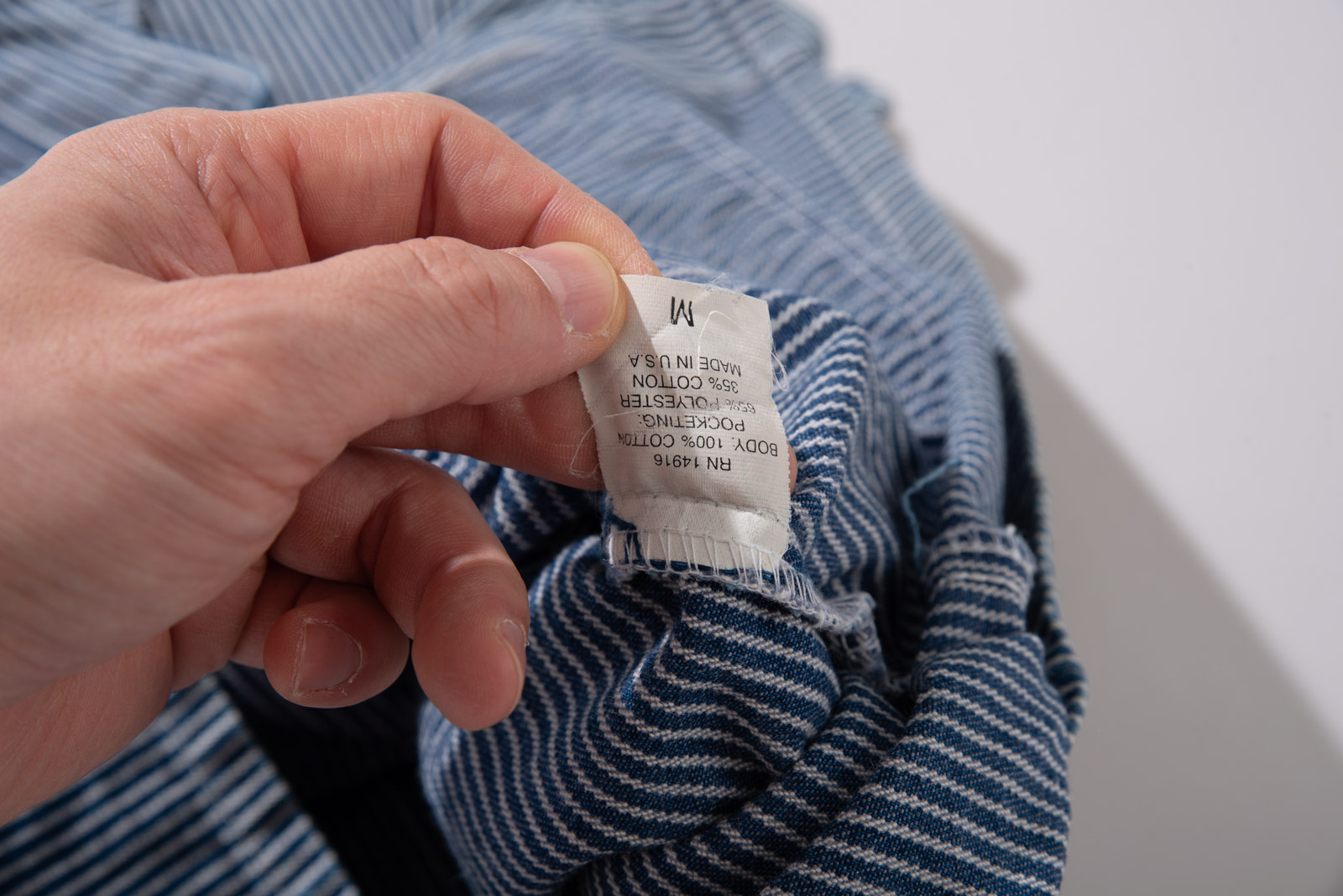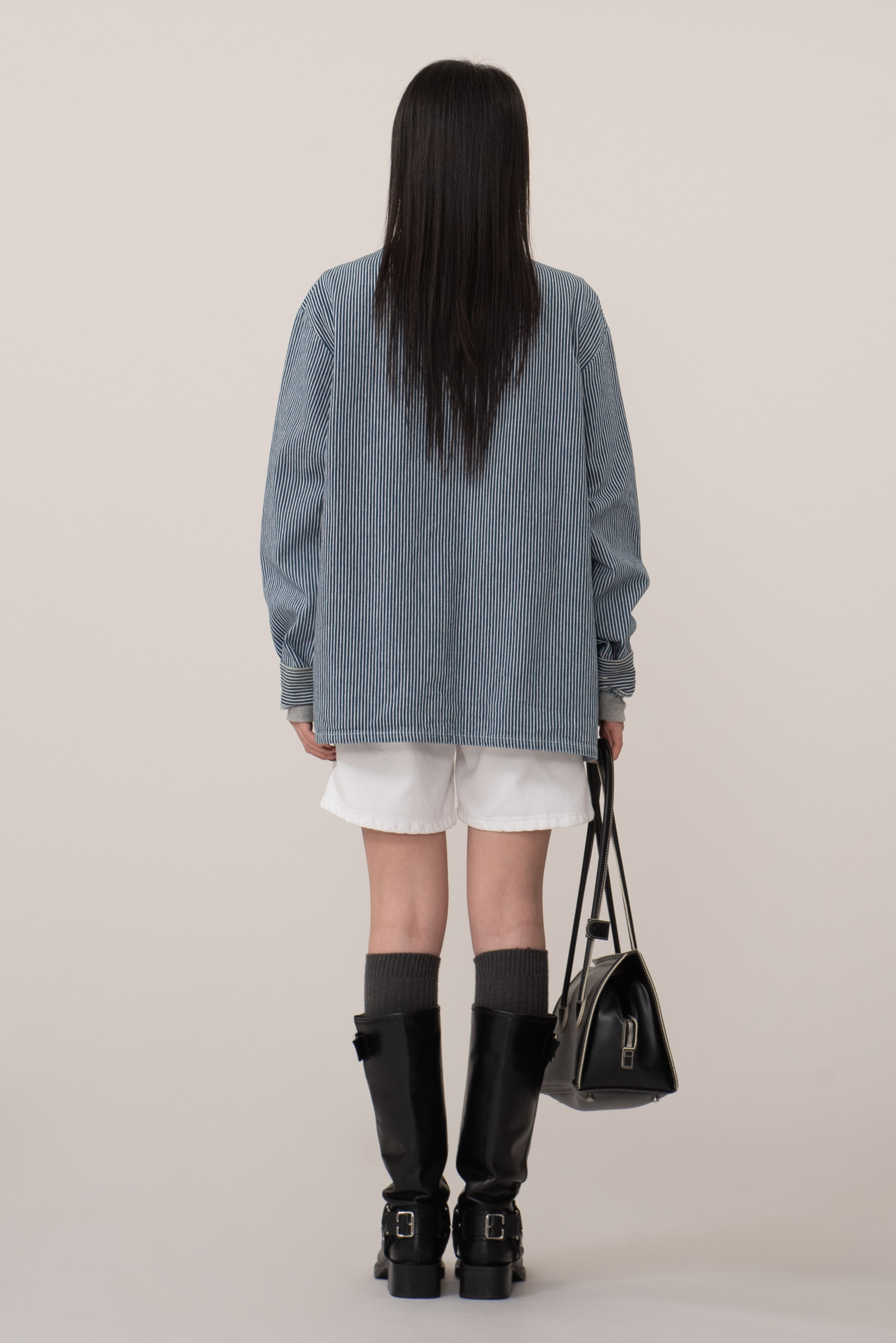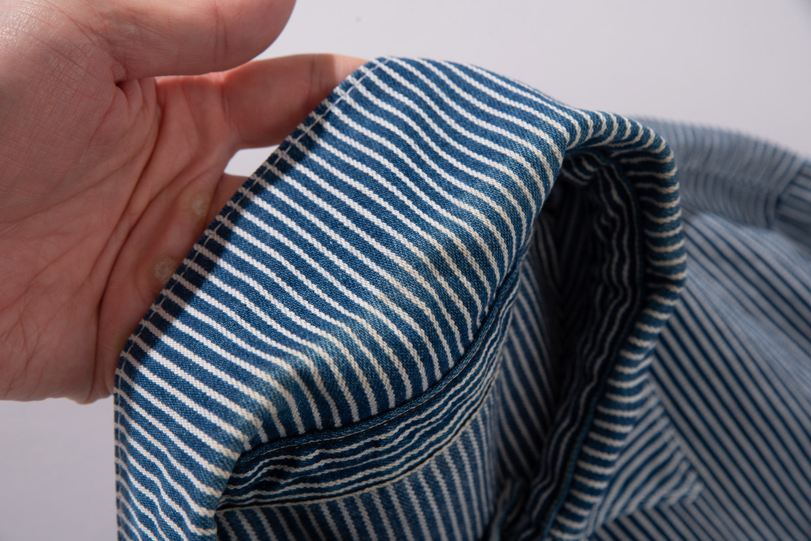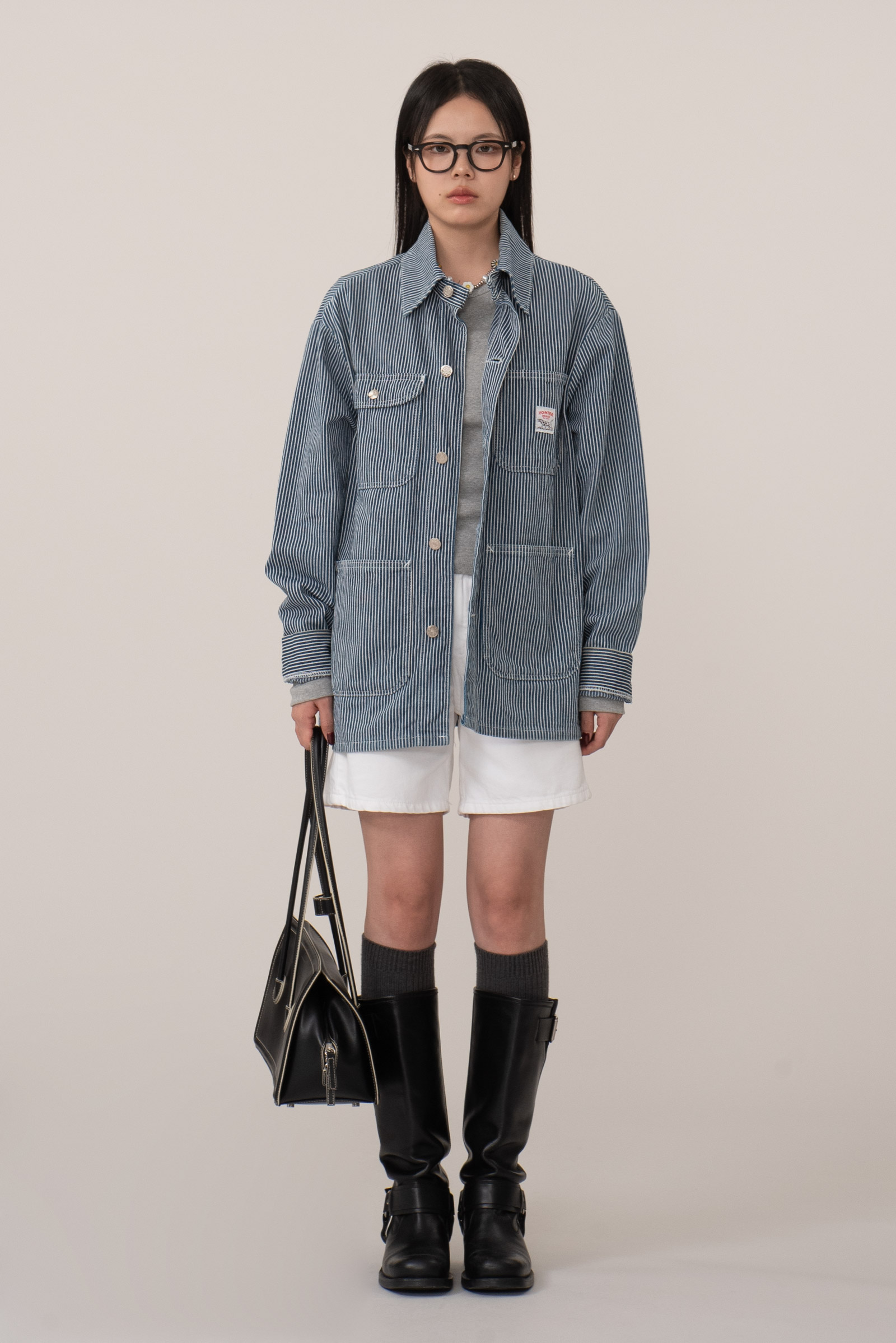 100% 코튼 히커리 스트라이프 특유의 블루, 화이트 스트라이프 패턴으로 데님과 캔버스 사이 밀도의 워크웨어 전용 원단으로 제작, 내구성이 좋고 형태가 쉽게 무너지지 않아 오랫동안 변형 없이 착용된답니다.