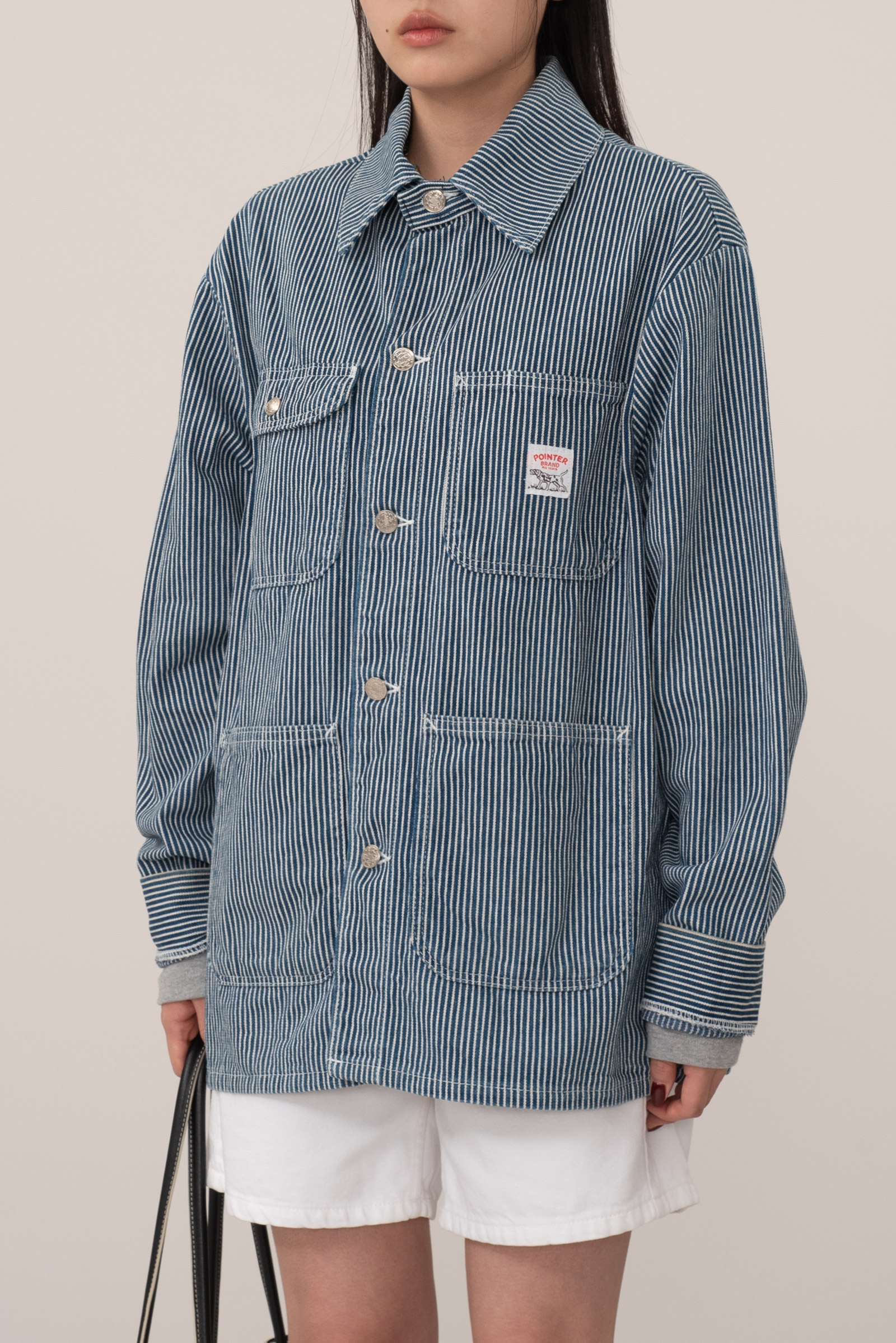 포인터 브랜드의 핵심 가치 중 하나인 Made In USA, 원단과 봉제, 마감 모두 미국 내에서 제작된 제품이라 희소가치 있으며 워크 재킷의 전형적인 큰 아웃 포켓과 간결한 셔츠형 카라, 직선적인 실루엣을 갖춘 클래식한 디자인이라 유행 없이 소장 가능합니다.