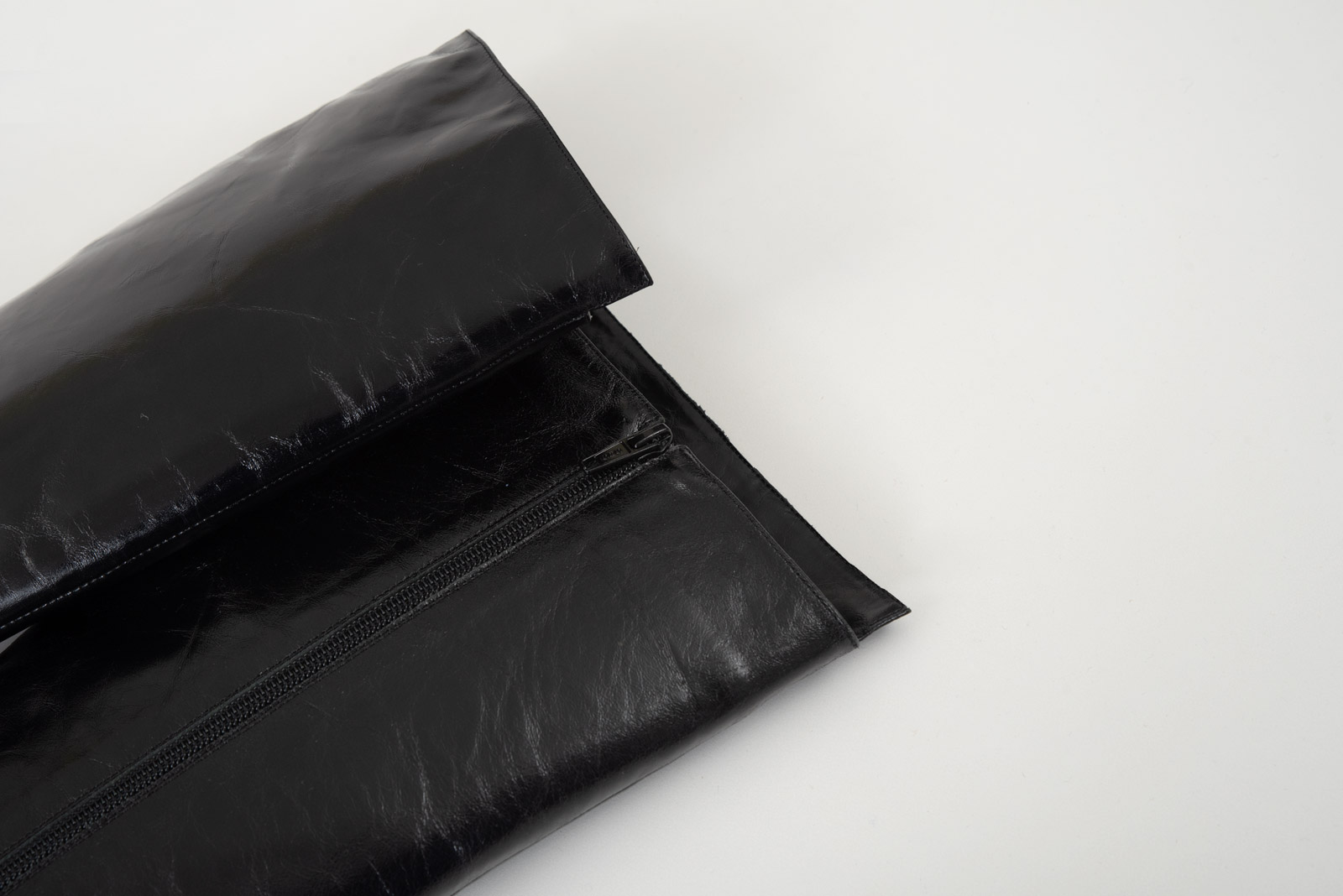크링클 주름이 자연스럽고 약간은 드라이한 느낌의 100% 카우 스킨, 안과 밖의 기장이 달라 유니크한 피스랍니다.