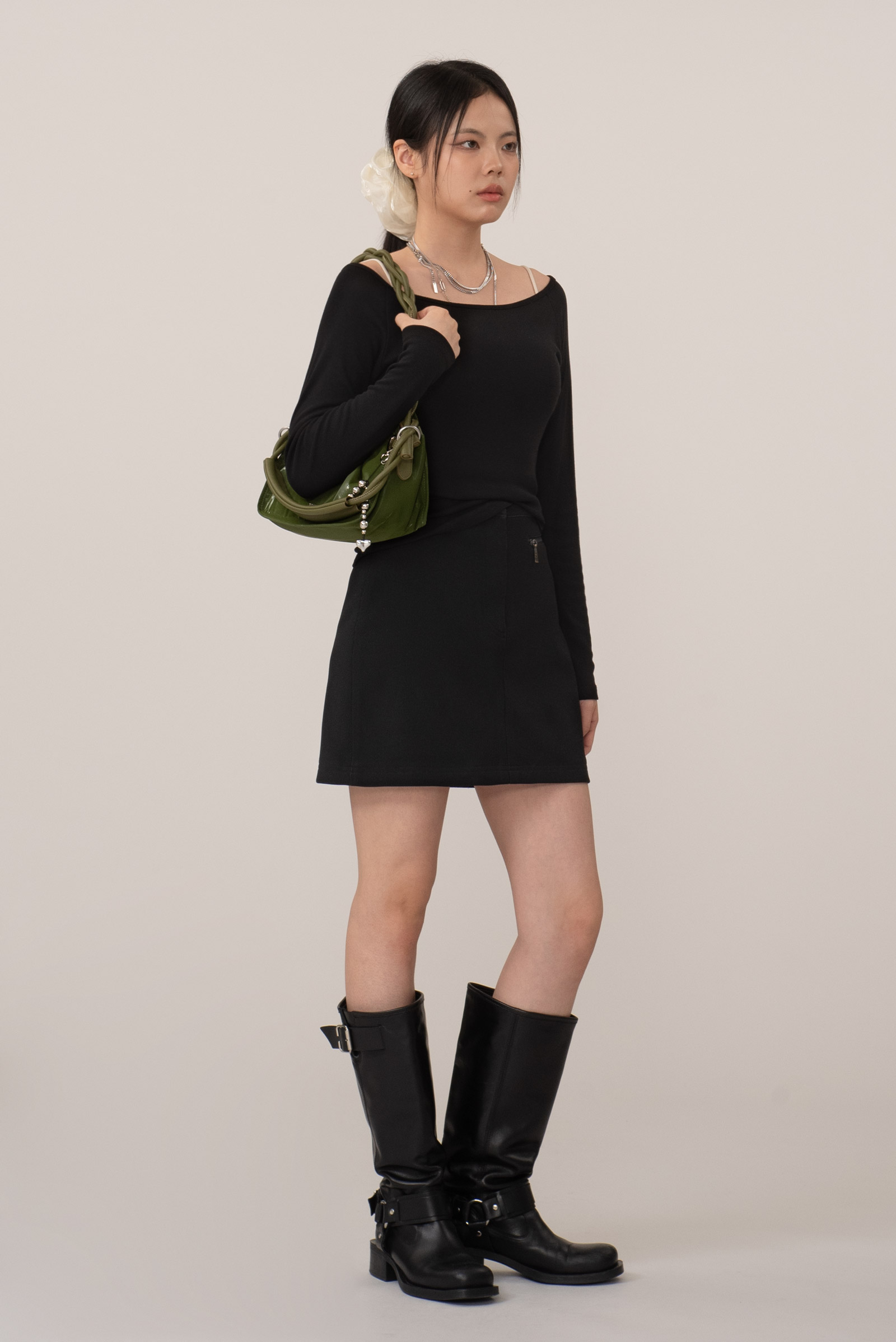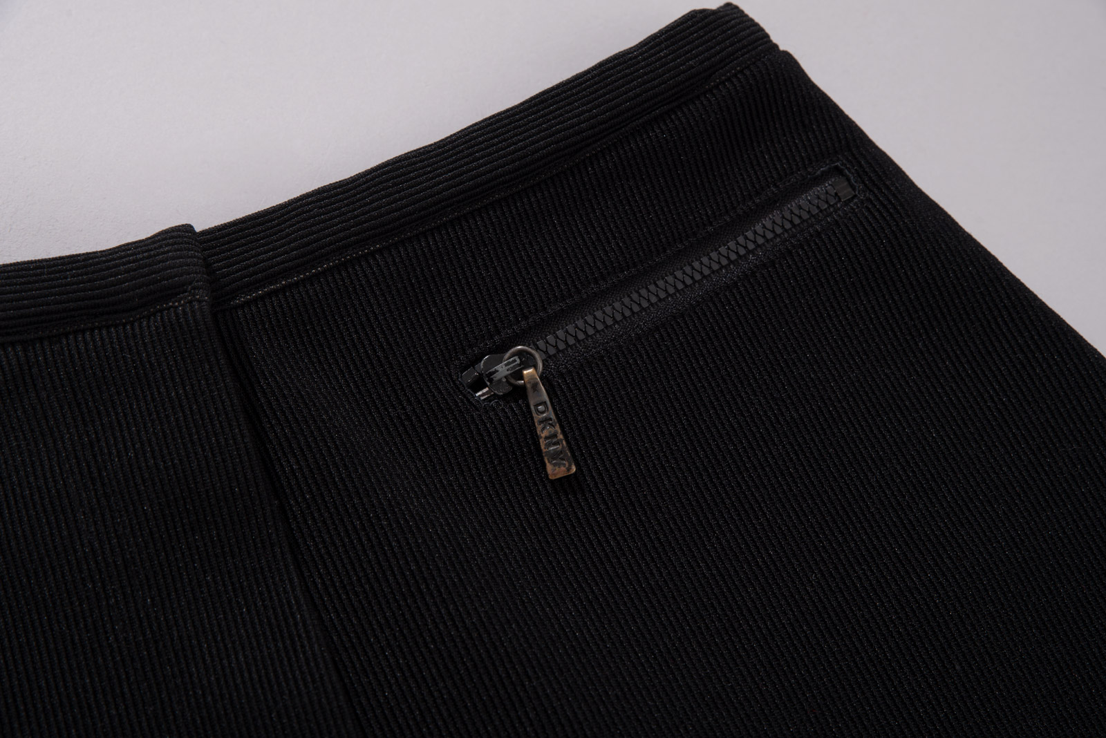 도나카란 뉴욕이 추구하는 실용성과 현대 여성의 우아함을 동시 느낄 수 있는 피스로, 부담 없는 기장감과 미니멀한 블랙 컬러, 전면 지퍼 디테일과 소재로 포인트를 주었어요.