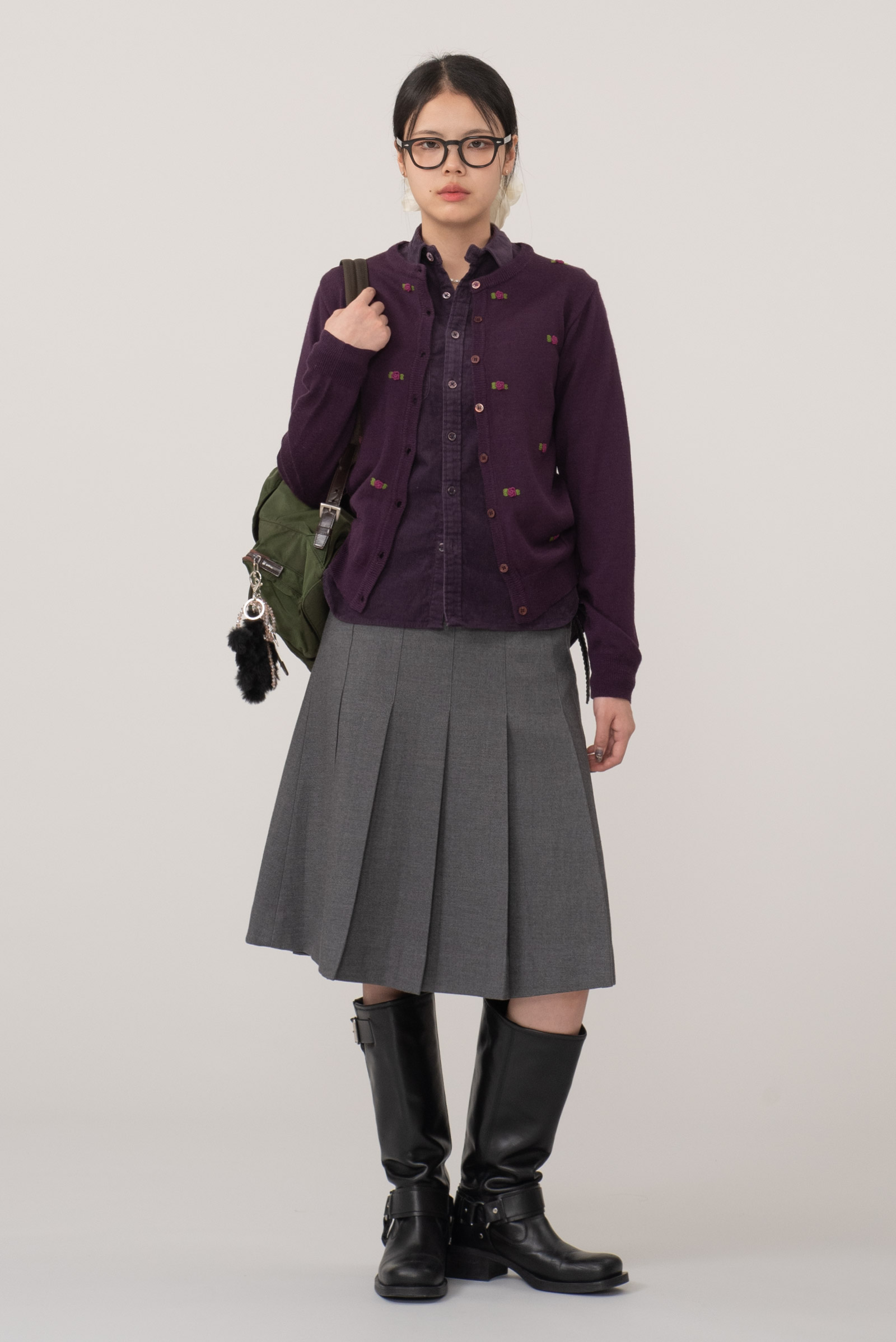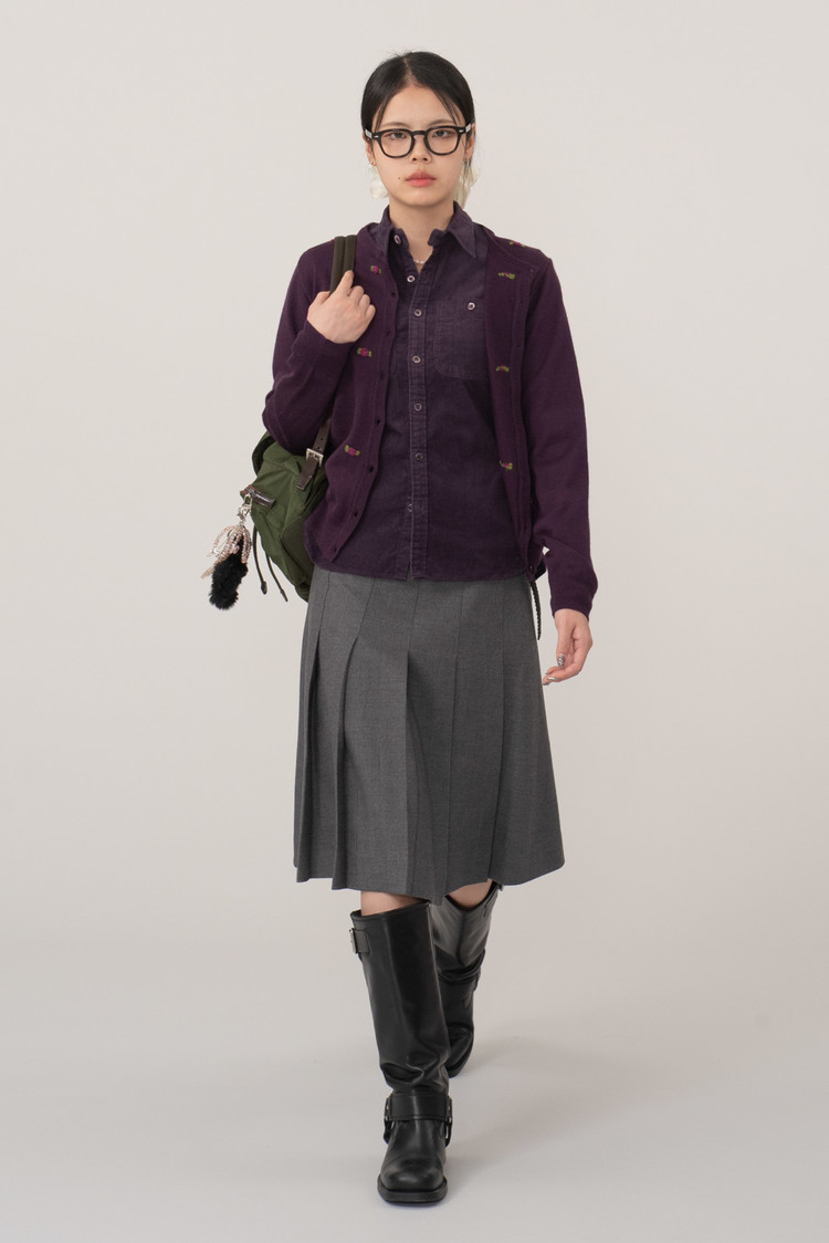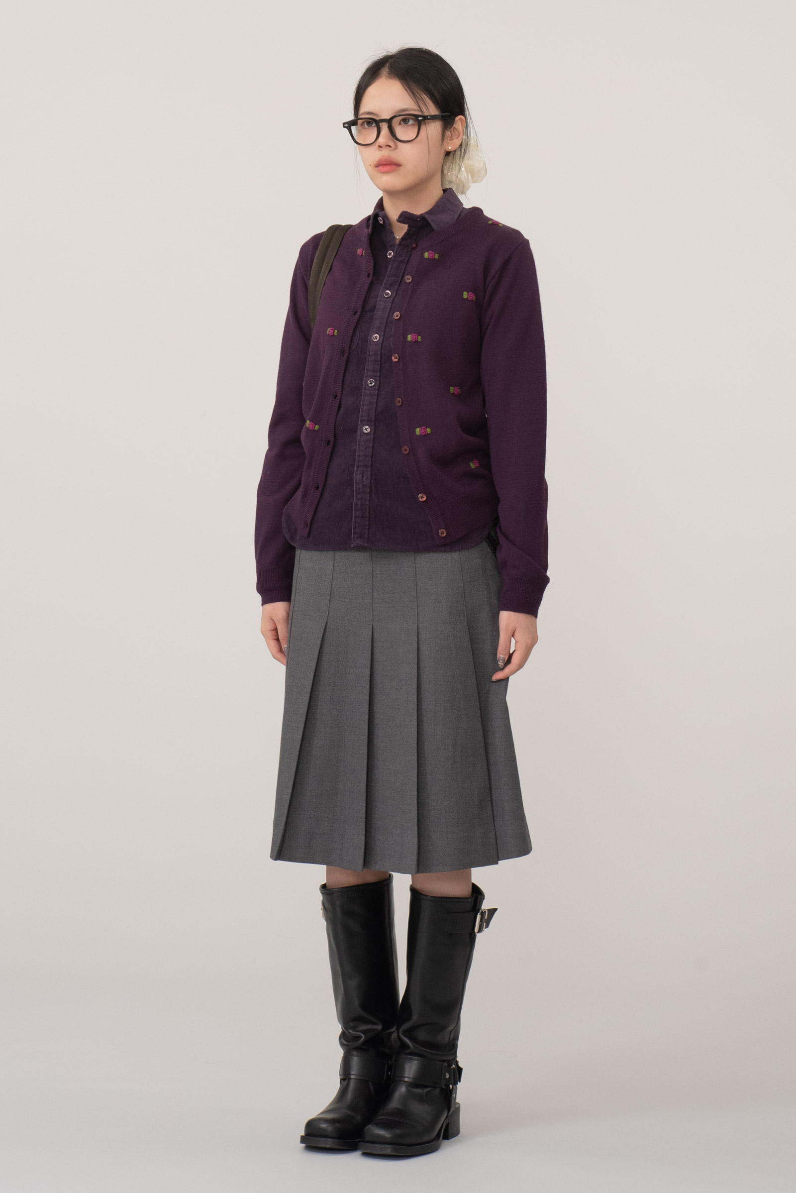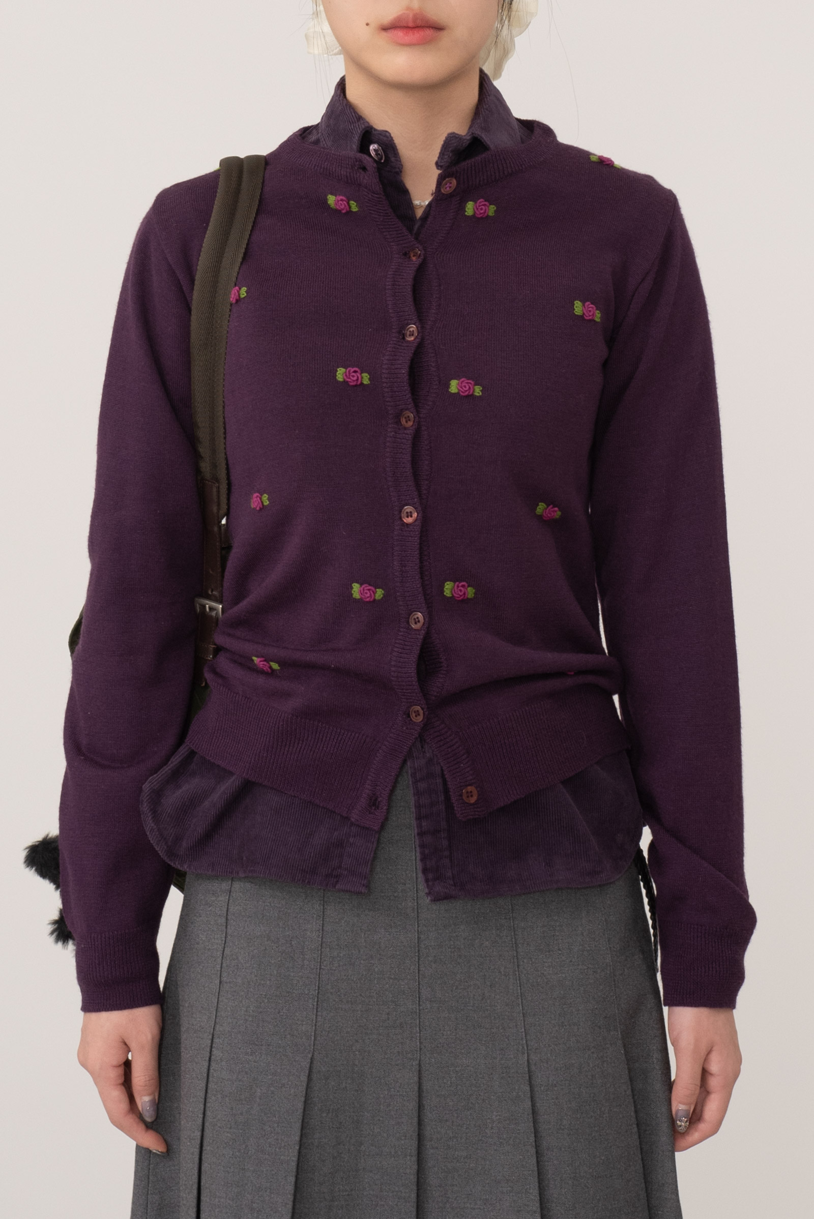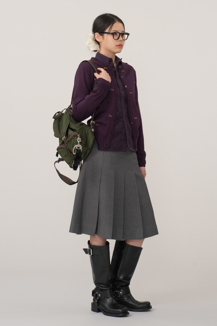 보라 컬러에 귀여운 니팅 포인트가 들어간 제품이에요.