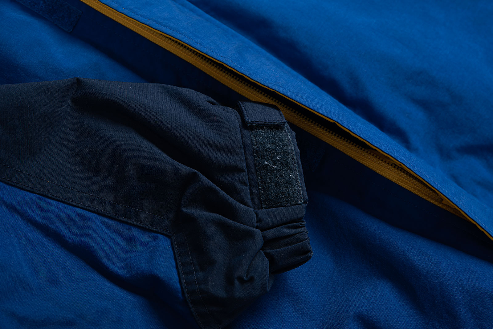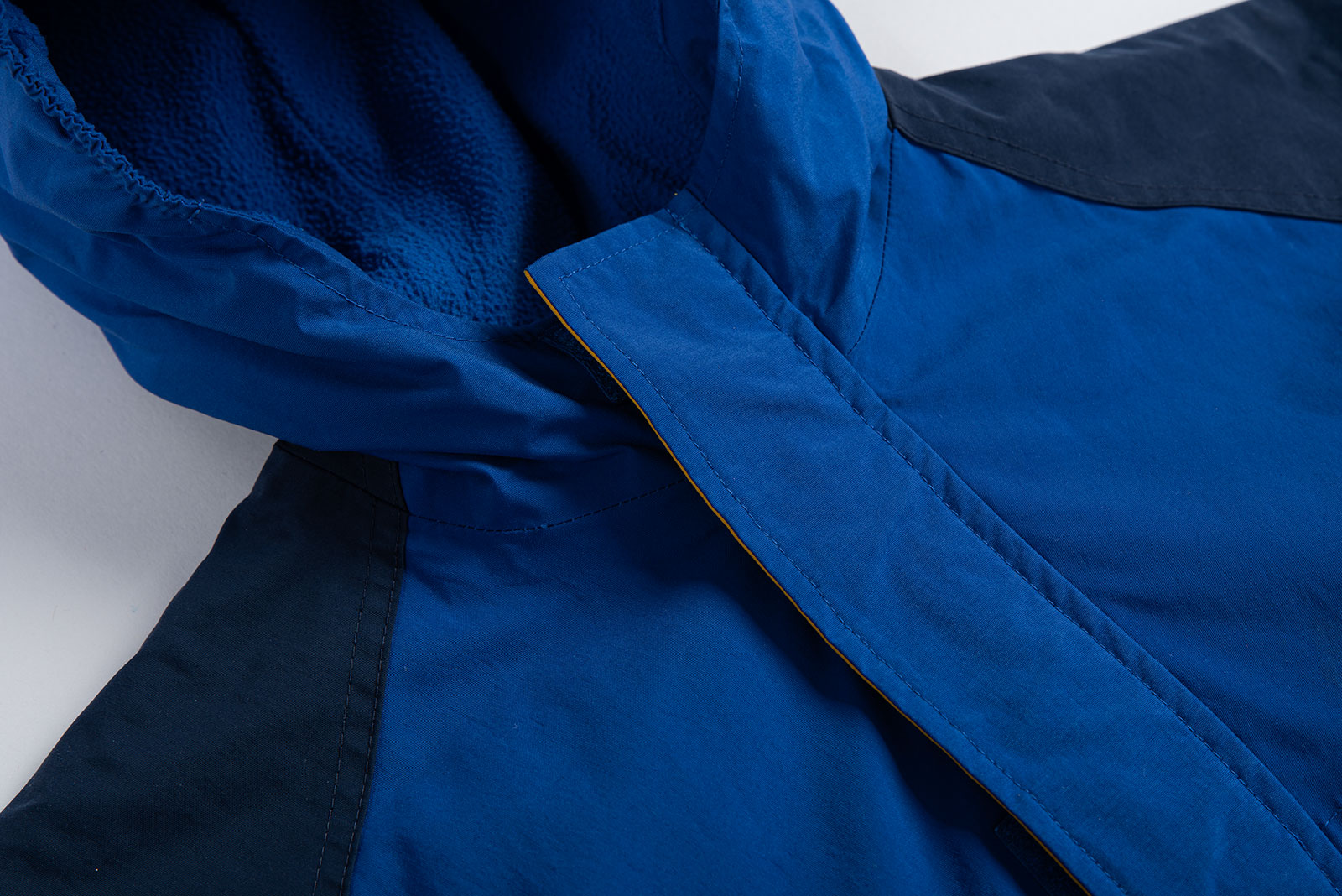 플리스 안감으로 아침 저녁 쌀쌀한 간절기에 걸치기 딱입니다. 파란색에 노란색 컬러 배색이 포인트에요.