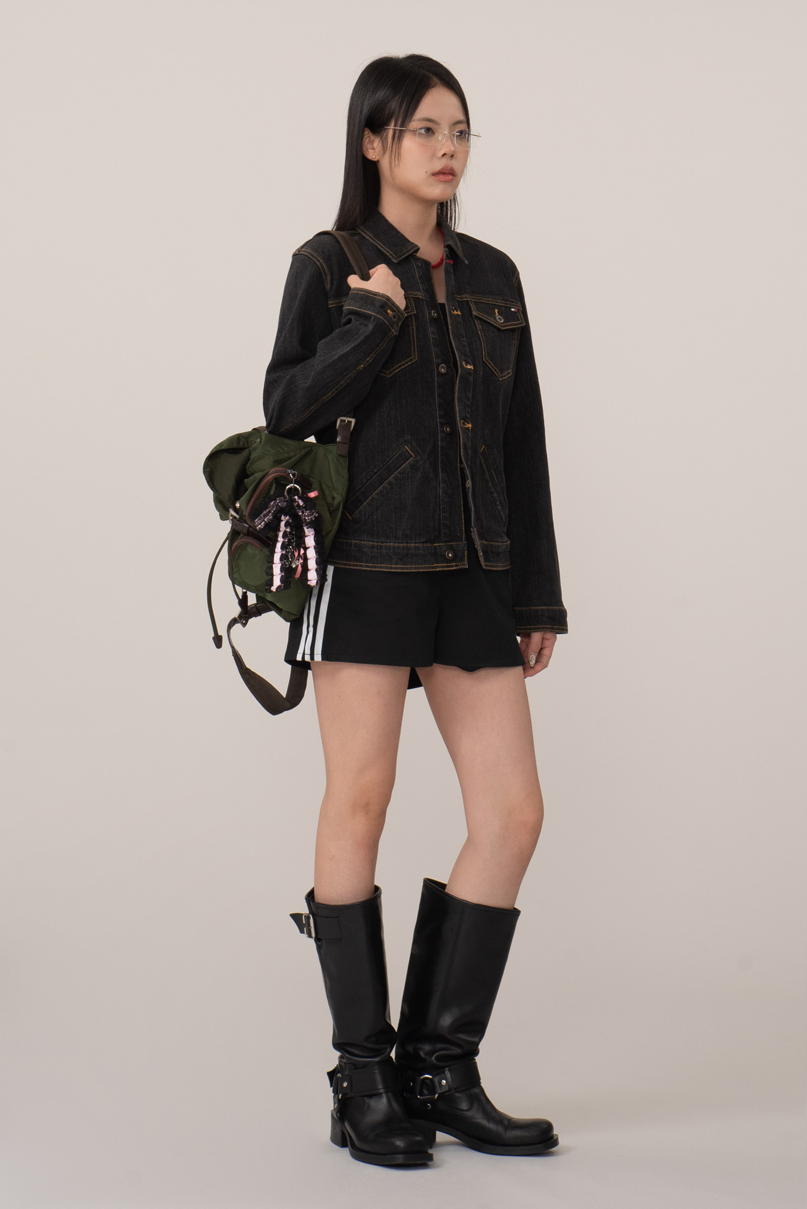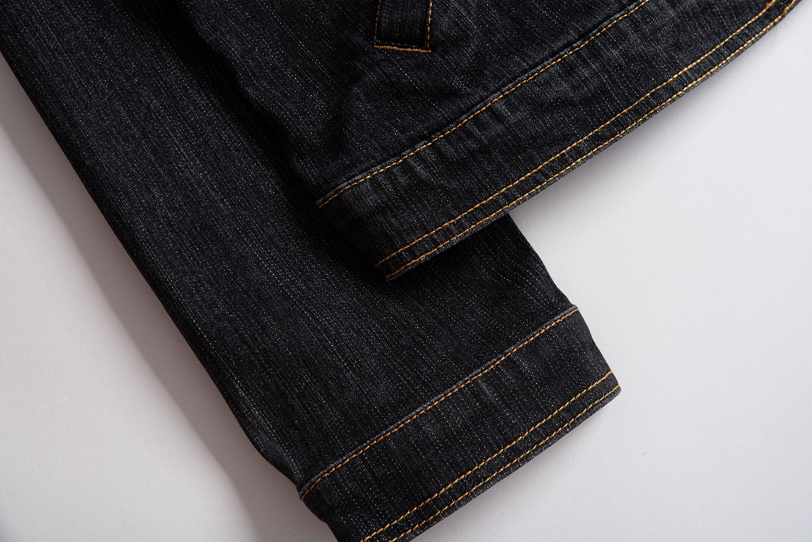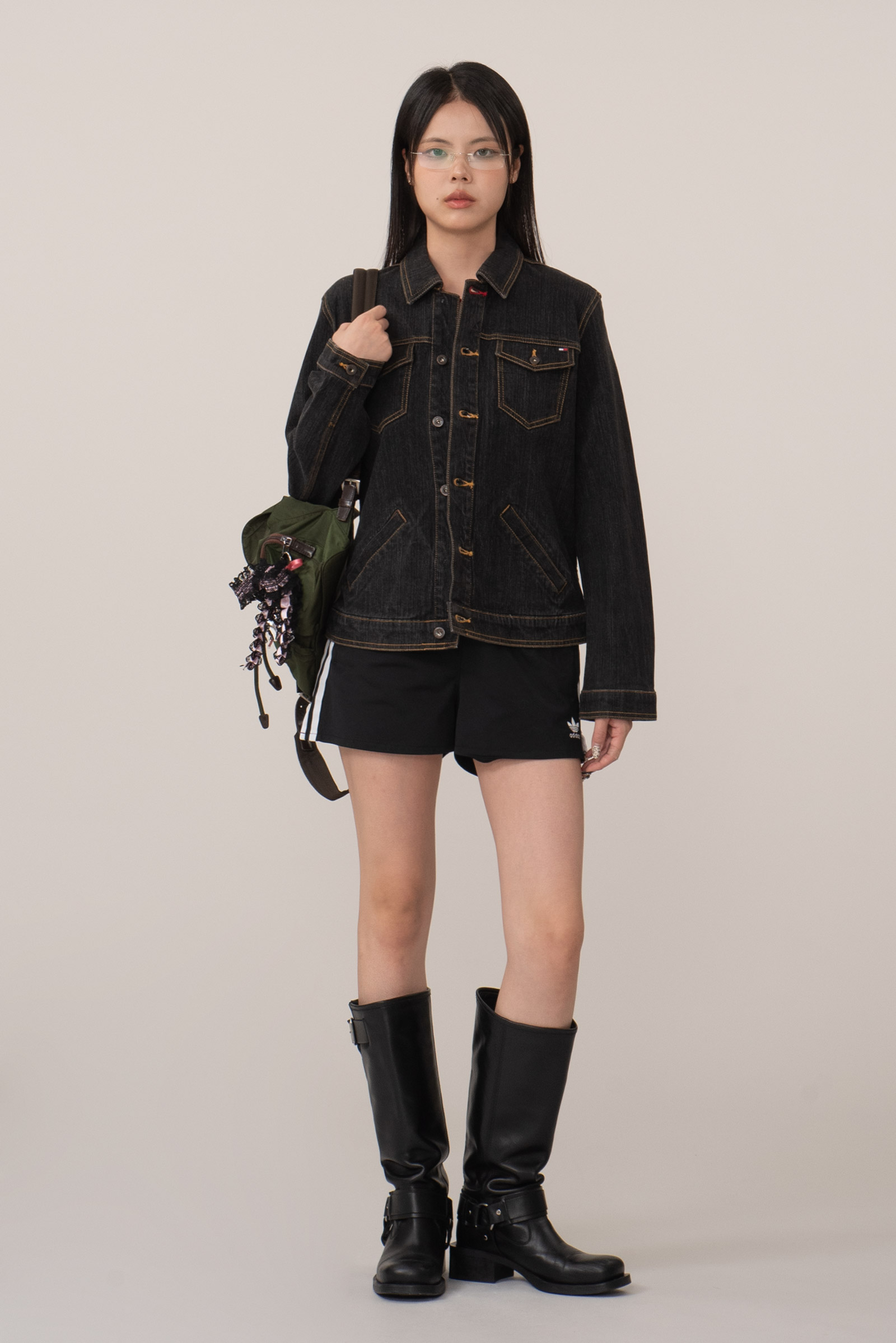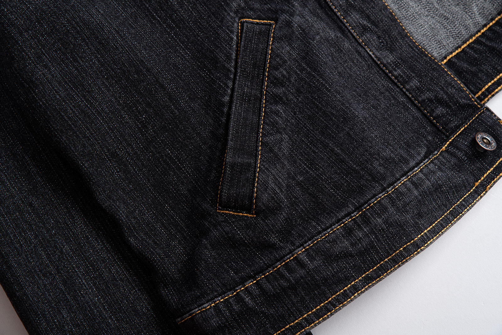 흑청 컬러, 가슴의 플랩 포켓과 브랜드 자수, 복부 포켓 등 전형적인 트러커의 디자인을 가지고 있으면서도 좀 더 현대적인 실루엣이 매력적인 피스인데요.