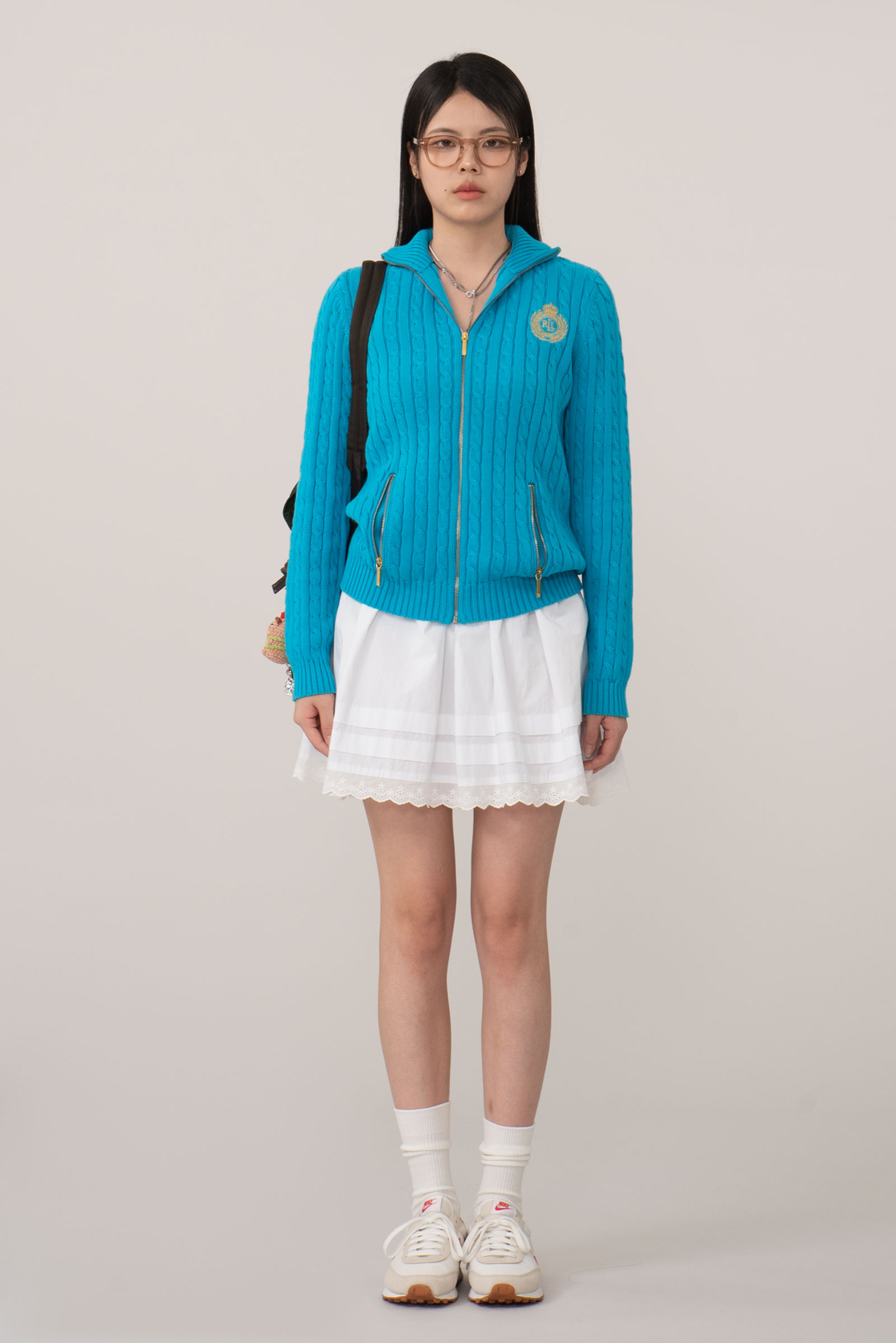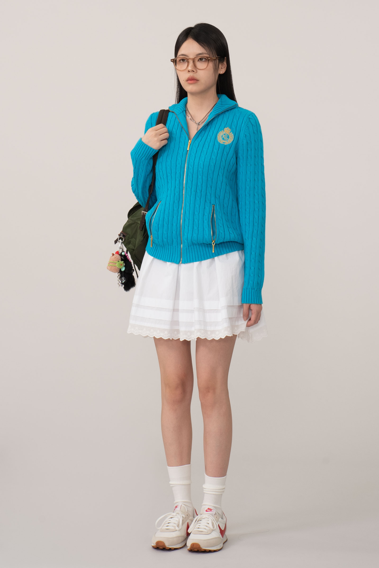 시그니처 아이템 중 하나인 케이블 니트에 지퍼가 달린 디자인으로 가디건이나 가벼운 외투로도 쓰임이 다양한 피스랍니다.