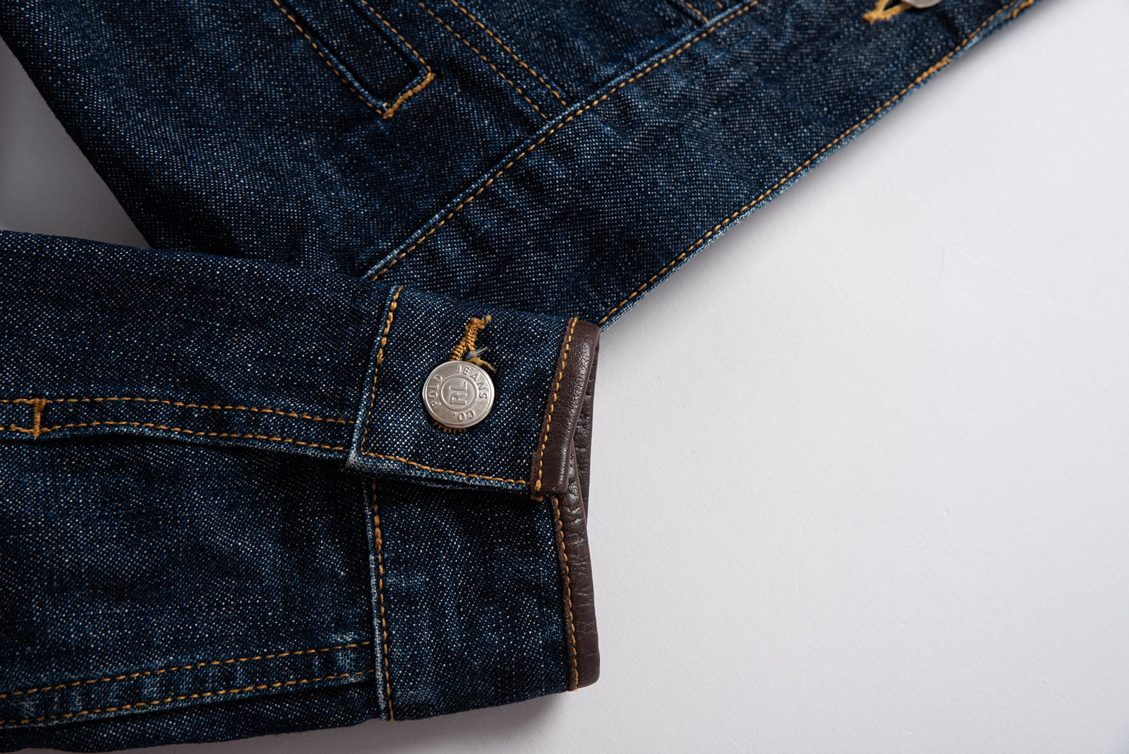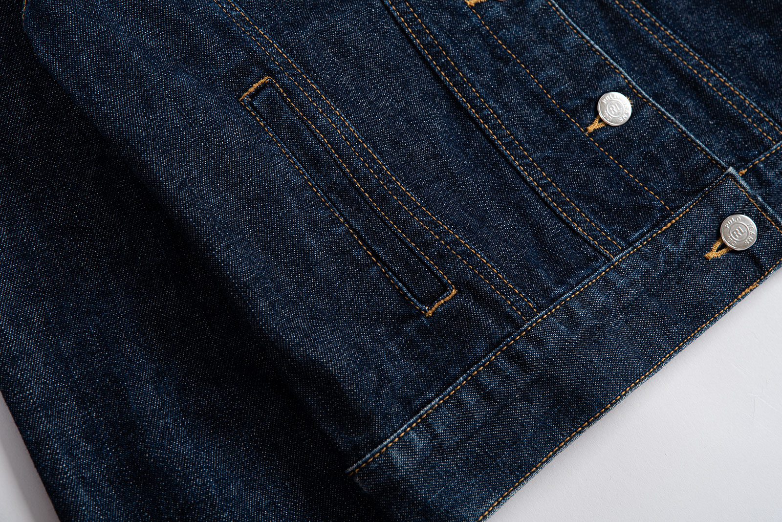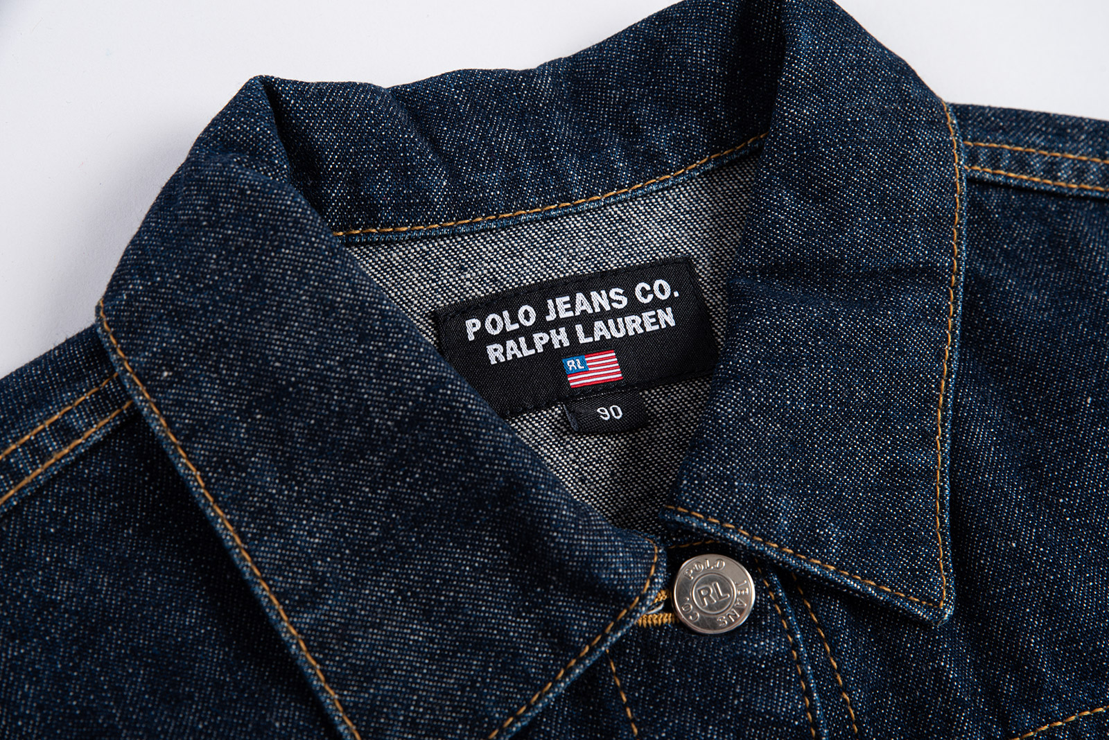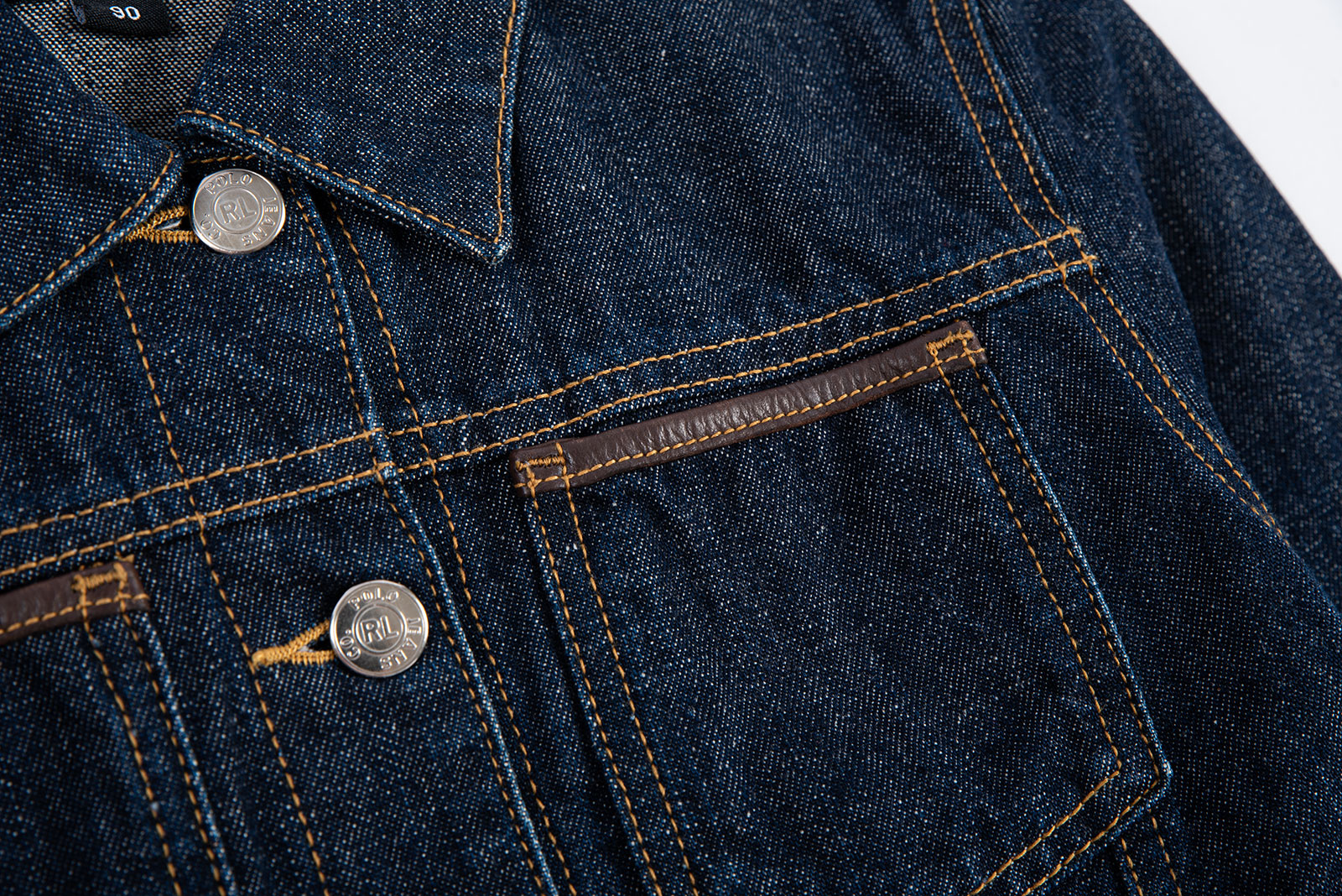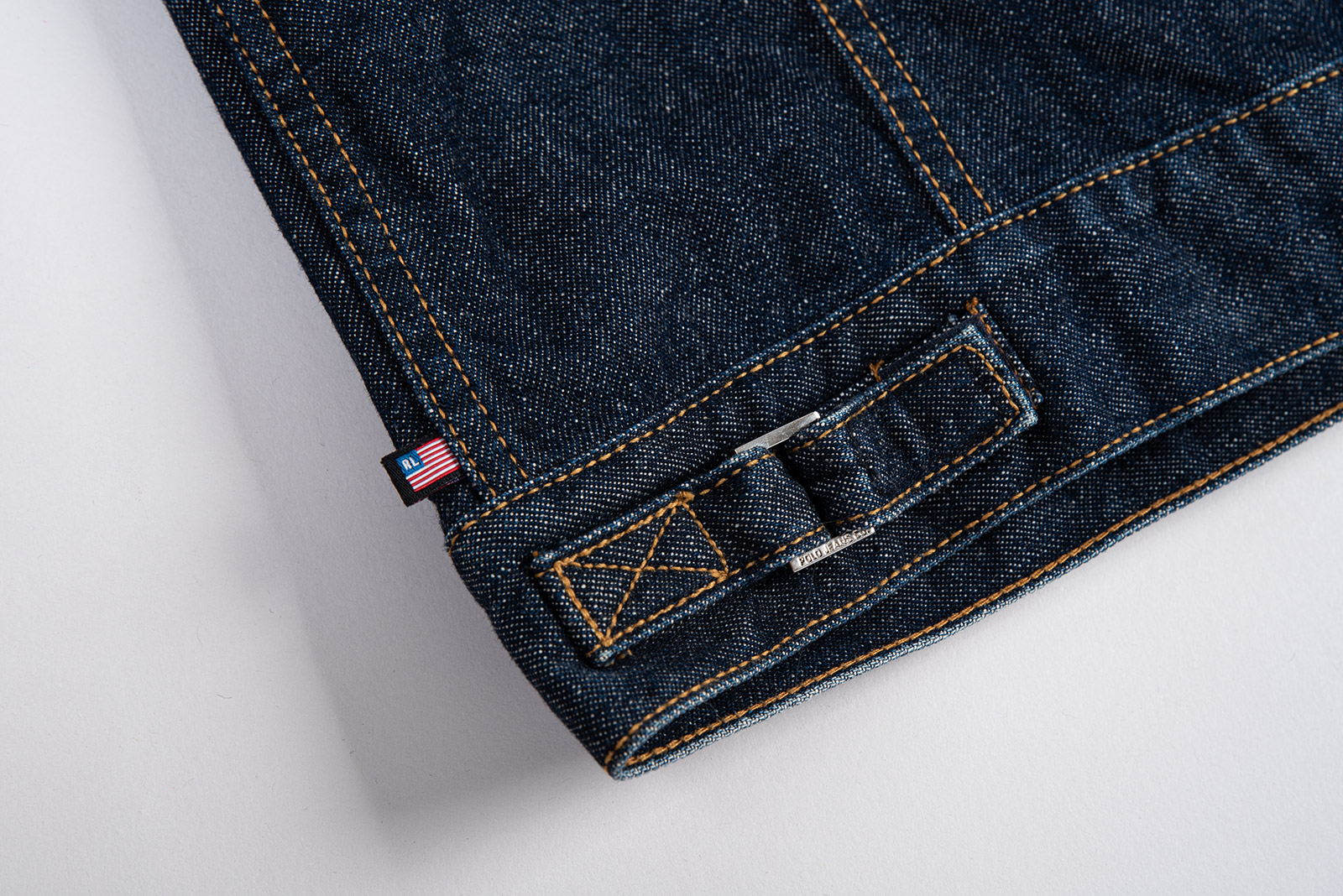밀도 있는 짜임의 질 좋은 고품질 데님 원단 사용되었으며 가죽 마감 디테일과 옆구리 아래에 폴로 진 시그니처인 성조기 라벨이 눈에 띄네요.