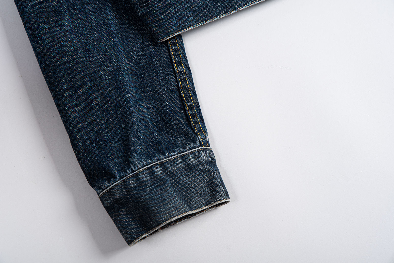 비교적 짧은 기장감, 넉넉한 품과 암홀에서 느껴지는 오리지널 무드가 일품이며 러프하고 박력 있는 데님 원단과 만듦새가 아주 훌륭한 피스에요.