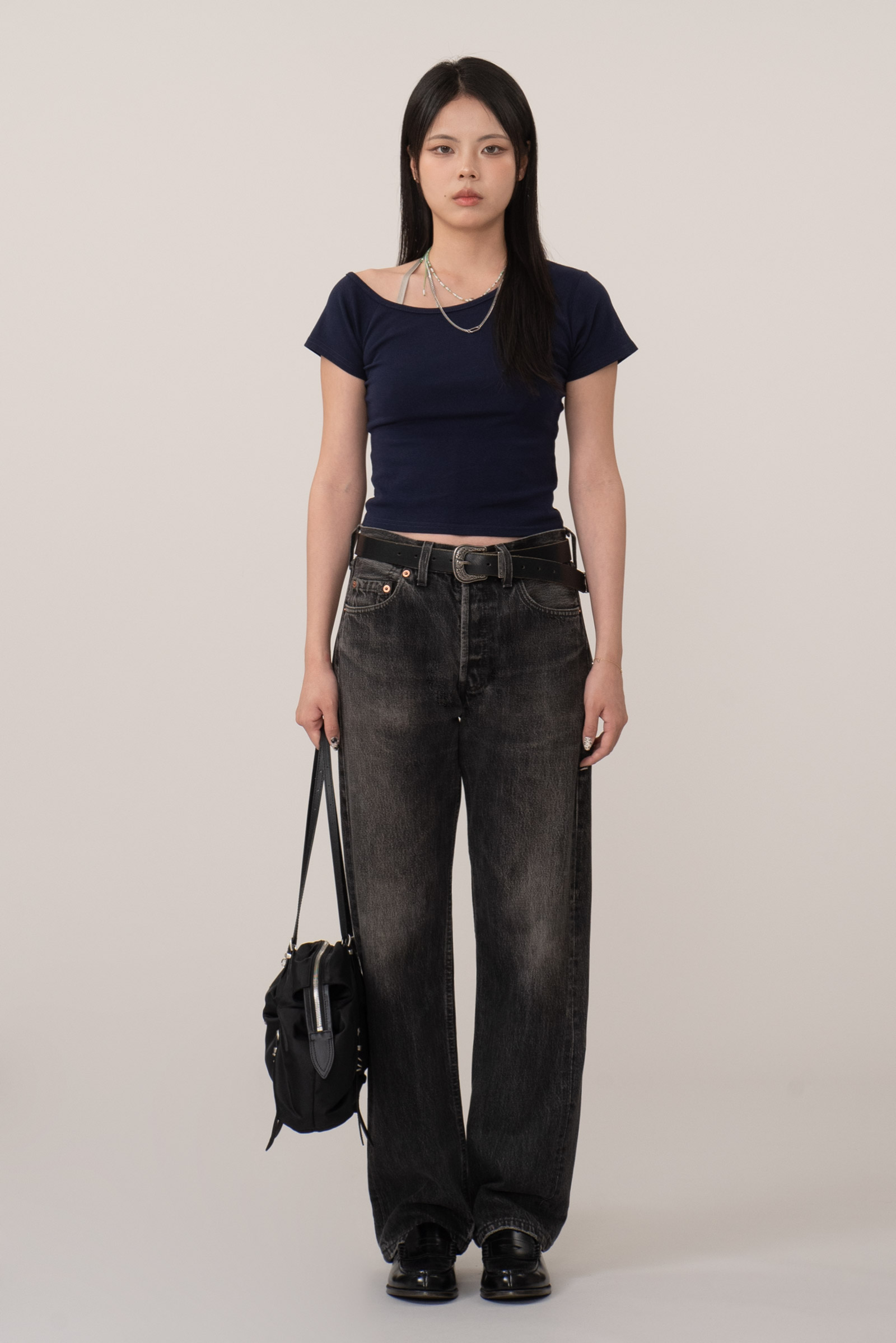 에이징 된듯한 노란 끼가 도는 흑청 컬러가 특징이며 낡으며 부드럽게 질이 잘 든 터치감이 인상적이네요.