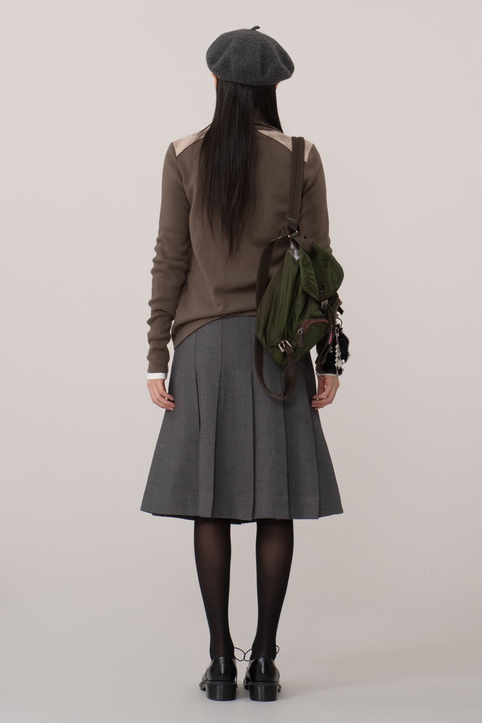 큰 디테일 없이 간결하고 미니멀한 실루엣, 코코아 컬러 바디에 어깨의 버버리 시그니처 체크 패턴이 눈에 띄네요.