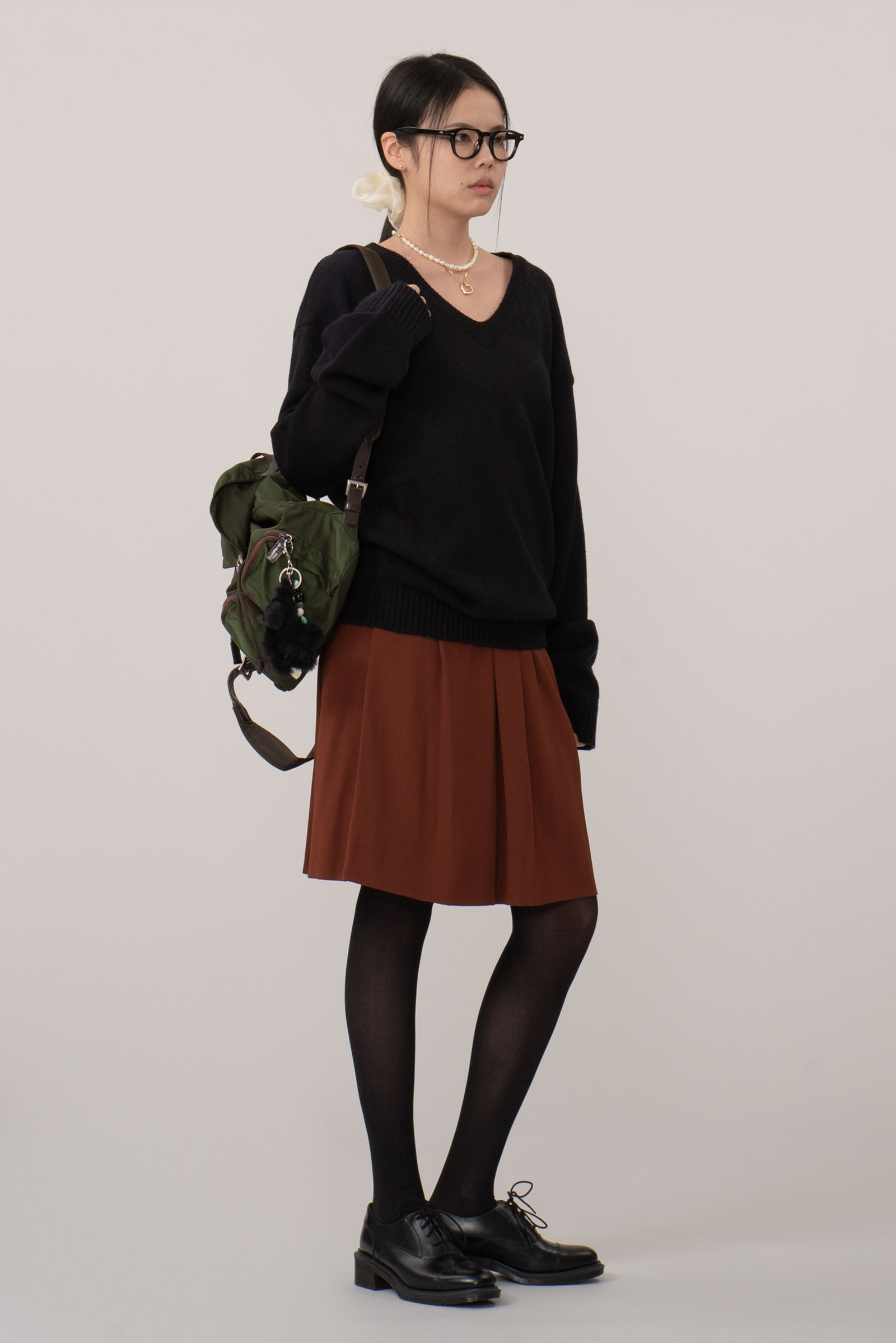 허벅을 가리는 무난한 기장감이라 활동성도 좋고 플리츠 주름이 잡혀있어 심심하지도 않은, 무엇보다도 높은 품질과 잘 만들어진 만듦새가 일품이네요.