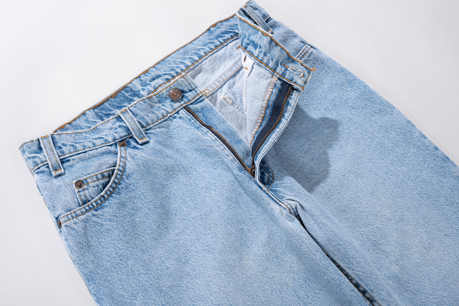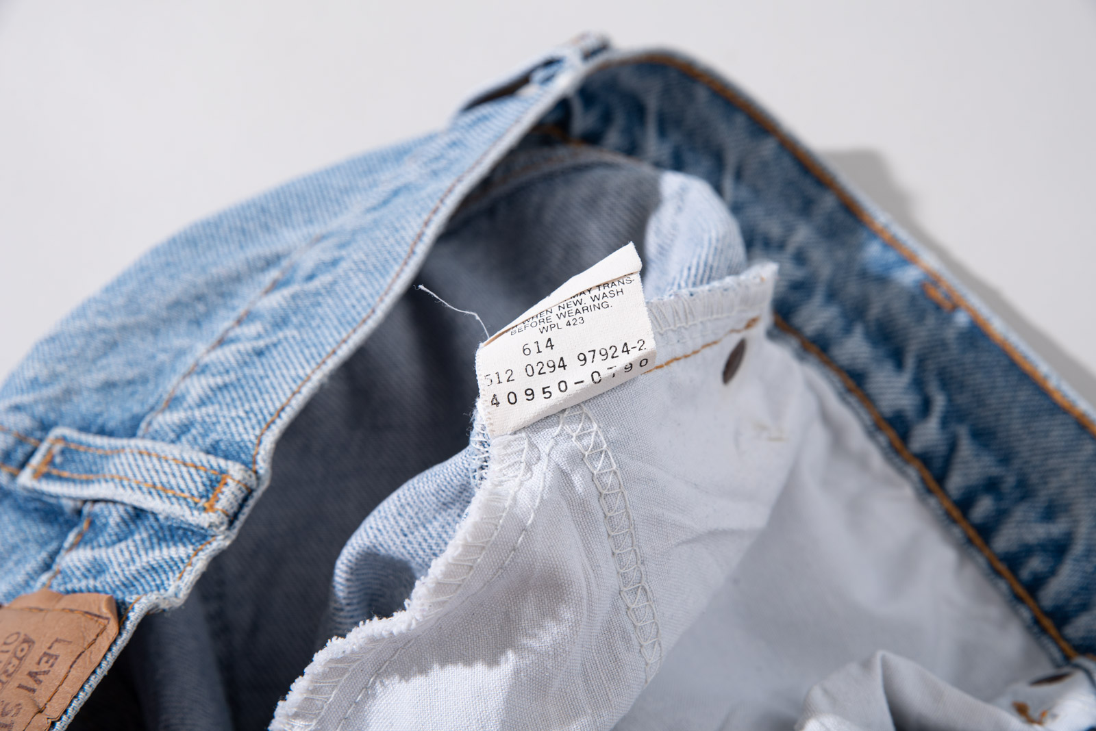 90년대 제작된 모든 제품들이 그렇듯 박력있고 두툼한 데님 원단 사용 되었으며 볕에 잘 익은듯한 질감입니다.