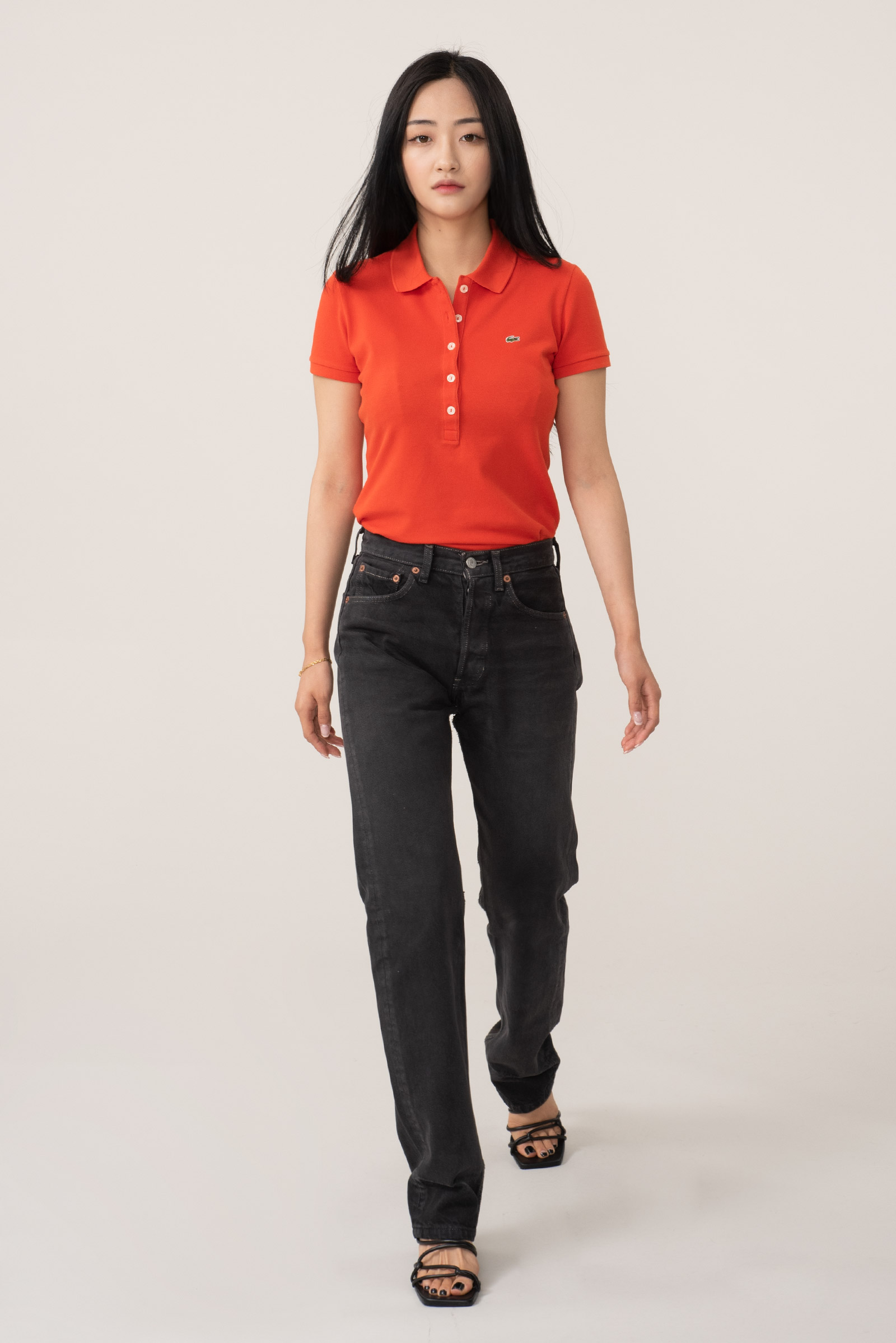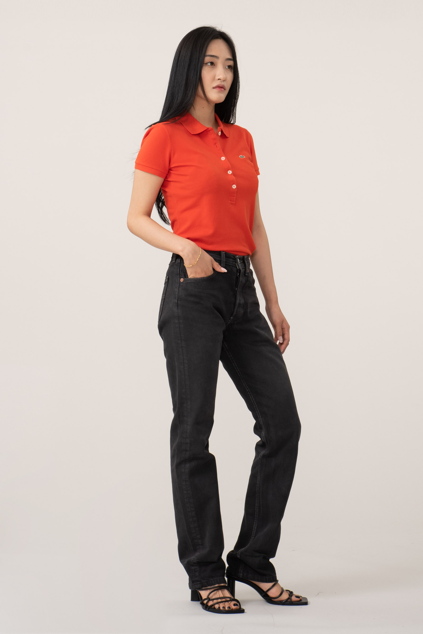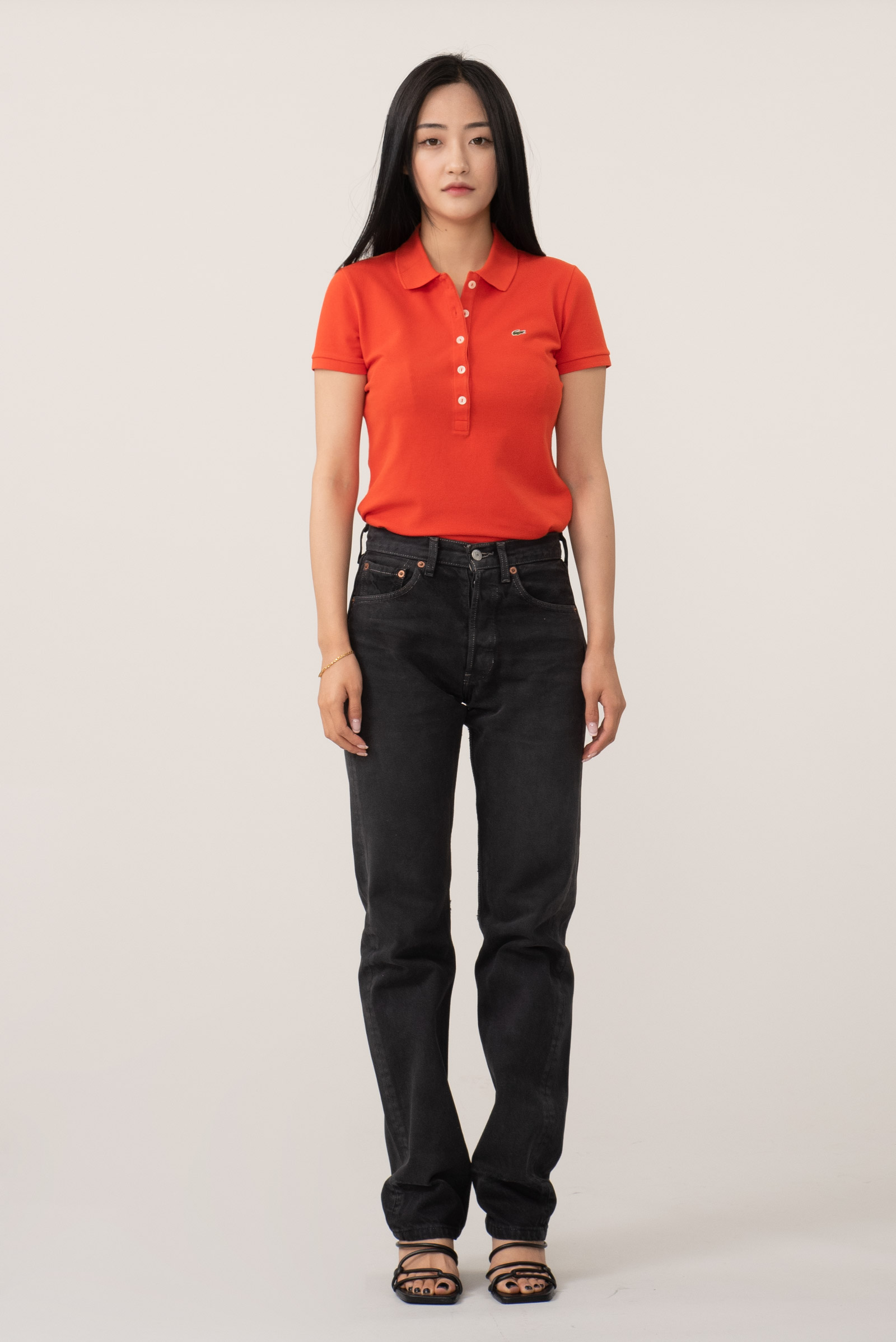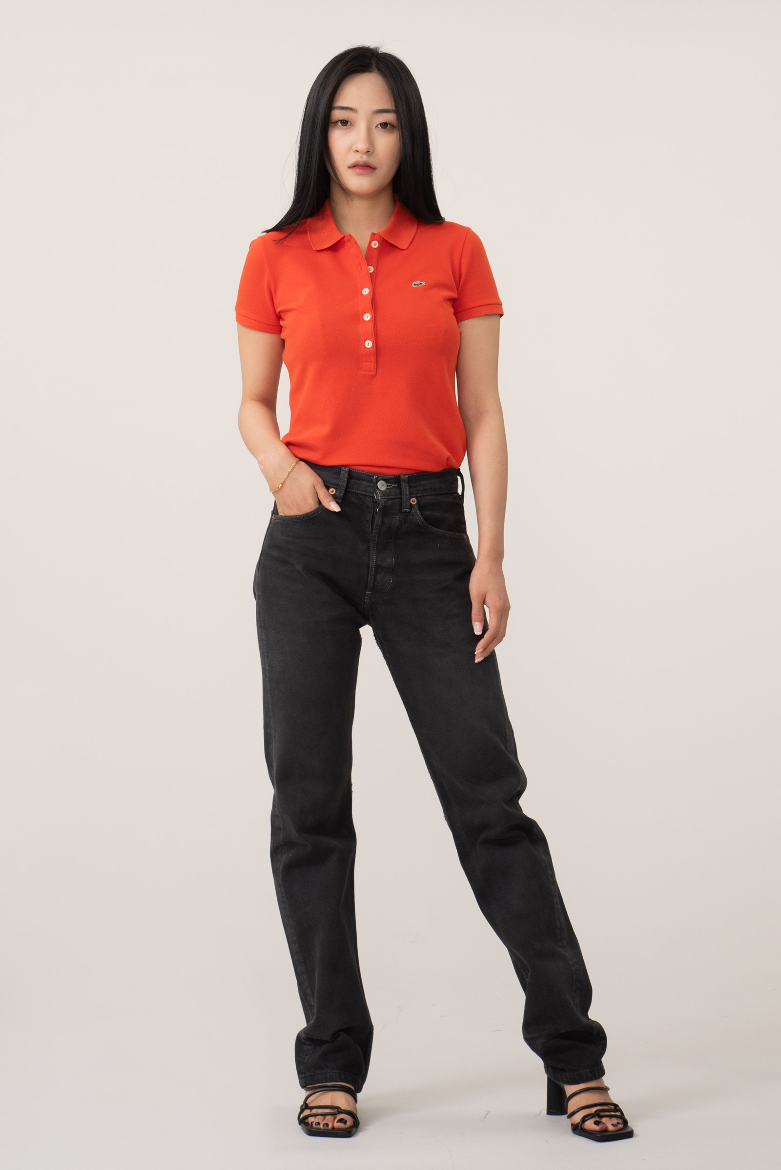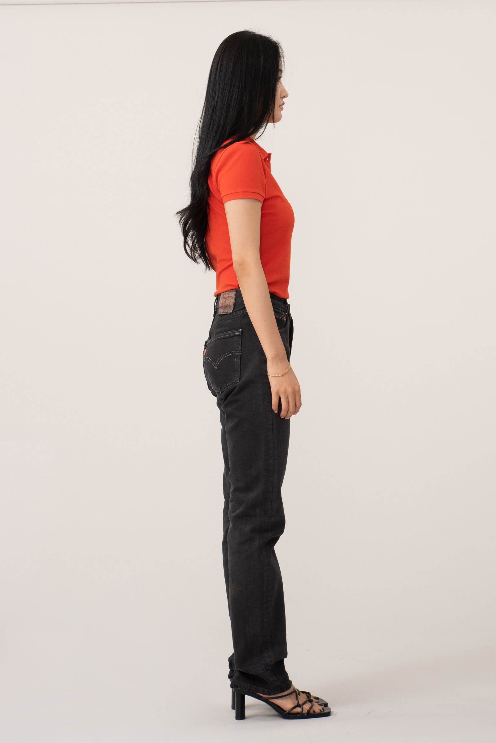 유럽산 제품의 특징인 기존 501 보다 슬림한 실루엣이라 힙이 좀 더 작게 나왔어요.