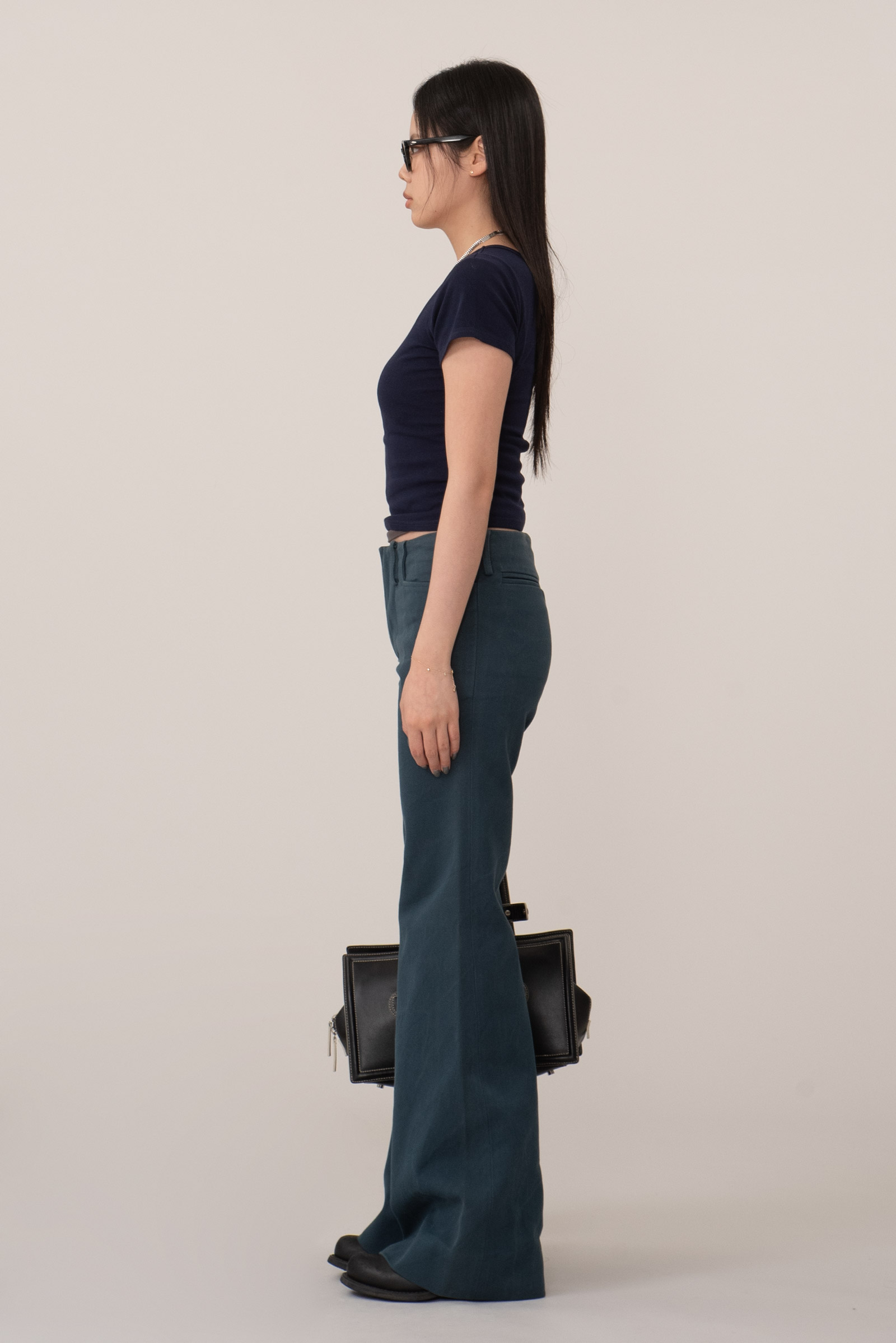 오늘 소개해 드리는 팬츠는 이태리에서 제작된 벨바텀 팬츠로, 허리에서 허벅지까지는 슬림 하게 잡아주고 무릎 아래로 갈수록 자연스럽게 넓어지는 구조인데 이태리 테일러링 감성의 균형감 있는 플레어가 특징이랍니다.