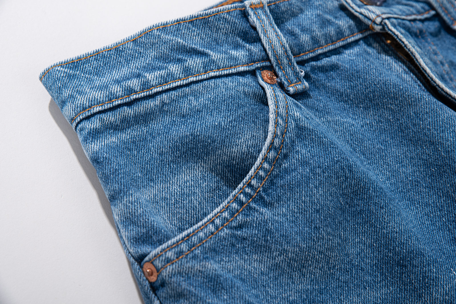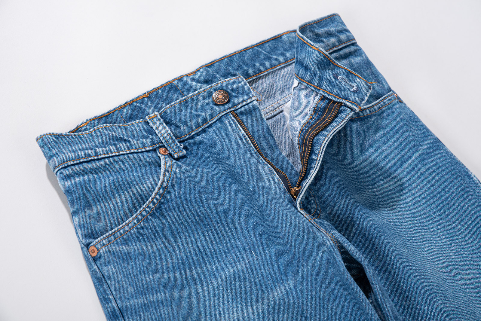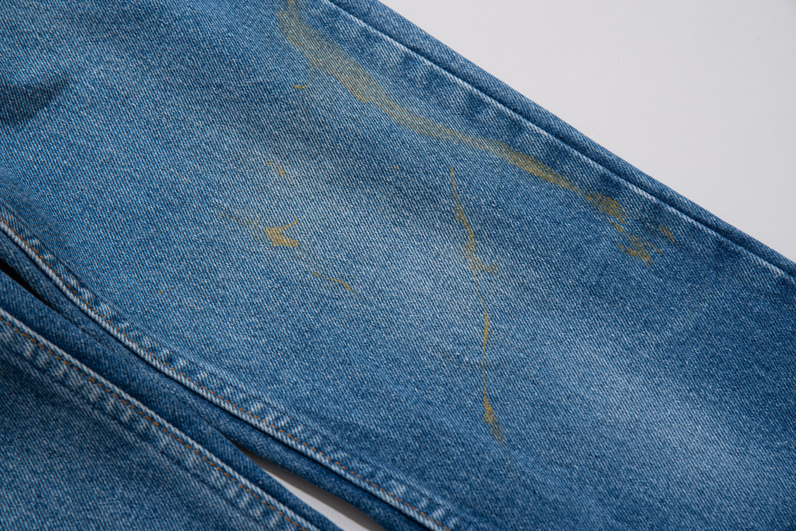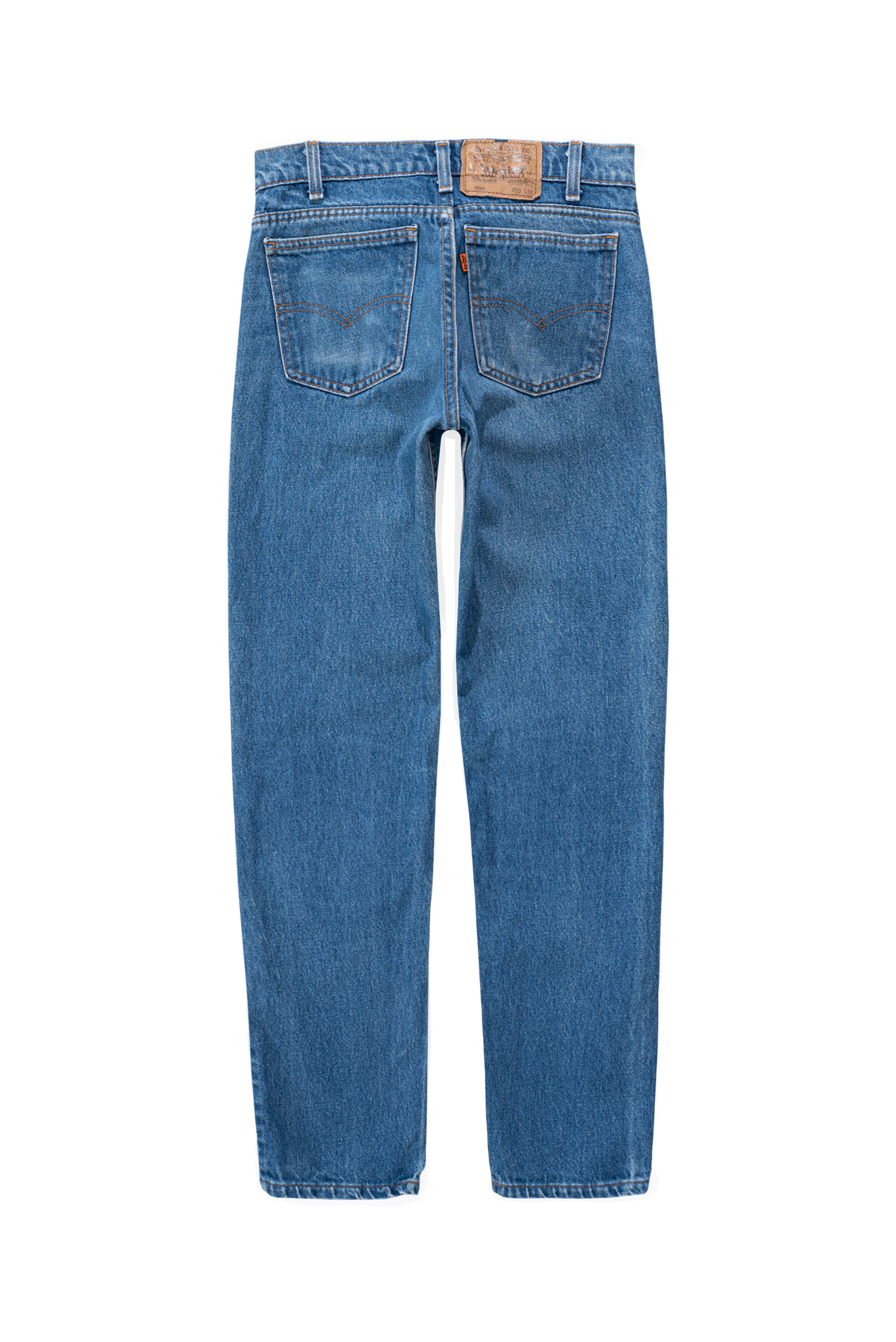 맑고 시원한 바다색, 자연스럽고 은근한 워싱, 무릎과 허벅지 부분에 자연스러운 페인트가 남아 있어 빈티지만의 입체적인 색감을 품고 있으며 거친 듯 부드러운 90년대 미국산 데님 원단 특유의 드라이한 질감이 그대로 살아 있어 당시의 감성과 오렌지 탭이라는 희소성까지 함께 즐기기 좋은 피스랍니다.