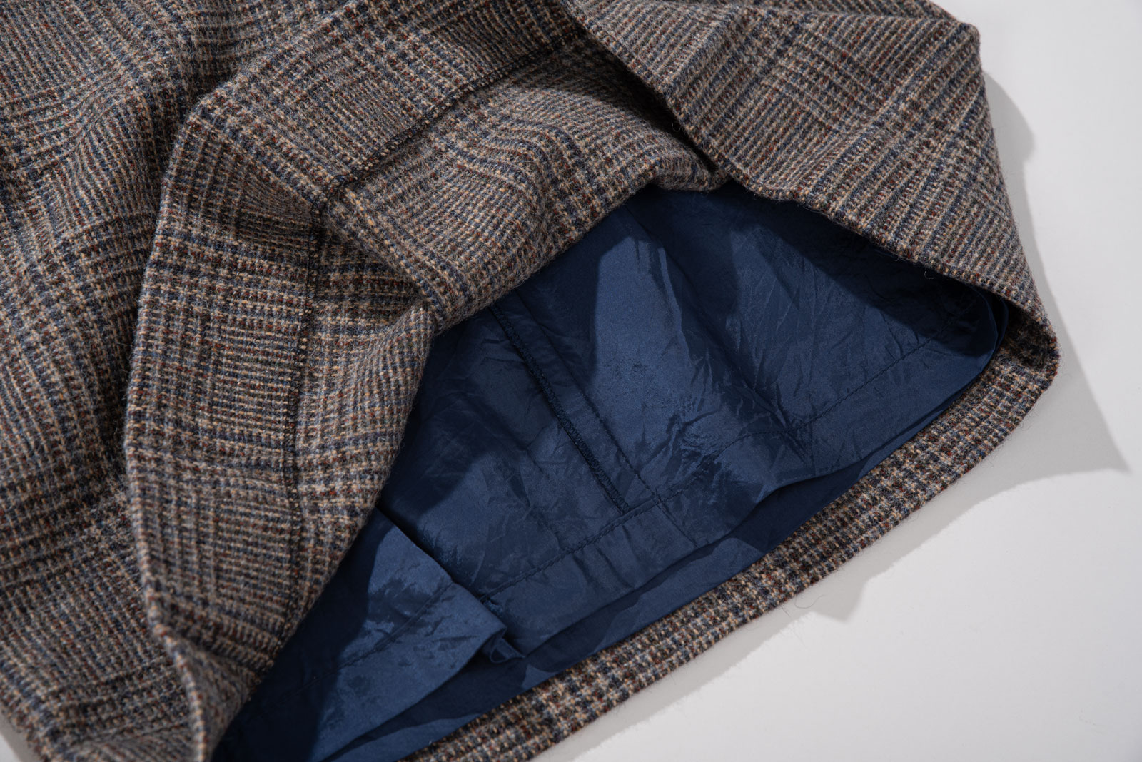 전반적으로 미니멀한 디자인에 간결하고 심플한 제품인데, 체크 패턴과 전면의 투턱 주름 그리고 절개 디테일 등 섬세한 터치를 엿볼 수 있는 아이템입니다.