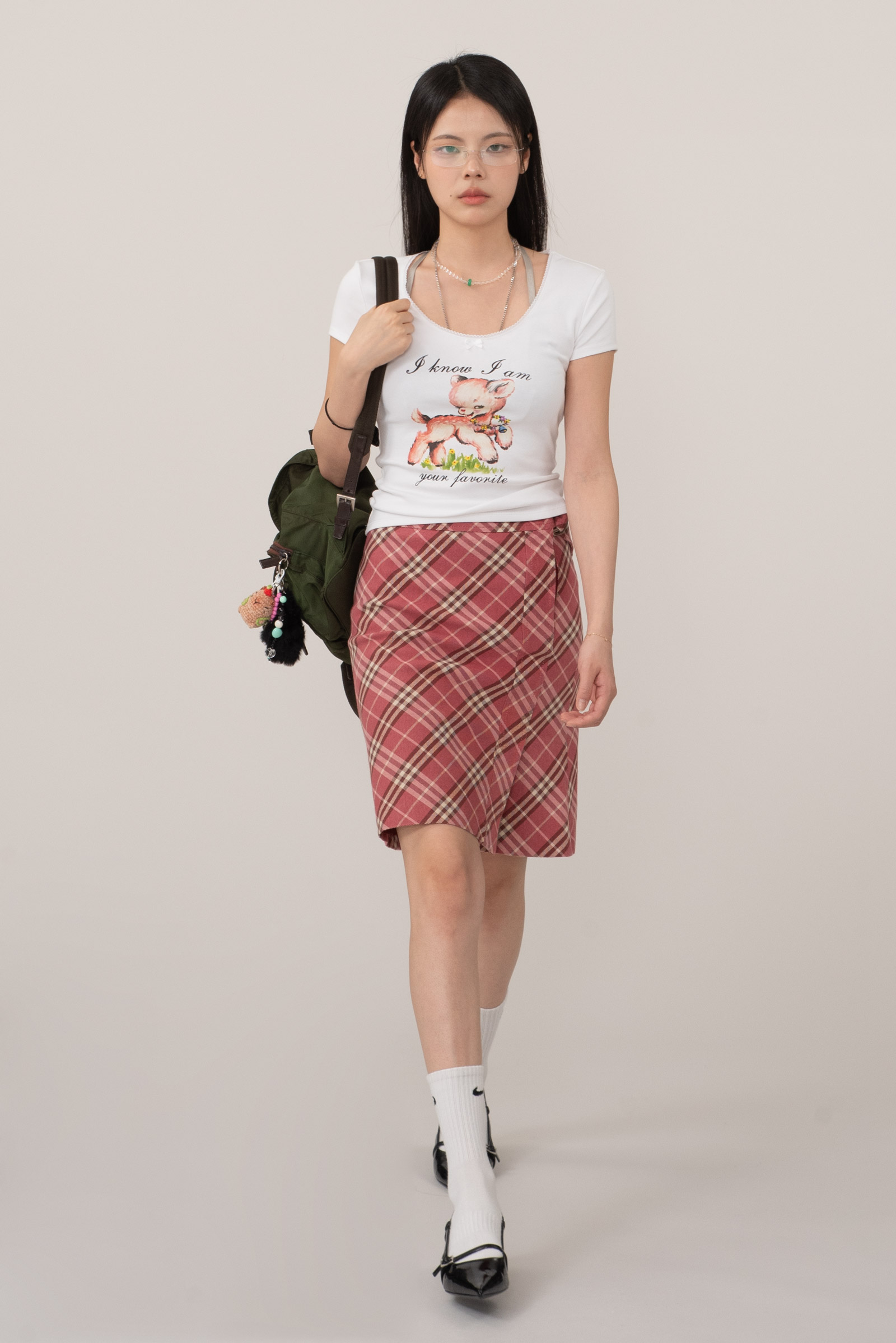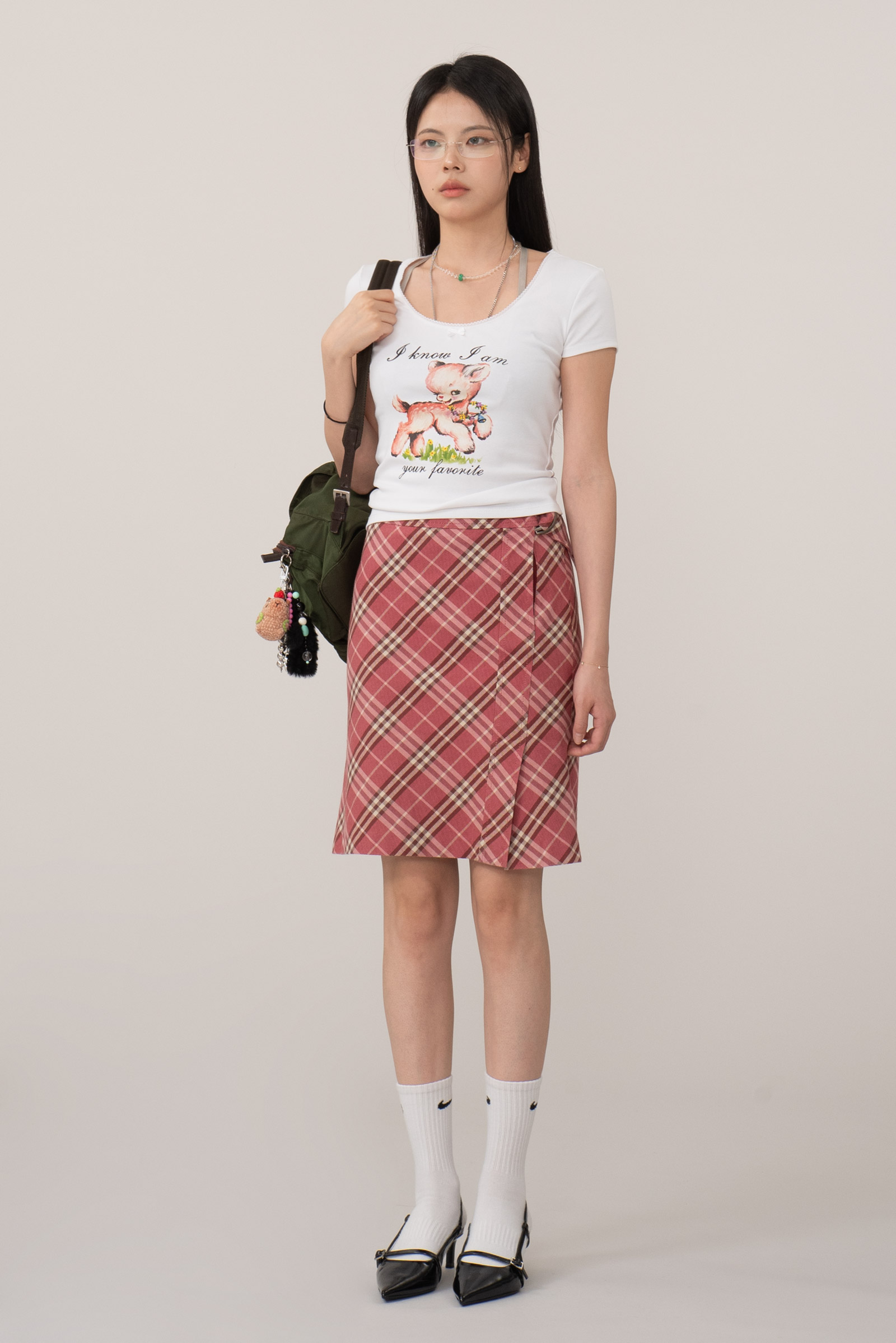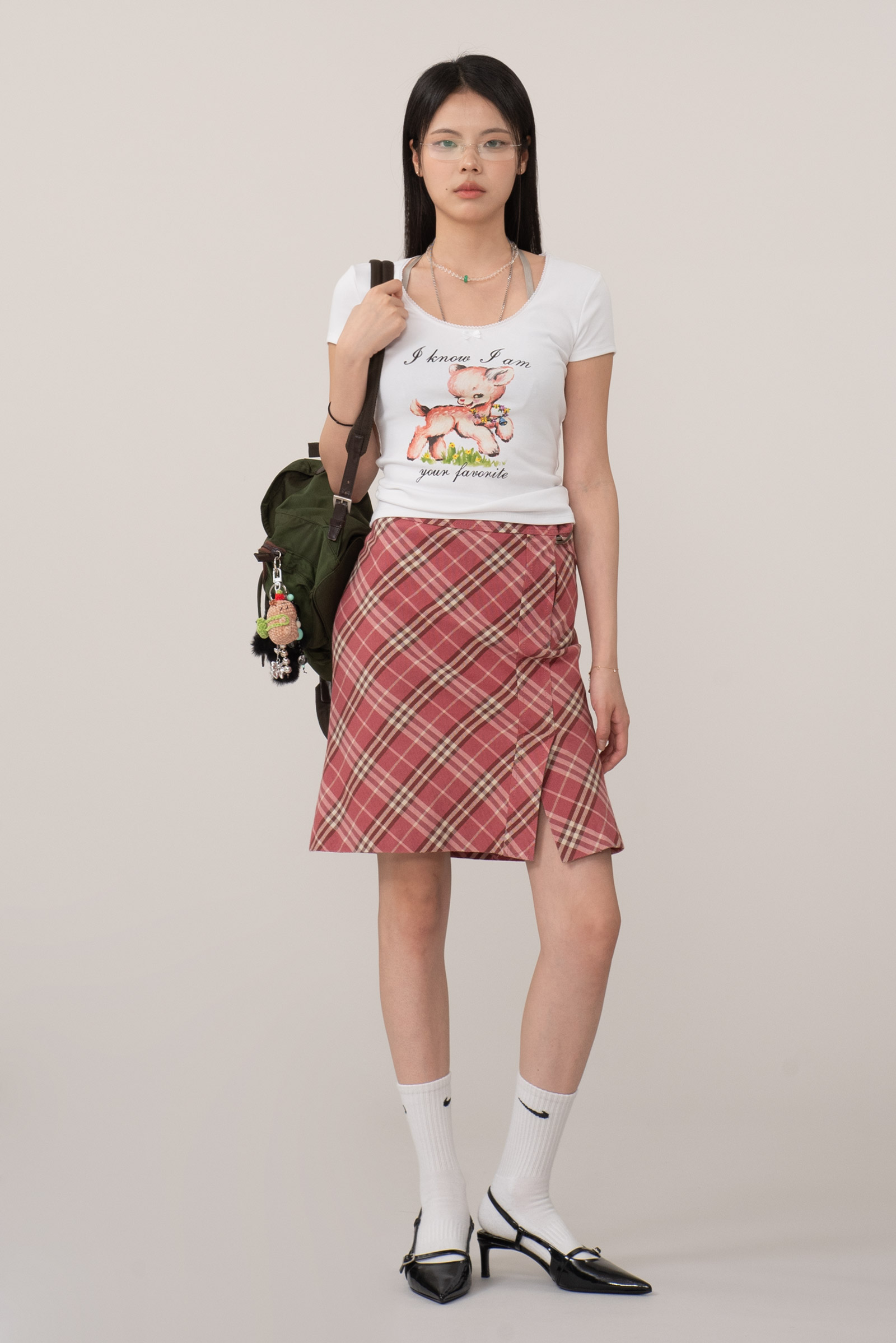 전통적인 하우스 체크 패턴과 현대적인 실루엣이 만난 아이템으로, 포멀함과 키치함을 넘나들 수 있는 모던 빈티지룩의 핵심 피스랍니다.