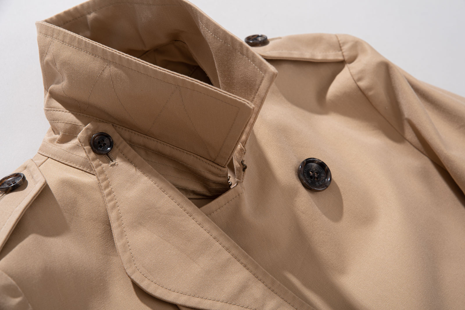 기본에 기본을 더한 더블 카라 디자인, 어깨와 소매 견장이나 앞섶 여밈 장식, 벨트와 후면의 케이프 디테일까지.