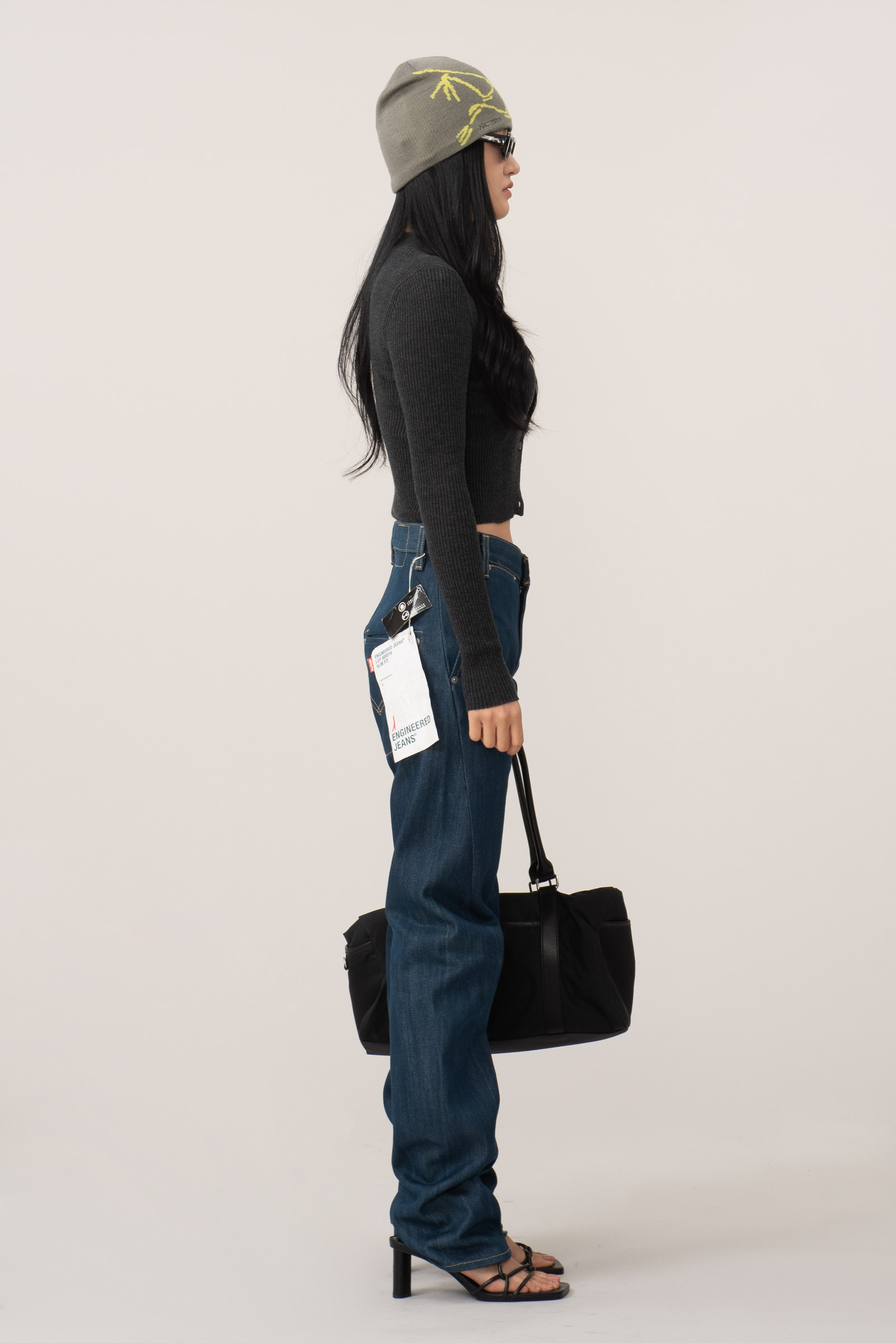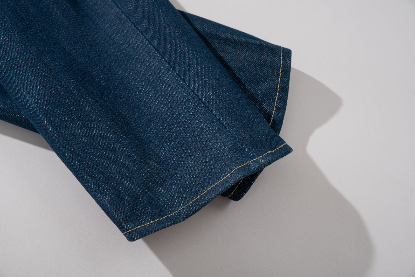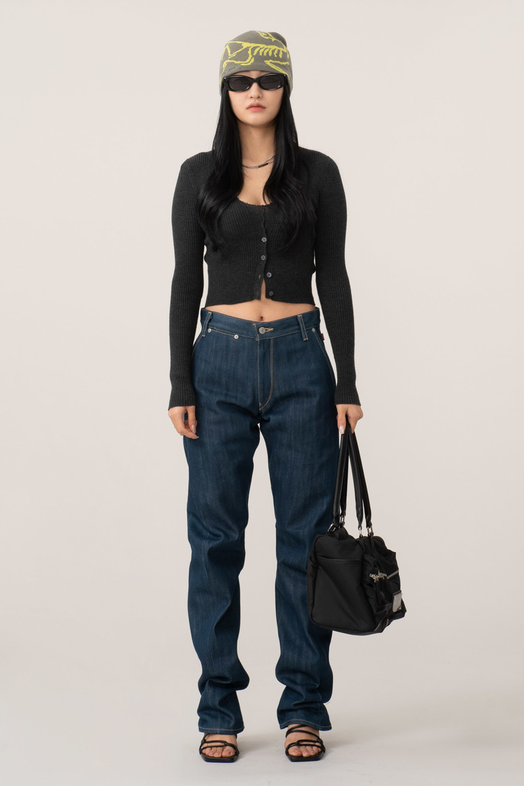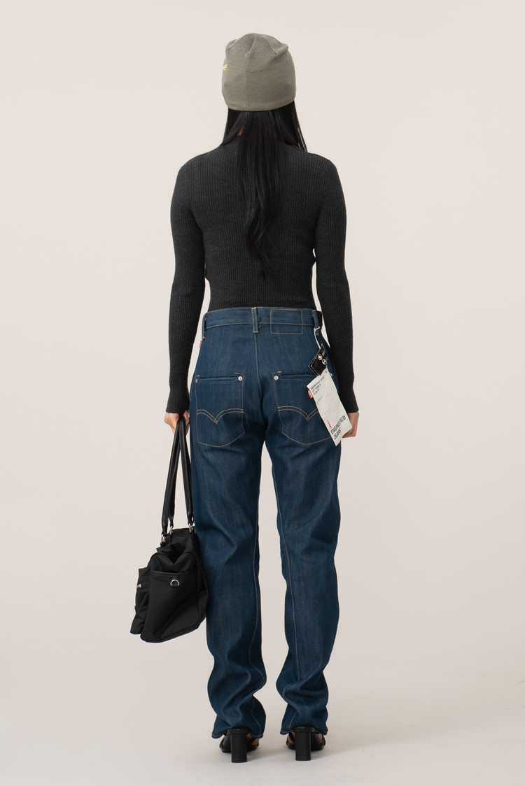 아웃심이 앞쪽으로 돌아가게 잡아낸 실루엣이 특징이며 큼직한 백포켓이 눈에 띄네요.