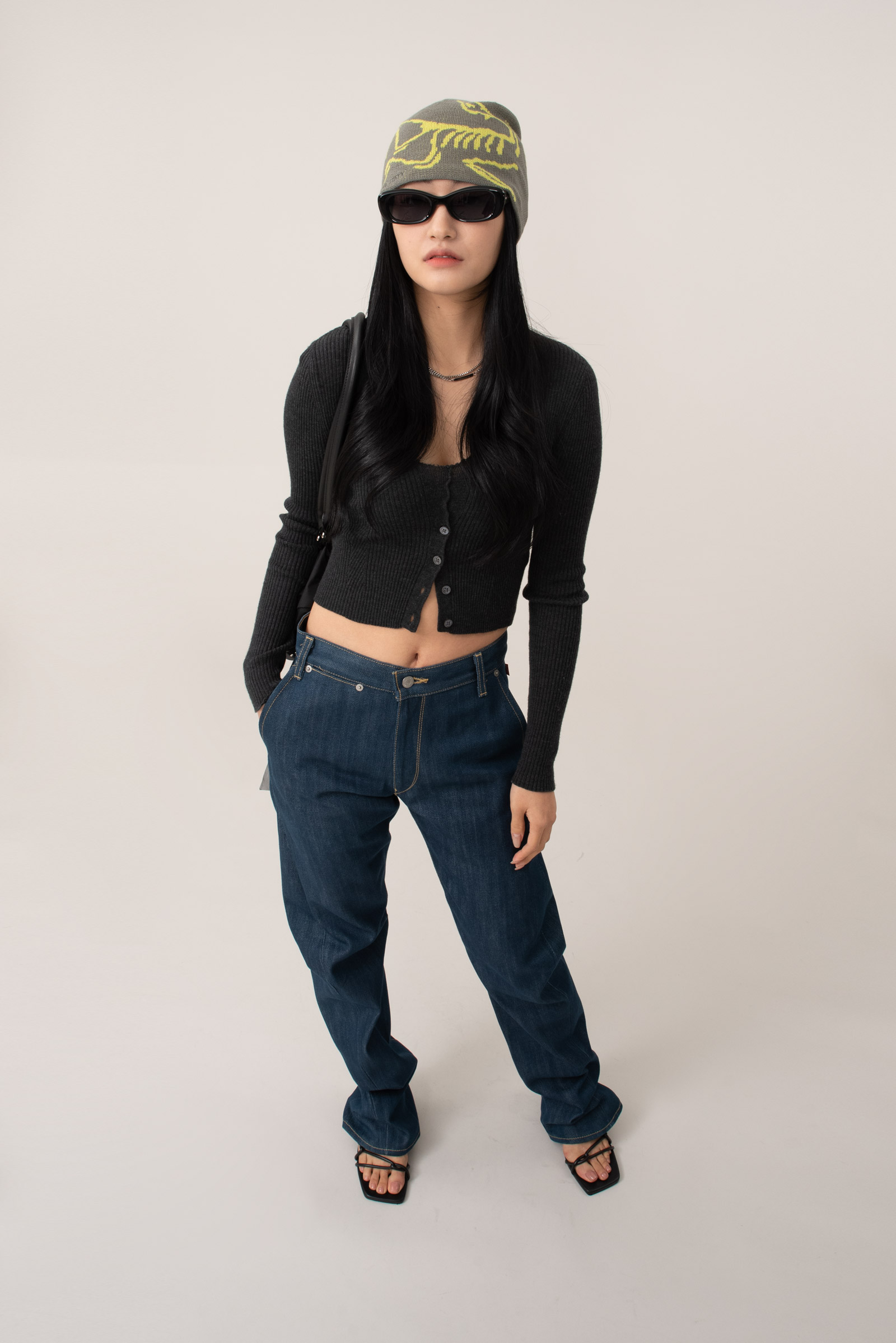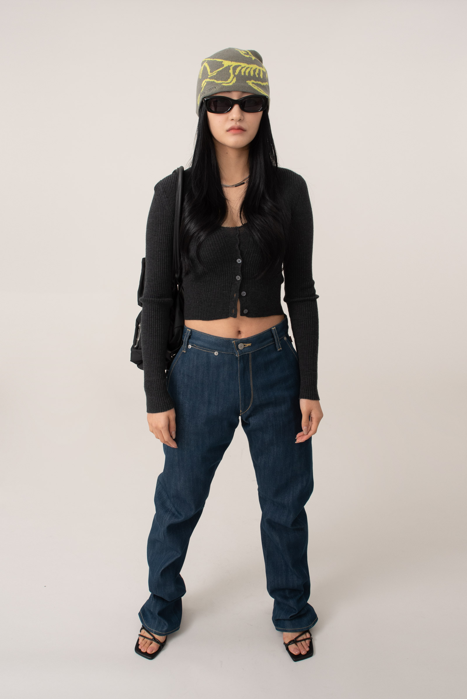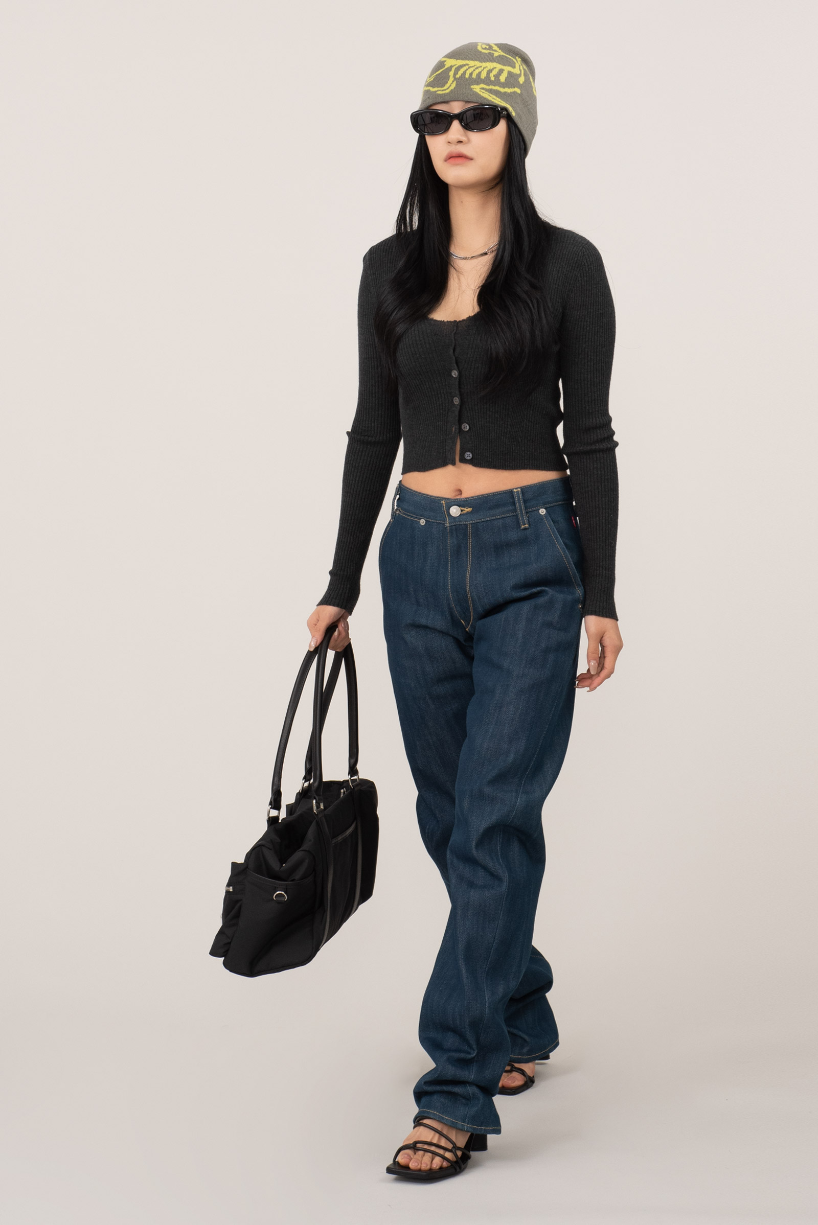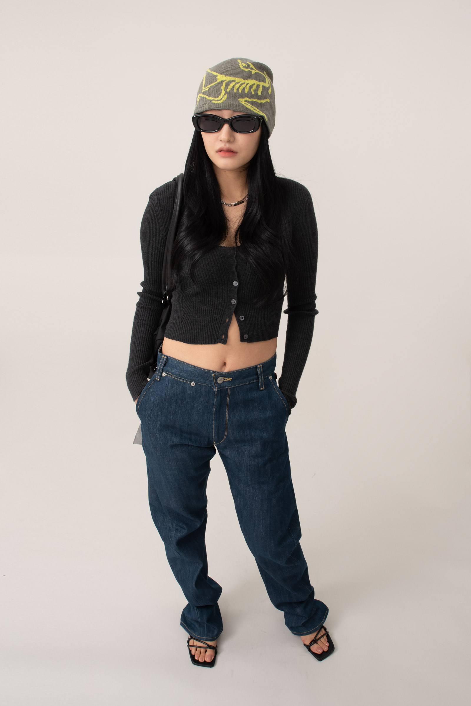 아웃심이 앞쪽으로 돌아가게 잡아낸 실루엣이 특징이며 큼직한 백포켓이 눈에 띄네요.