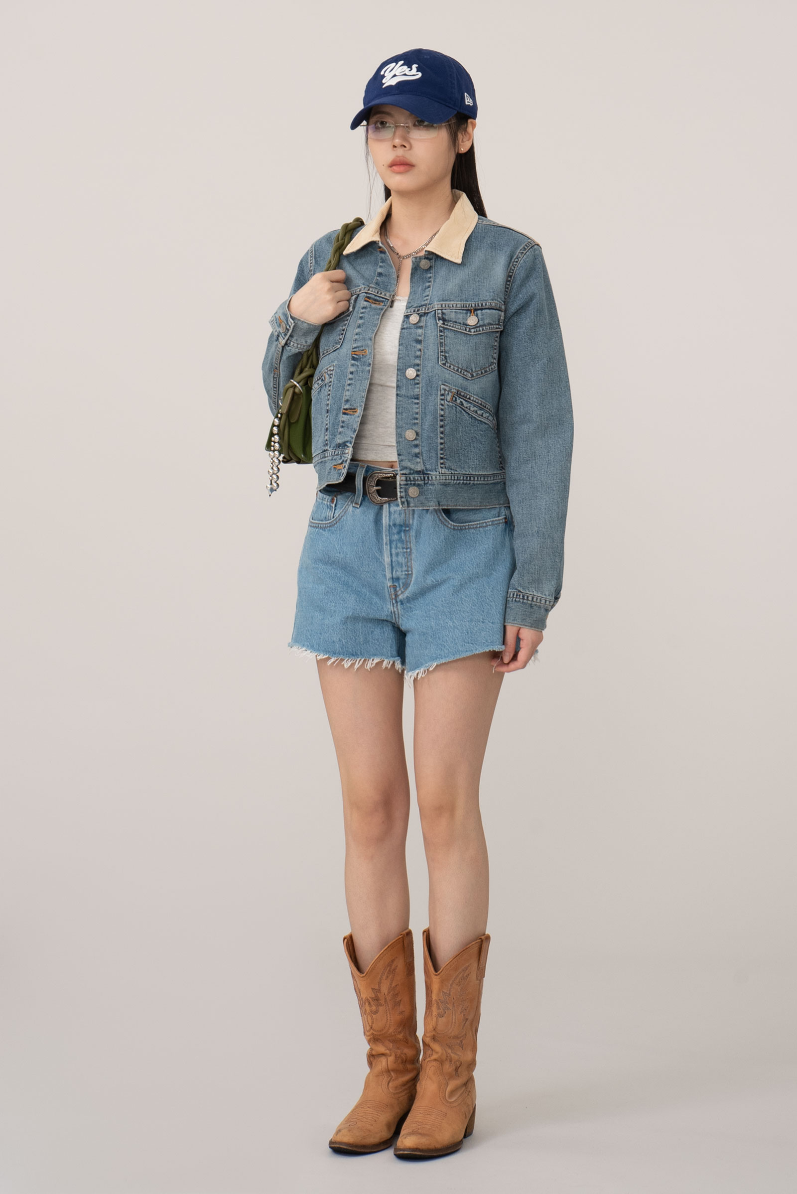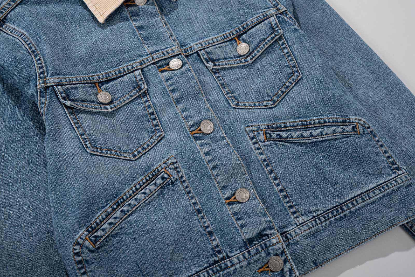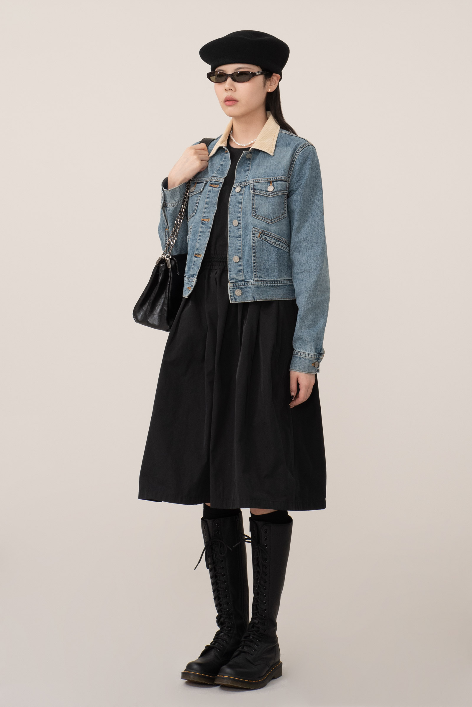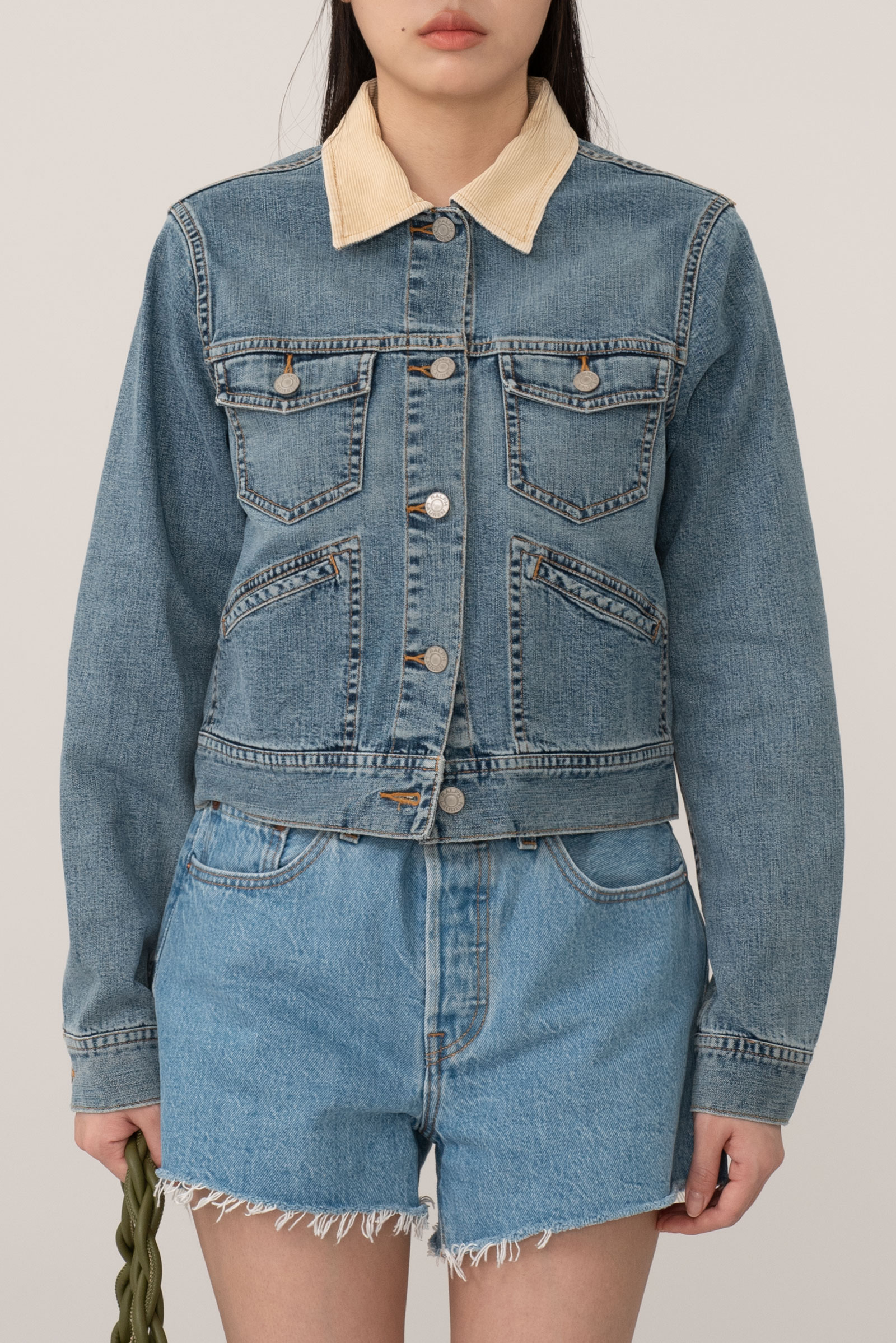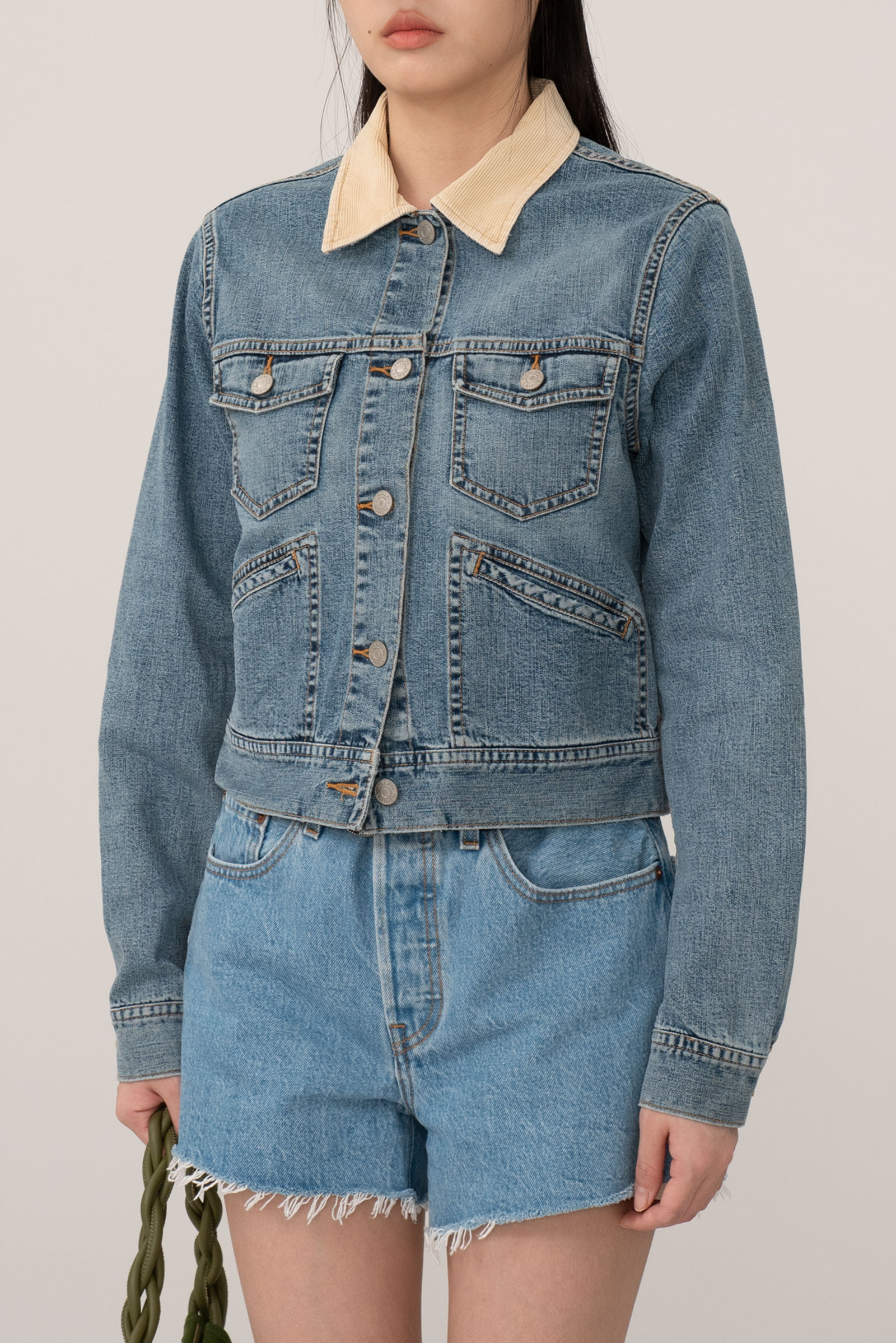 봄, 가을 착용되는 적당한 두께감의 편안한 착용감과 두루두루 매치가 쉬운 연청 컬러라 통이 큰 슬랙스나 스커트에도 잘 어울리는 제품이에요.